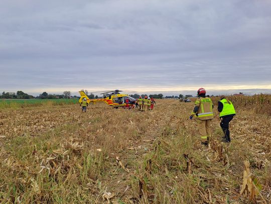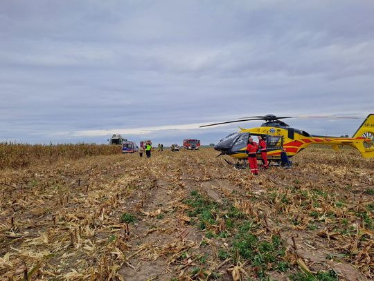 Podczas prac polowych przy zbiorze kukurydzy w przystawce kombajnu znalazła się prawa noga mężczyzny w wieku 41 lat.