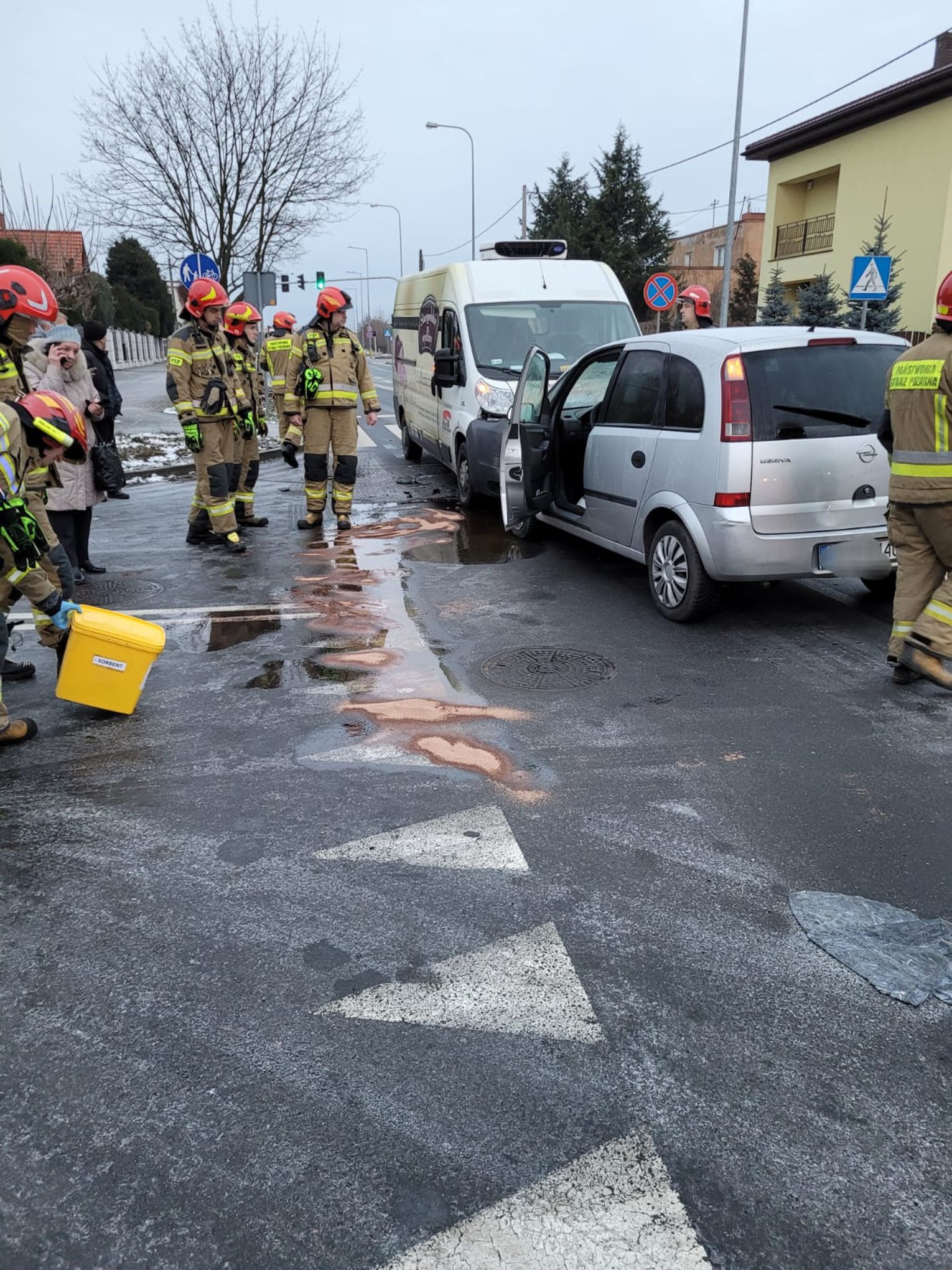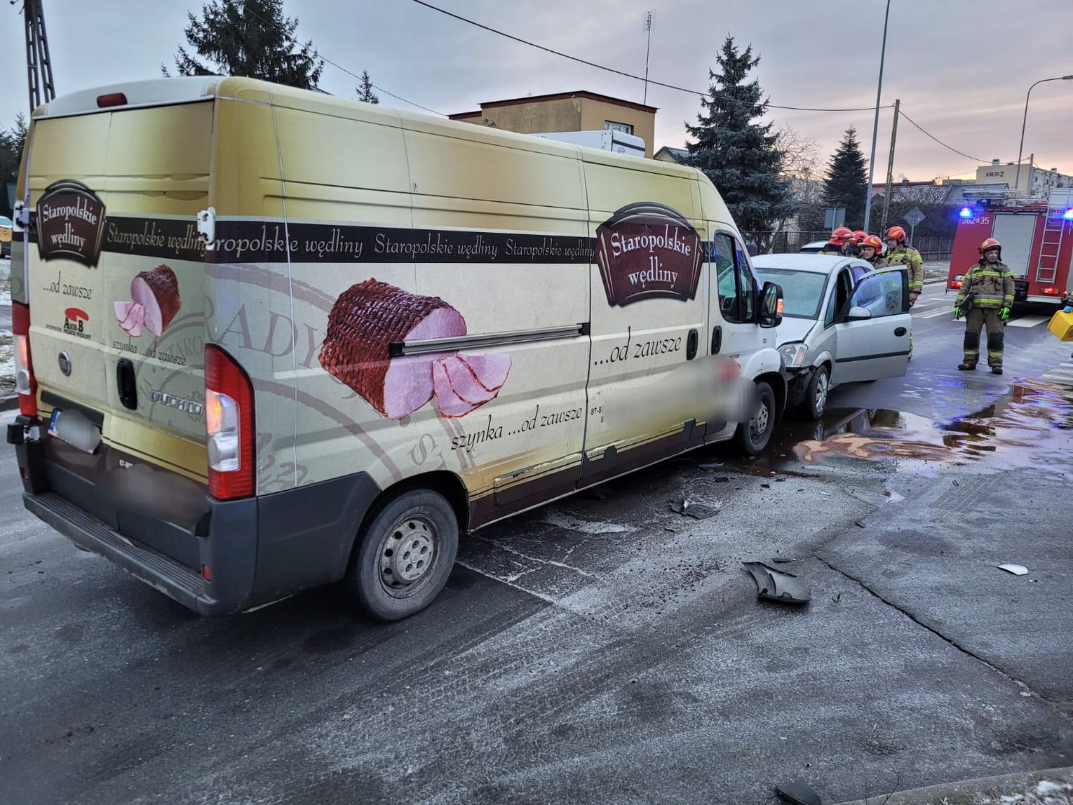O godzinie 7:55 na skrzyżowaniu ul. Ostrowskiej z ul. Armii Krajowej doszło do zderzenia dwóch samochodów, osobowego Opla z dostawczym Fiatem. Pojazdami podróżowały 4 osoby po przebadaniu przez Ratowników Medycznych pozostały na miejscu. Ruch podczas działań był utrudniony. Działania prowadziły 3 zastępy Straży Pożarnej