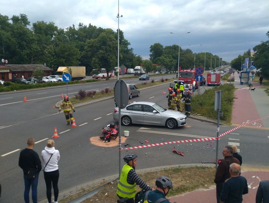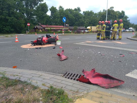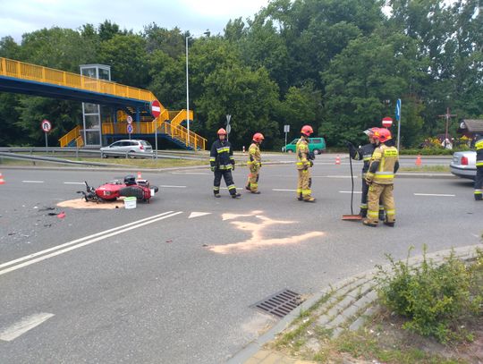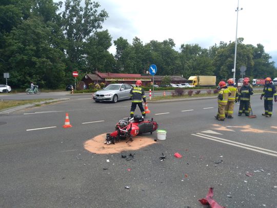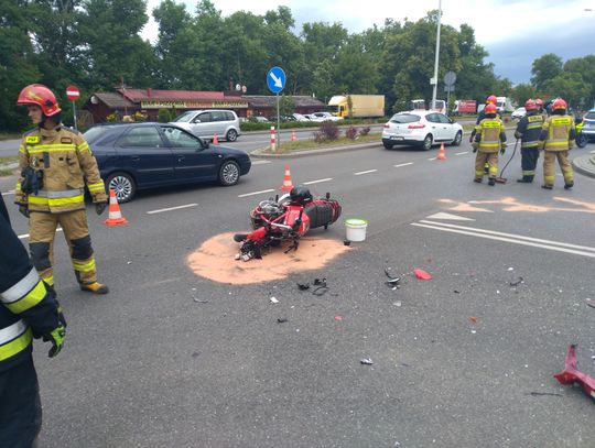 Dziś do miejskiego stanowiska kierowania KM PSP we Włocławku dotarło zgłoszenie o zderzeniu auta osobowego z motocyklem. Na miejsce strażacy zadysponowali trzy jednostki. Na miejscu działało 9 strażaków.