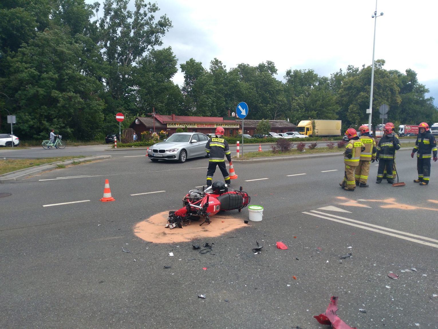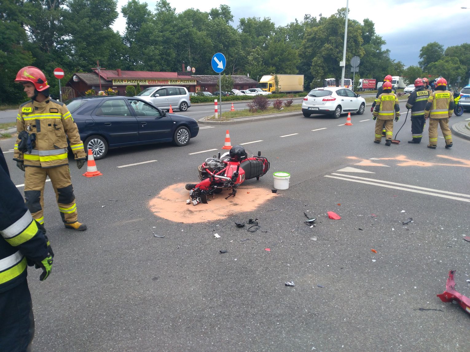 "Kierujący skodą prawdopodobnie wymusił pierwszeństwo. W pierwszej fazie cały ruch na nitce w stronę Łodzi był zblokowany. Nitka później została udrożniona. Osoba poszkodowana- motocyklista została przetransportowana do szpitala we Włocławku. Kierowca skody pozostał na miejscu."- informuje Mariusz Bladoszewski z KM PSP we Włocławku