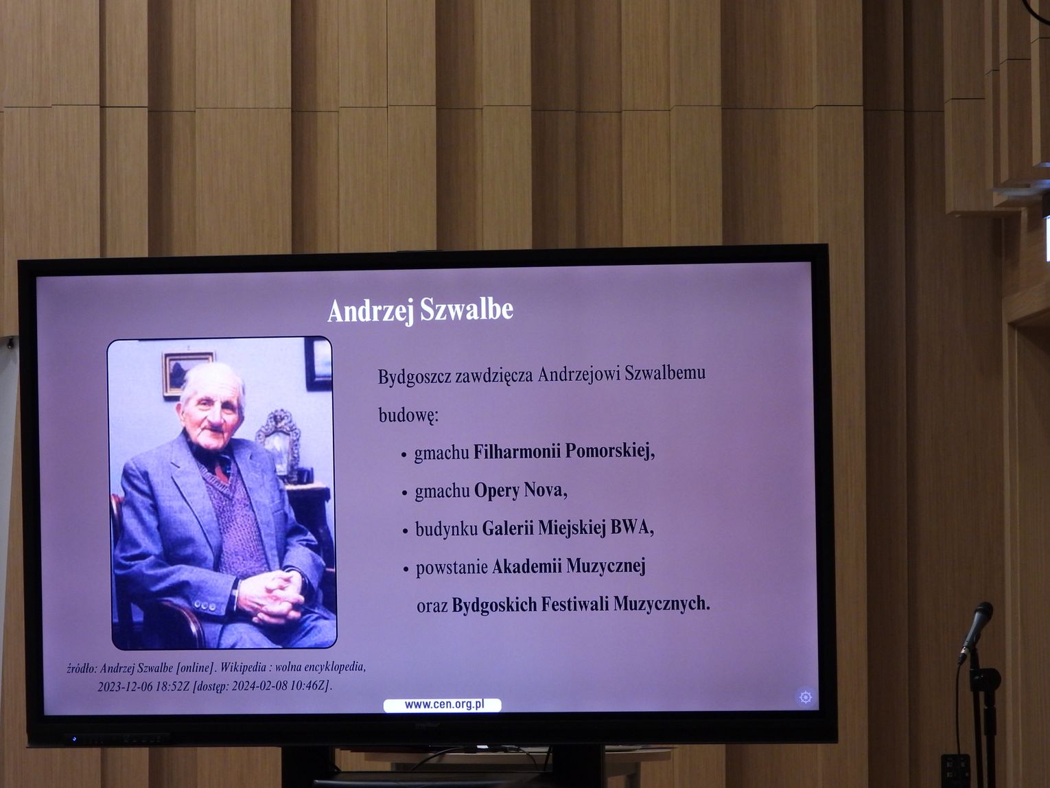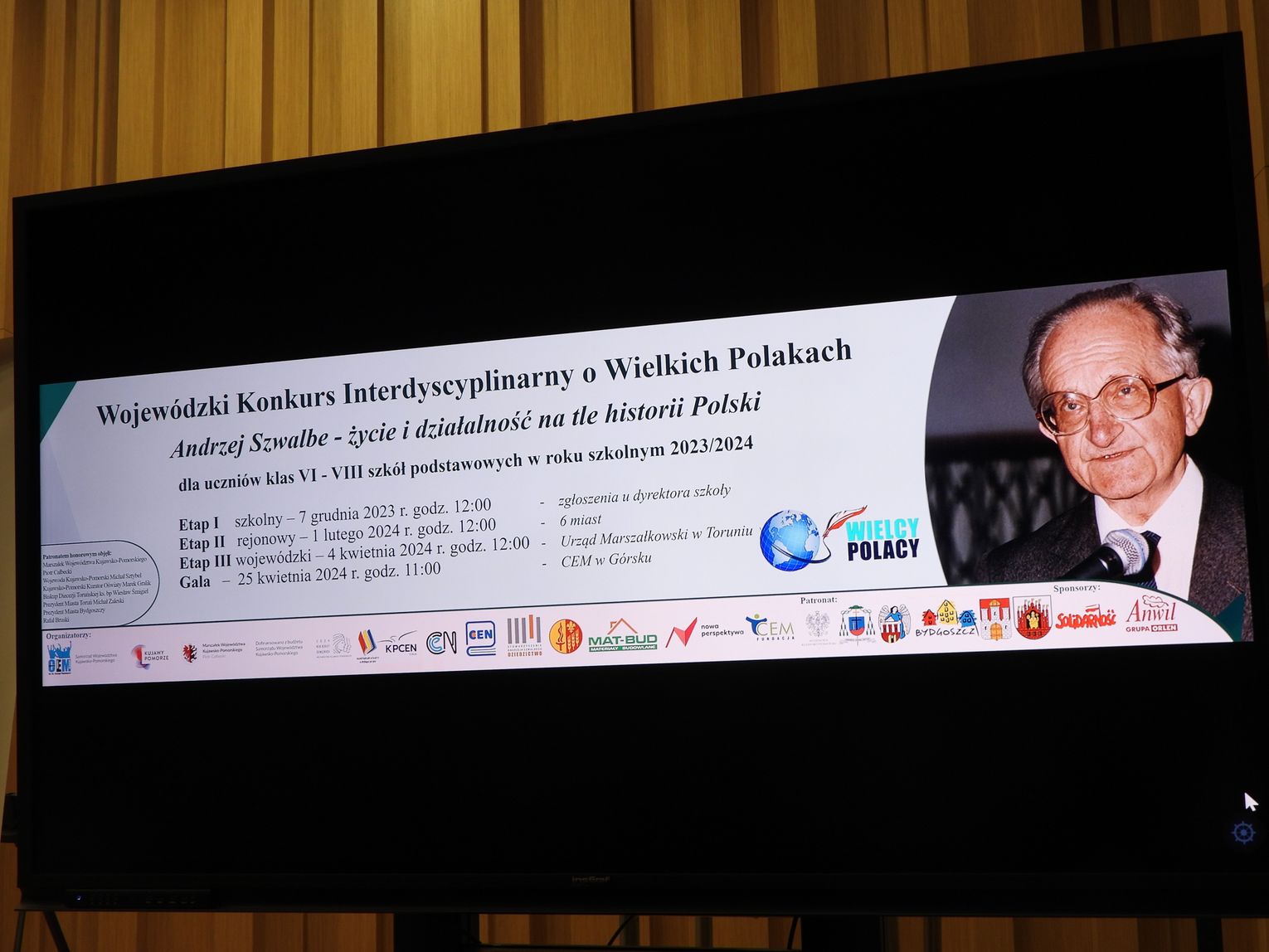 W Zespole Szkół Muzycznych odbyła się gala podsumowująca etap rejonowy Wojewódzkiego Konkursu Interdyscyplinarnego o Wielkich Polakach. W konkursie uczestniczyli uczniowie szkół podstawowych, a jego tematem była postać Andrzeja Szwalbego związanego z Bydgoszczą organizatora życia muzycznego. Był laureatem licznych odznaczeń państwowych.
