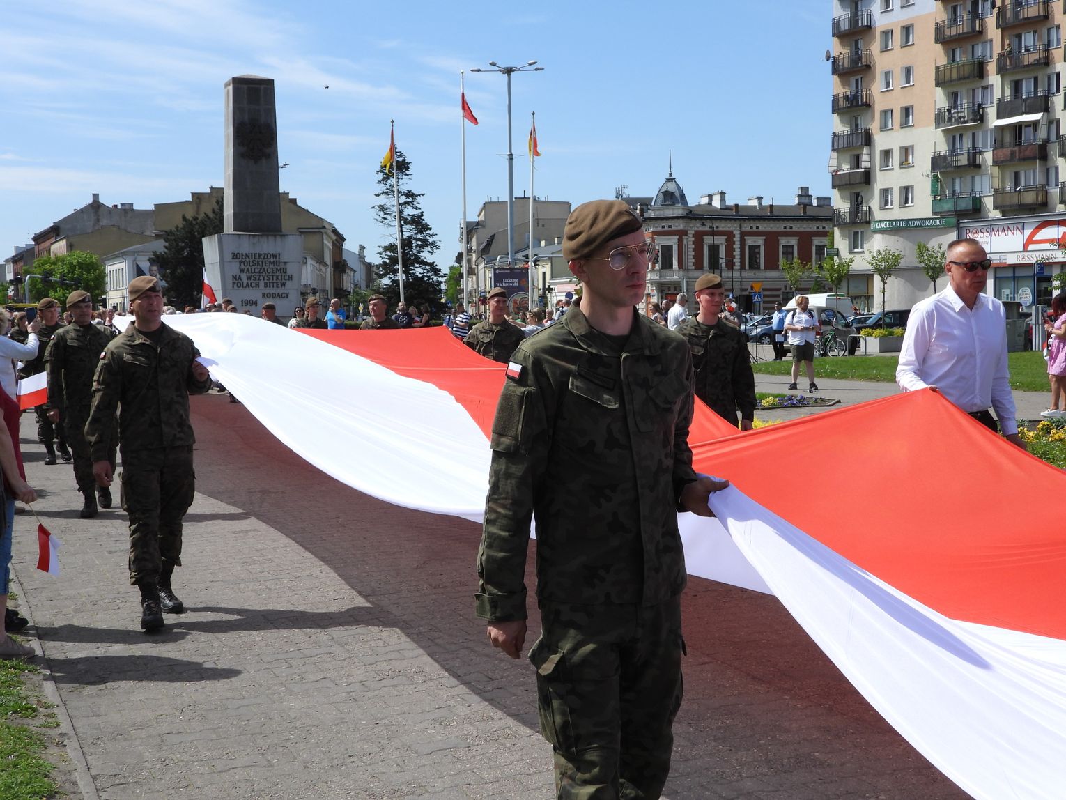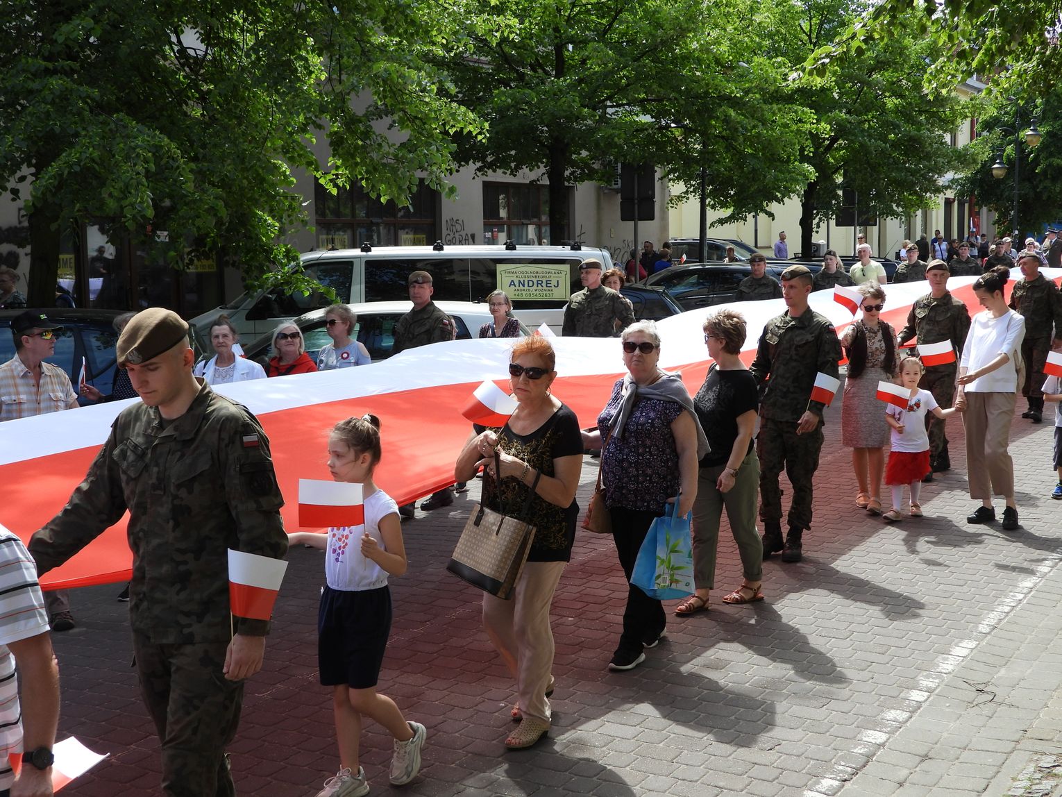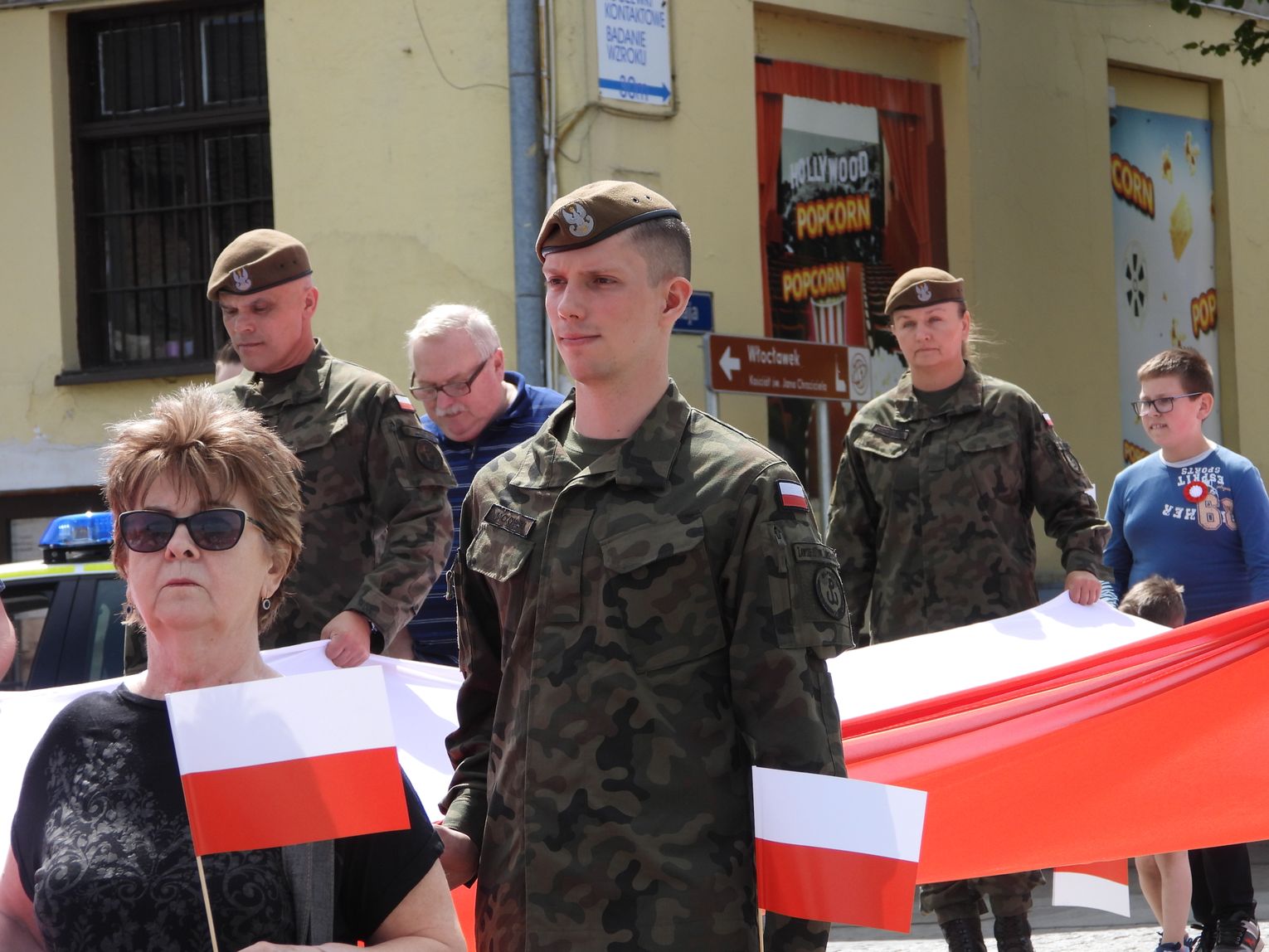 We Włocławku miejskie obchody rozpoczęły się na Placu Wolności o godzinie 12:00. Stamtąd korowód ze stumetrową polską flagę ruszył przez ulicę 3 Maja na Stary Rynek. Tam nastąpiły okolicznościowe przemówienia, a następnie odbył się koncert pieśni patriotycznych w wykonaniu Zespołu Cantare z Klubu Łęg.