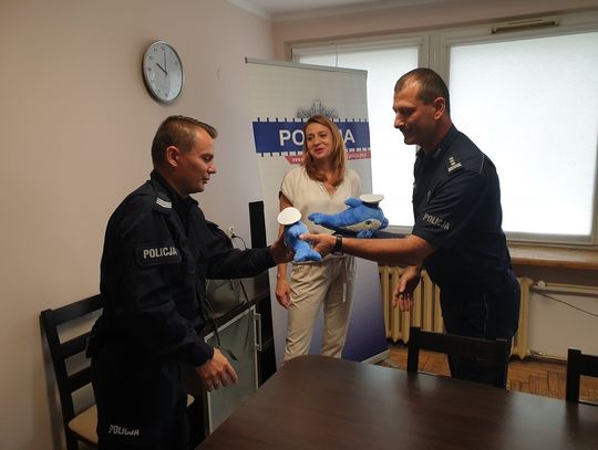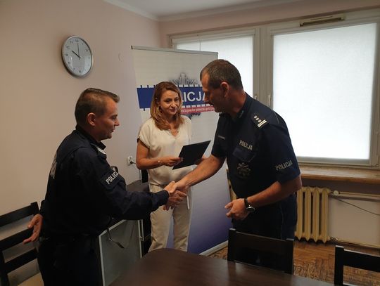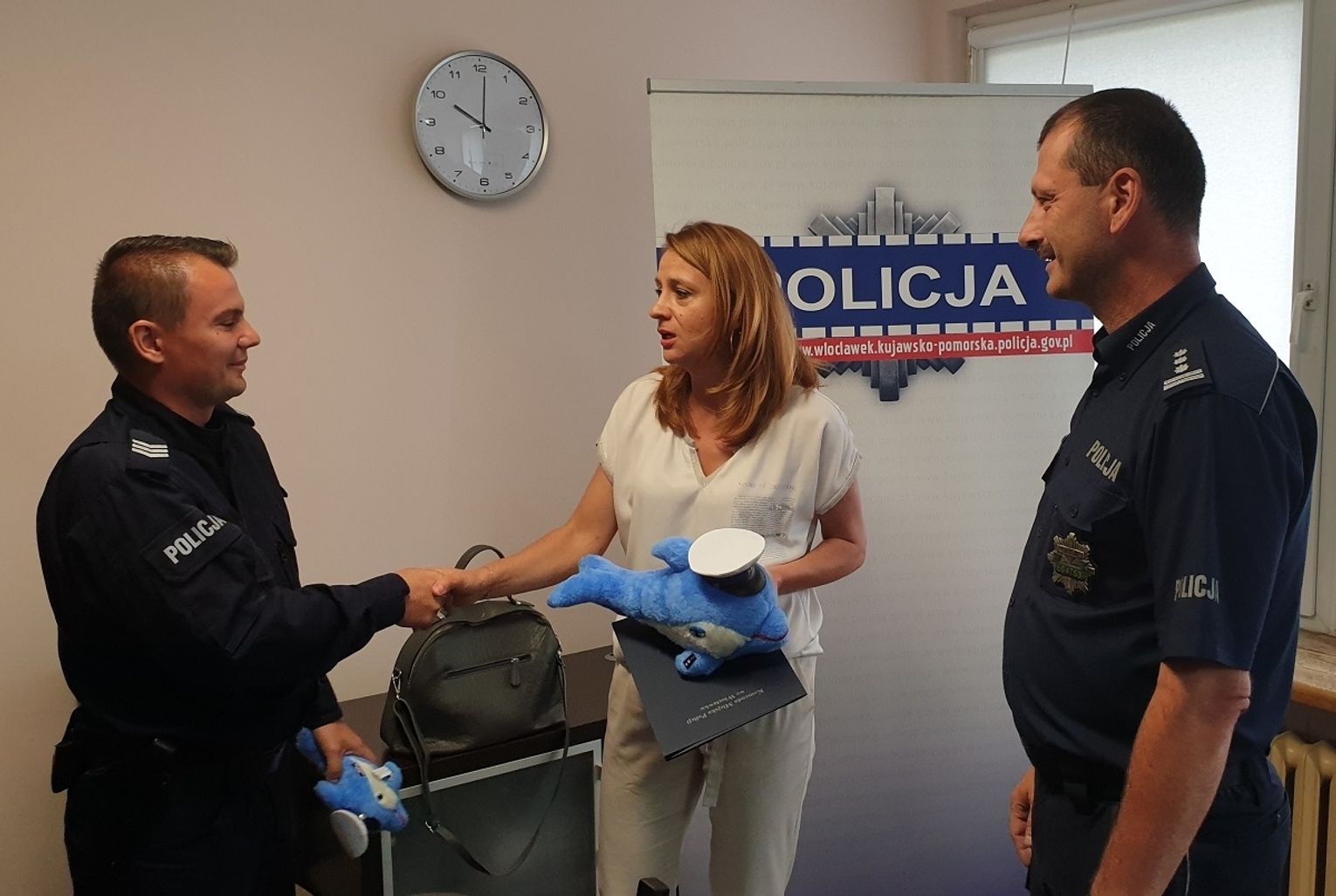 "Komendant Miejski Policji we Włocławku wyróżnił funkcjonariusza wydziału patrolowo – interwencyjnego sierż. szt. Łukasza Jędrzejewskiego oraz położną jednej z placówek medycznych w mieście Panią Małgorzatę Podolską za ponadprzeciętną inicjatywę i zaangażowanie w ratowanie najwyższego dobra, jakim jest ludzkie życie. Dzięki ich niezwłocznej reakcji i wzorowo przeprowadzonej akcji reanimacyjnej przywrócili oni czynności życiowe kobiecie, która zasłabła i przestała oddychać w czasie podróży. Do zdarzenia doszło w czwartek (18.07.2019) na drodze krajowej K-67 w pobliżu m. Kulin."- informuje st. sierż. Anita Szefler-Ciupińska Zespół Komunikacji Społecznej