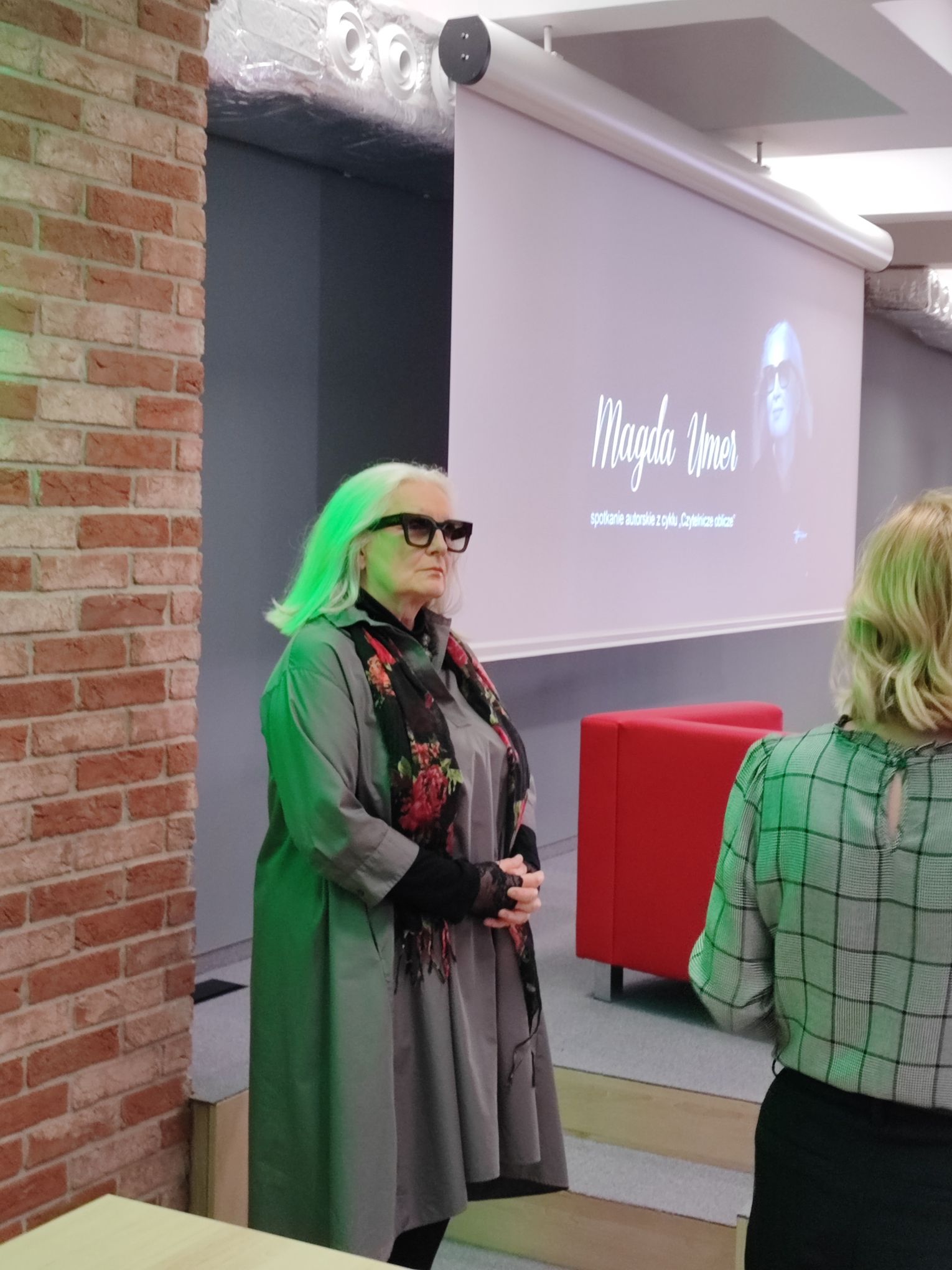 Magda Umer opowiadała o swojej wieloletniej karierze artystycznej, barwnie dzieląc się historiami z życia zawodowego oraz osobistego. Słuchacze mieli okazję poznać kulisy jej pracy z takimi wybitnymi twórcami jak Agnieszka Osiecka, Jeremi Przybora czy Wojciech Młynarski. Szczególnym zainteresowaniem cieszyły się anegdoty z czasów Kabaretu Starszych Panów oraz wspomnienia o Agnieszce Osieckiej, z którą Umer łączyła głęboka przyjaźń. Artystka wspominała także o swojej drodze do świata muzyki, inspiracjach twórczych i wyzwaniach, jakie napotkała na swojej artystycznej ścieżce.