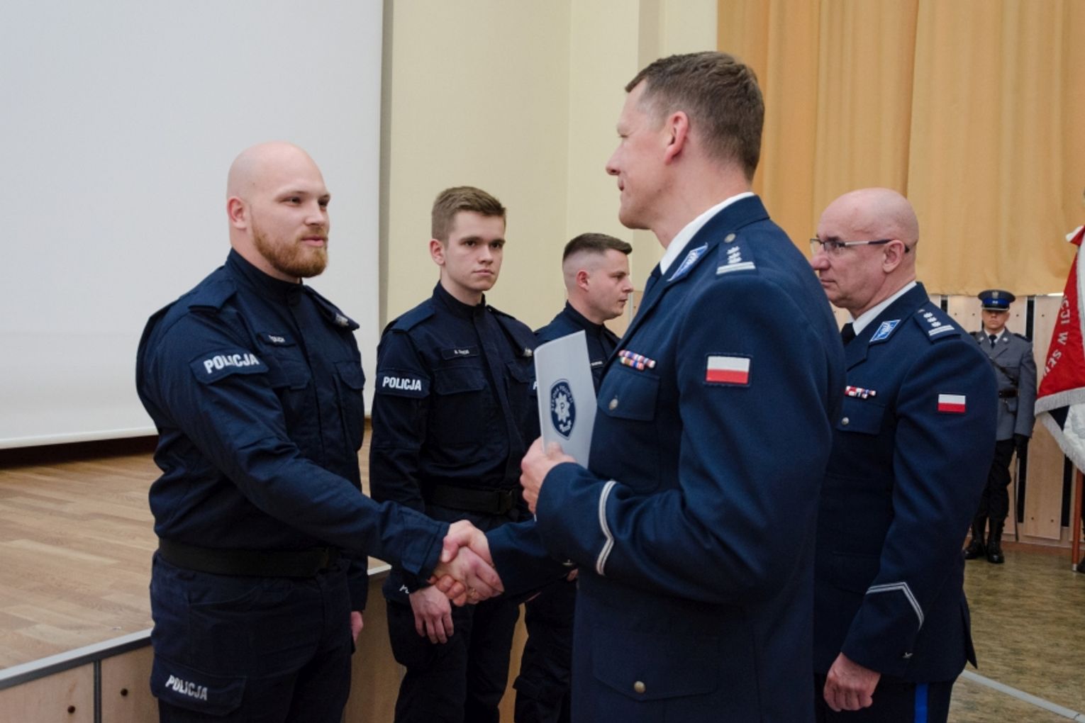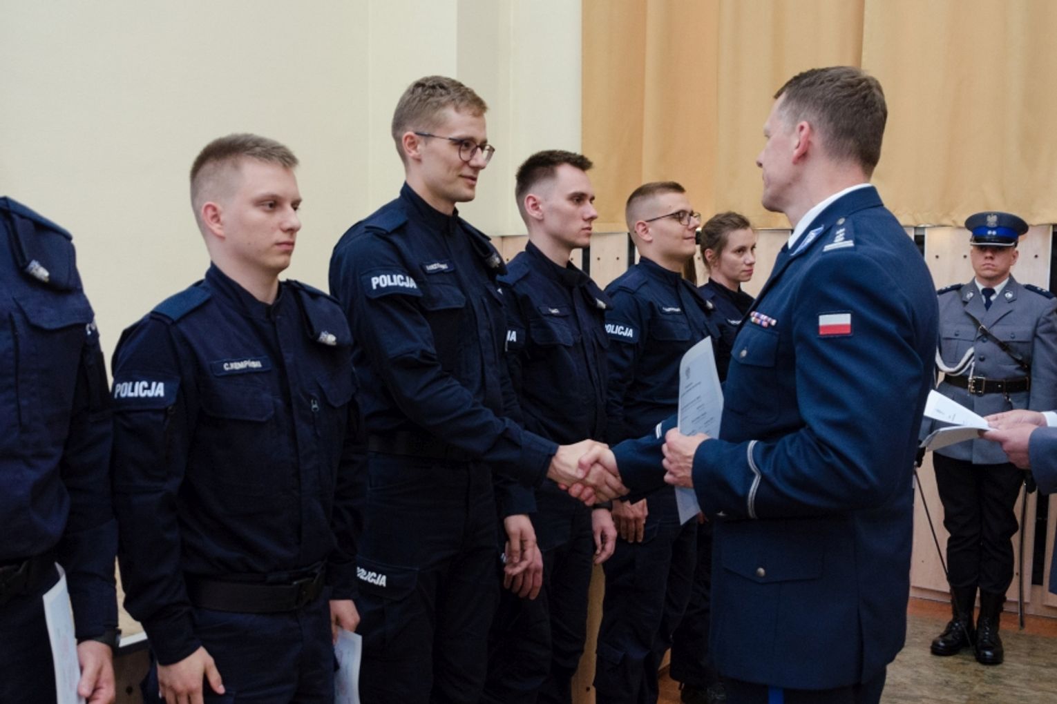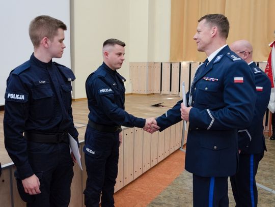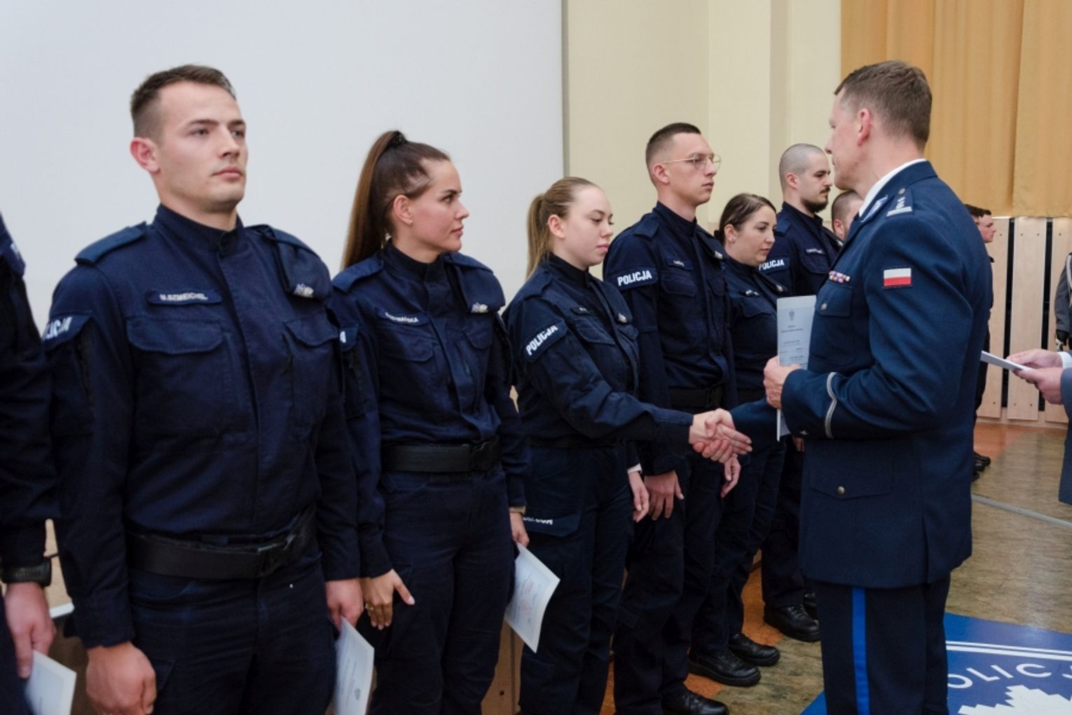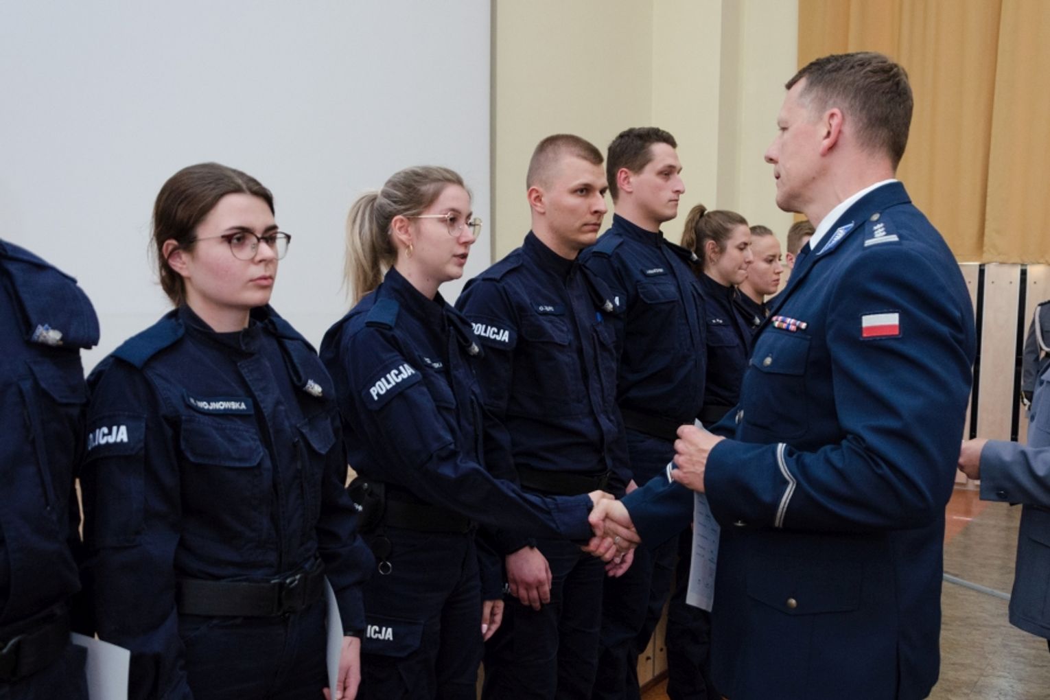 Ostatnim, najważniejszym sprawdzianem ich wiedzy był wtorkowy poranny test, który decydował o ukończeniu szkolenia zawodowego podstawowego. Po zakończeniu tego sprawdzianu, kilka godzin później Komendant Szkoły insp. Piotr Cekała wręczył absolwentom świadectwa, które są przepustką do dalszej policyjnej służby.