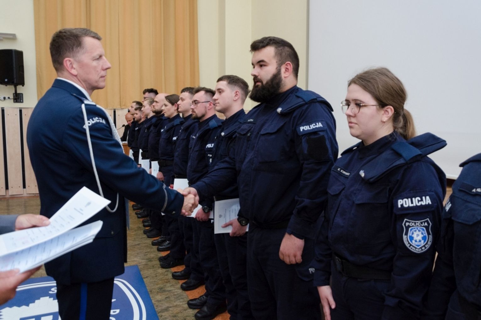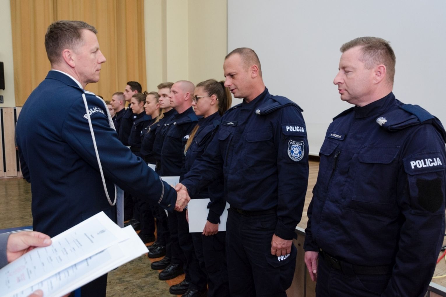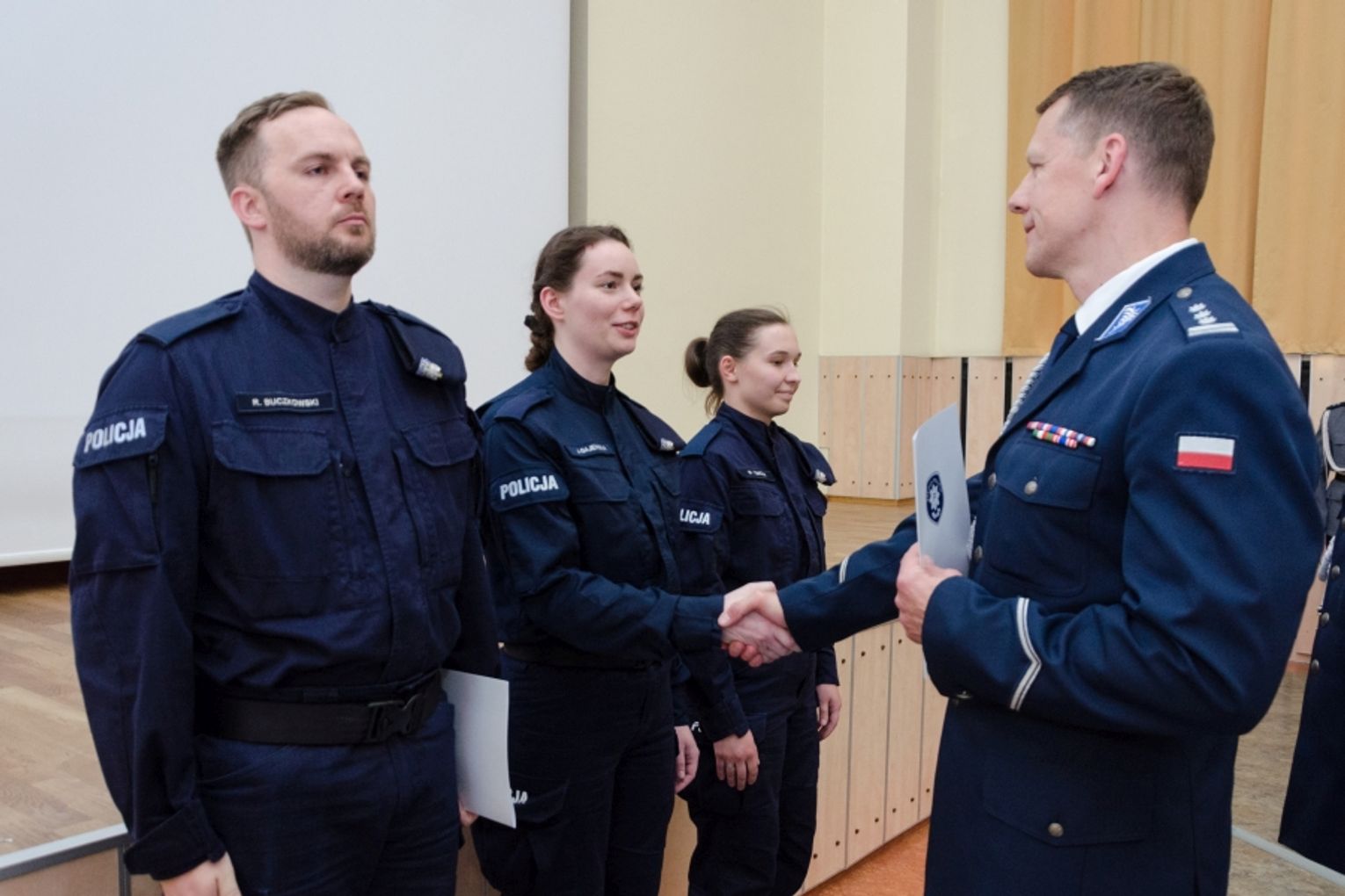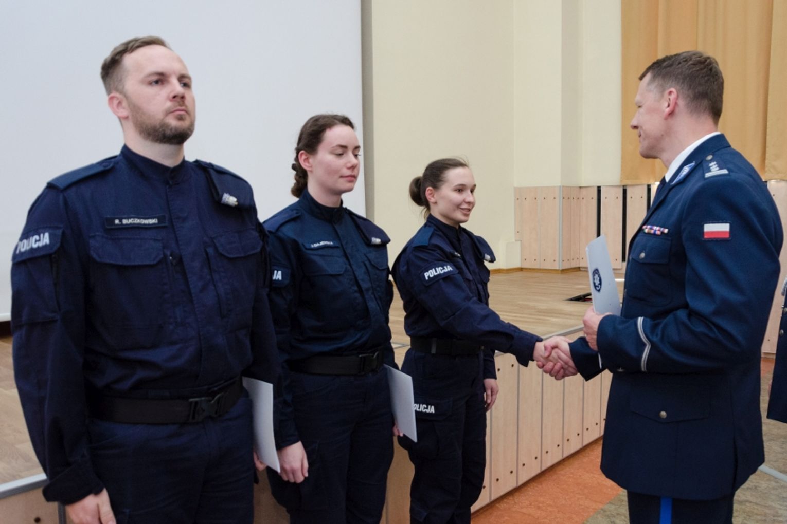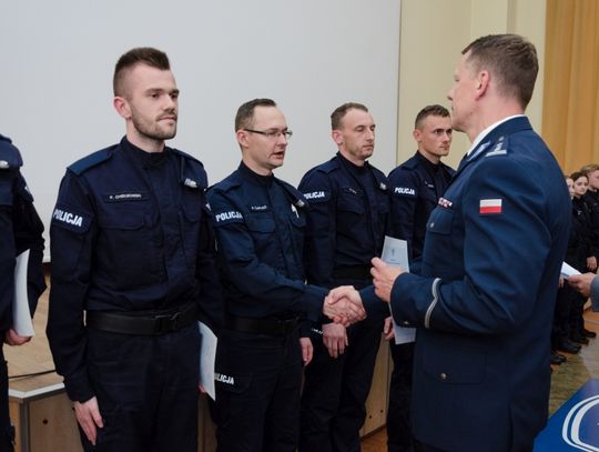 Ostatnim, najważniejszym sprawdzianem ich wiedzy był wtorkowy poranny test, który decydował o ukończeniu szkolenia zawodowego podstawowego. Po zakończeniu tego sprawdzianu, kilka godzin później Komendant Szkoły insp. Piotr Cekała wręczył absolwentom świadectwa, które są przepustką do dalszej policyjnej służby.