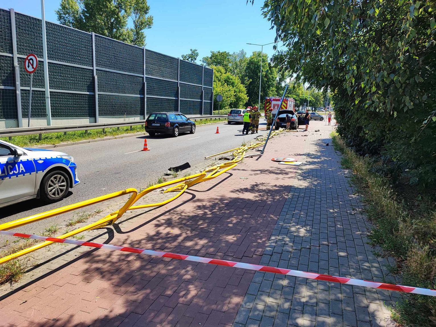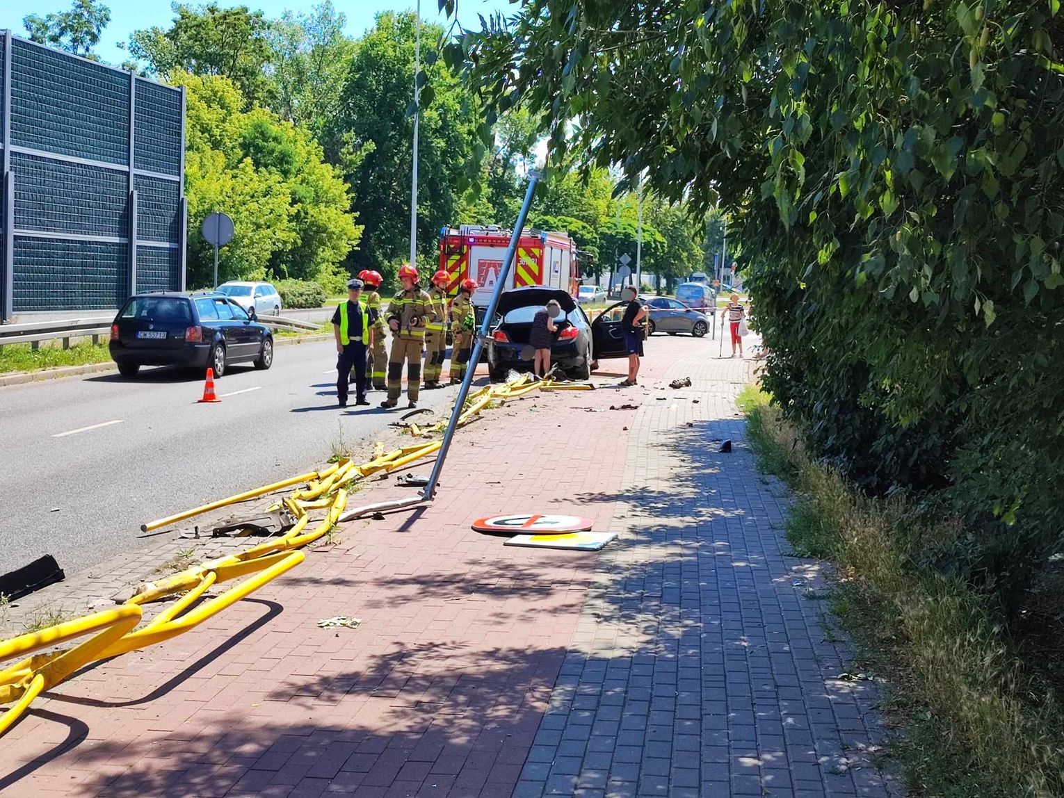 Dziś po godzinie 10.00 na ulicy Toruńskiej doszło do groźnego zdarzenia drogowego. Samochód marki Opel Insignia ściął barierki oraz znak drogowy, powodując znaczne w ruchu.