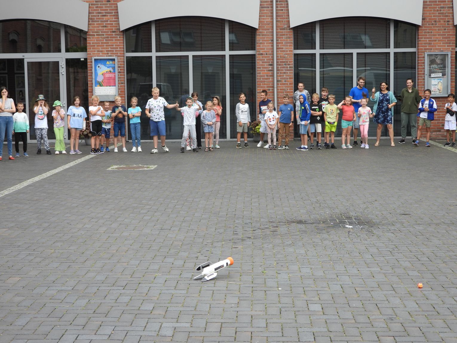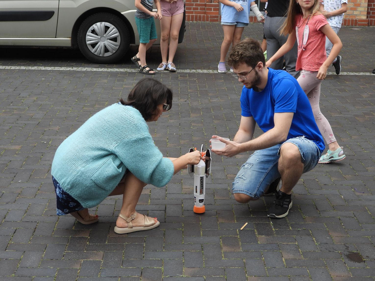 Następnie przyszedł czas na wysłanie rakiety w kosmos. Napędzany sodą oczyszczoną pojazd kosmiczny opuścił dziedziniec "Browaru" i ruszył w przestworza.