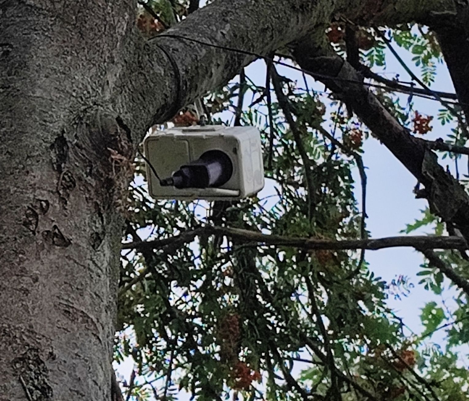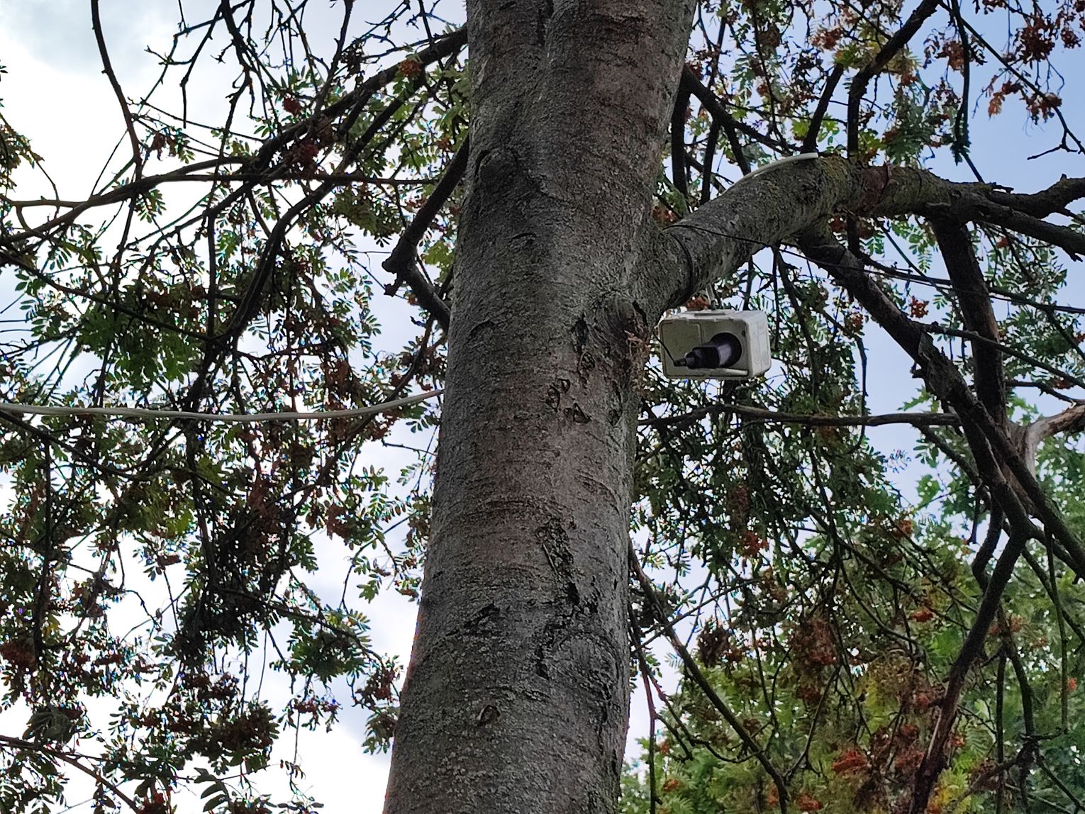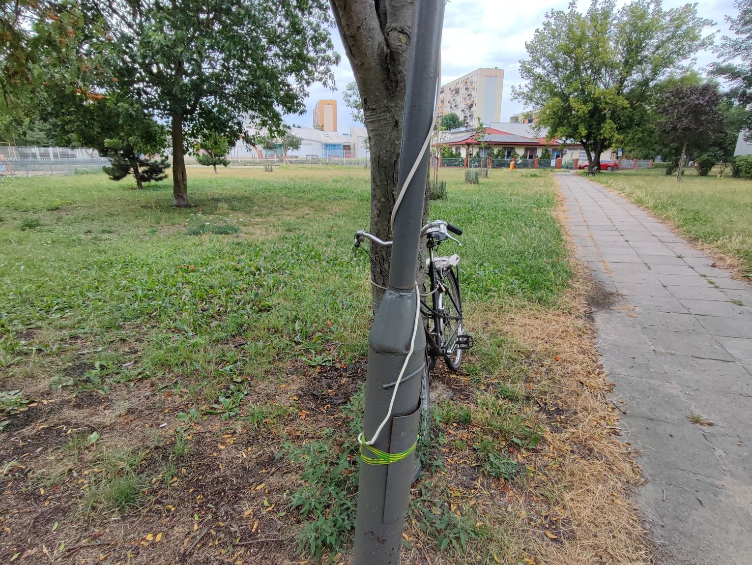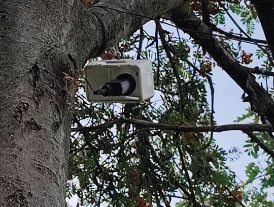 Udaliśmy się na miejsce. Zgodnie z relacją mieszkanki Włocławka przewód jest owinięty wokół latarni, jego koniec znajduje się na gałęzi drzewa. Wpięte są do niego... lampki choinkowe. To ciekawe, bo mamy lipiec, a nie grudzień. Teren jest uczęszczany przez mieszkańców pobliskich bloków. Zapytaliśmy dwie kobiety, które się tamtędy przemieszczały, od kiedy ozdoby choinkowe dekorują jarzębinę. Otóż nie od ubiegłych świąt, a od paru lat. A może lampki są włączane w nocy? No nie.
