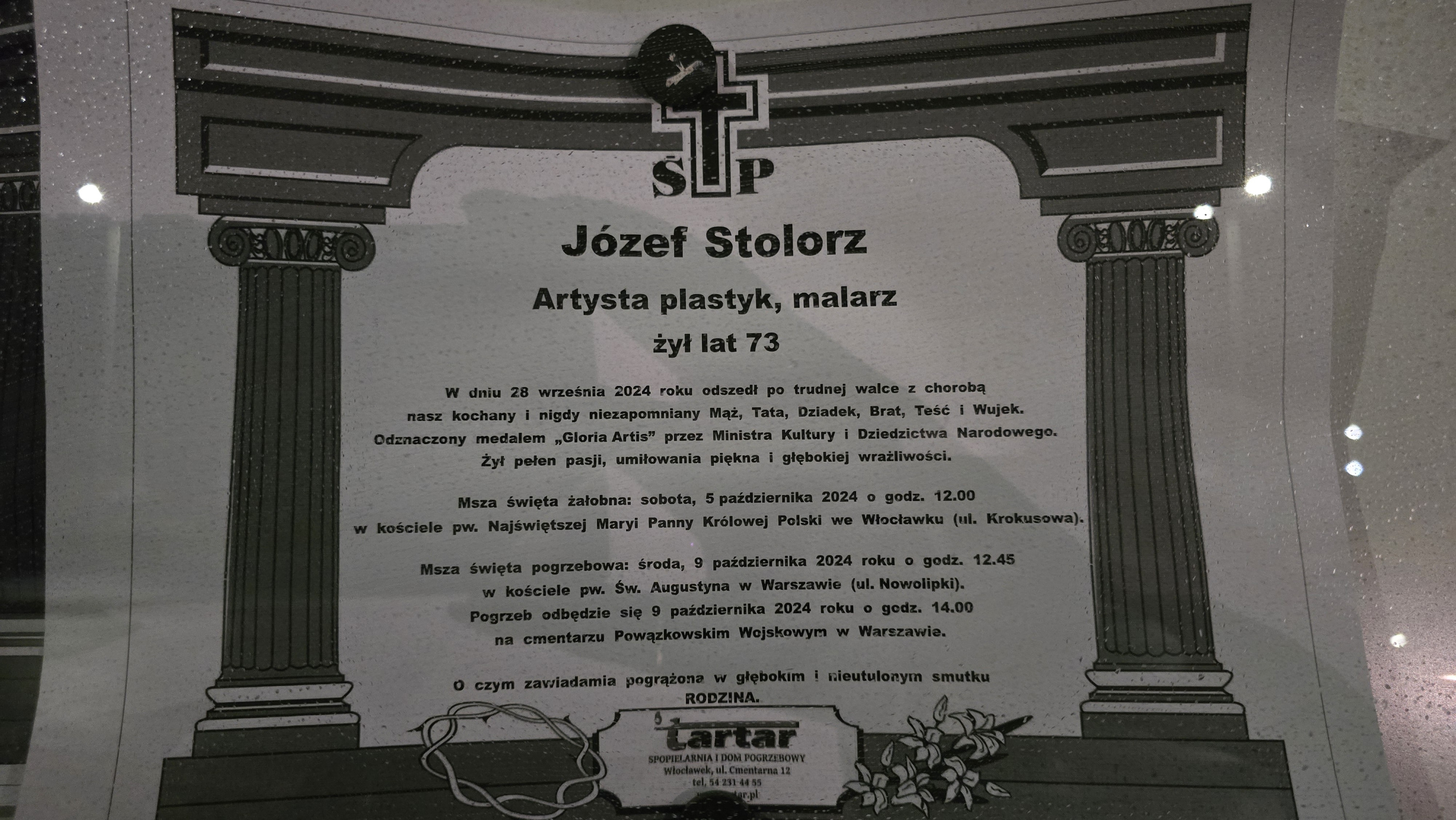 Józef Stolorz, znany włocławski artysta plastyk i malarz, zmarł 28 września 2024 roku w wieku 73 lat po długiej walce z chorobą. Uroczystości pogrzebowe odbędą się zarówno we Włocławku, jak i w Warszawie.