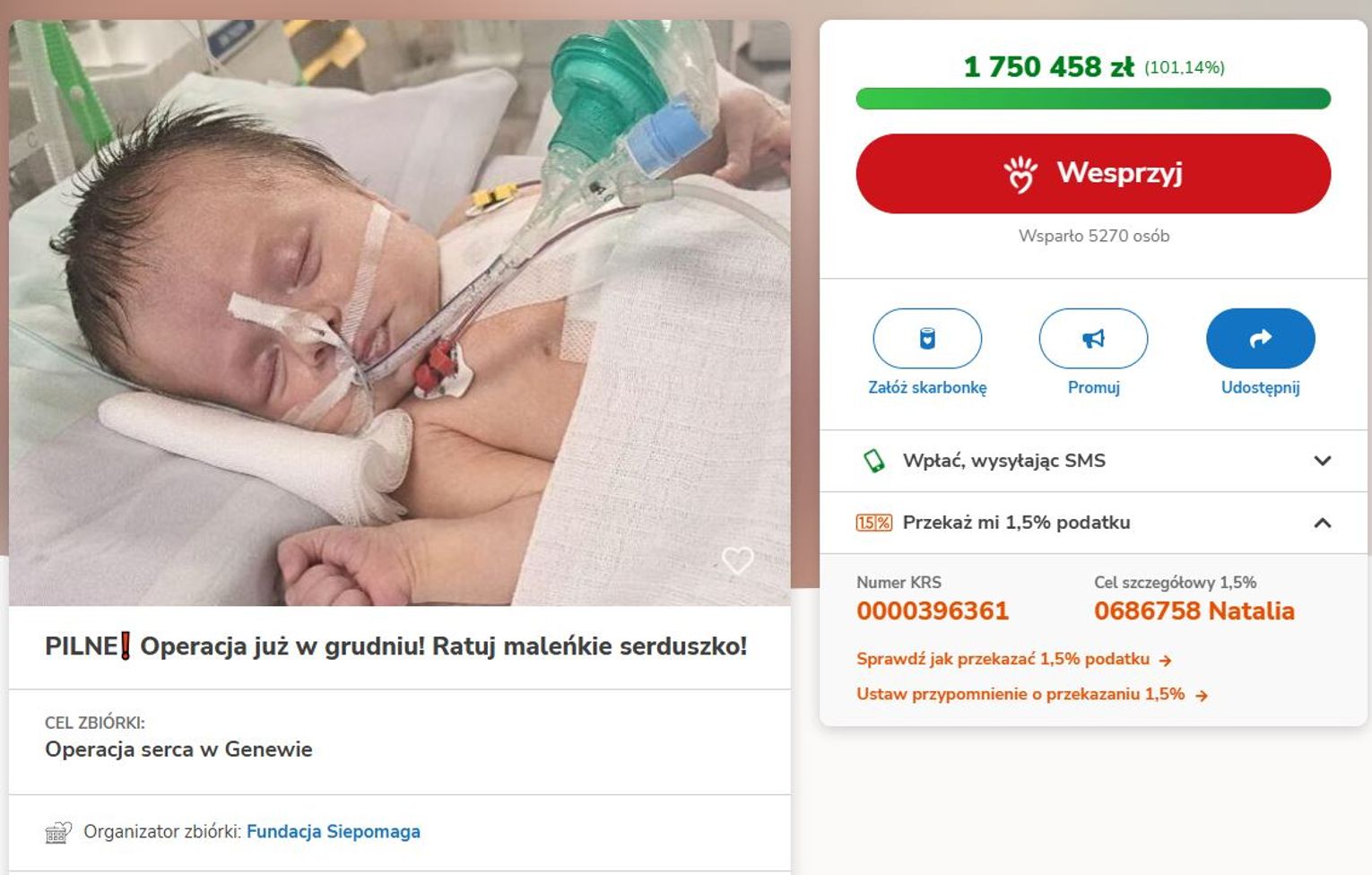 Kilka dni temu z nasza redakcją skontaktowała się wolontariuszka akcji, której celem było zebranie pieniędzy na operację serca dla 5-miesięcznego dziecka. Kobieta chciała, by nagłośnić zbiórkę.