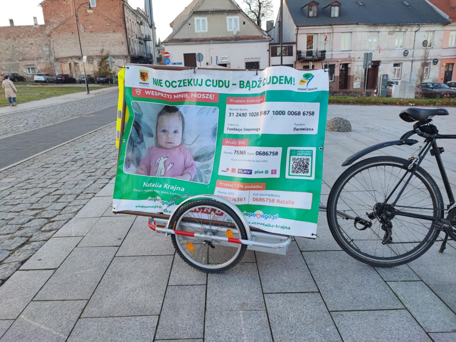 "Witam jestem wolontariuszką zbiórki dla małej 5-miesięcznej Natalki, która musi przejść pilną operację serduszka. Operacja odbyć ma się już w grudniu, do uzbierania mamy ponad milion złotych. Jej tata przemierza Polskę rowerem aby nagłośnić zbiórkę dla swojej córki. Jutro rusza do Torunia w środę pojawi się we Włocławku. Czy zechcieli by się państwo z nim spotkać, bardzo prosimy o wsparcie i nagłośnienie zbiórki."