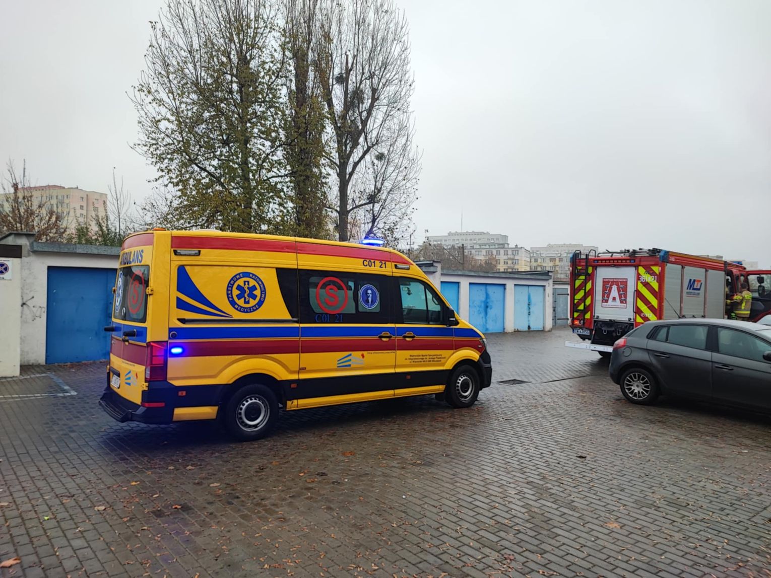 "Stan chorobowy zagrażający życiu. Drzwi otworzyła rodzina, kobieta została przewieziona do szpitala"- poinformował rzecznik PSP M. Bladoszewski