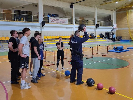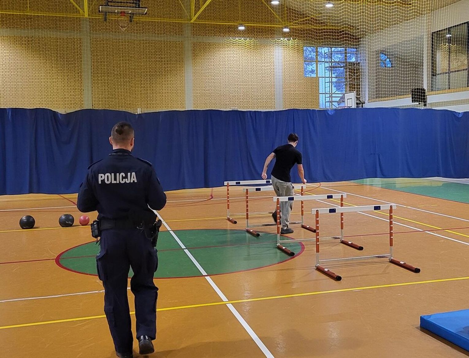 Jedno z takich spotkań odbyło się dzisiaj (4.12.2024) dzięki uprzejmości grona pedagogicznego Zespołu Szkół Samochodowych we Włocławku. Na sali gimnastycznej chętni uczniowie mogli zmierzyć się z torem przeszkód, jaki obowiązuje kandydatów do służby w Policji podczas rekrutacji.