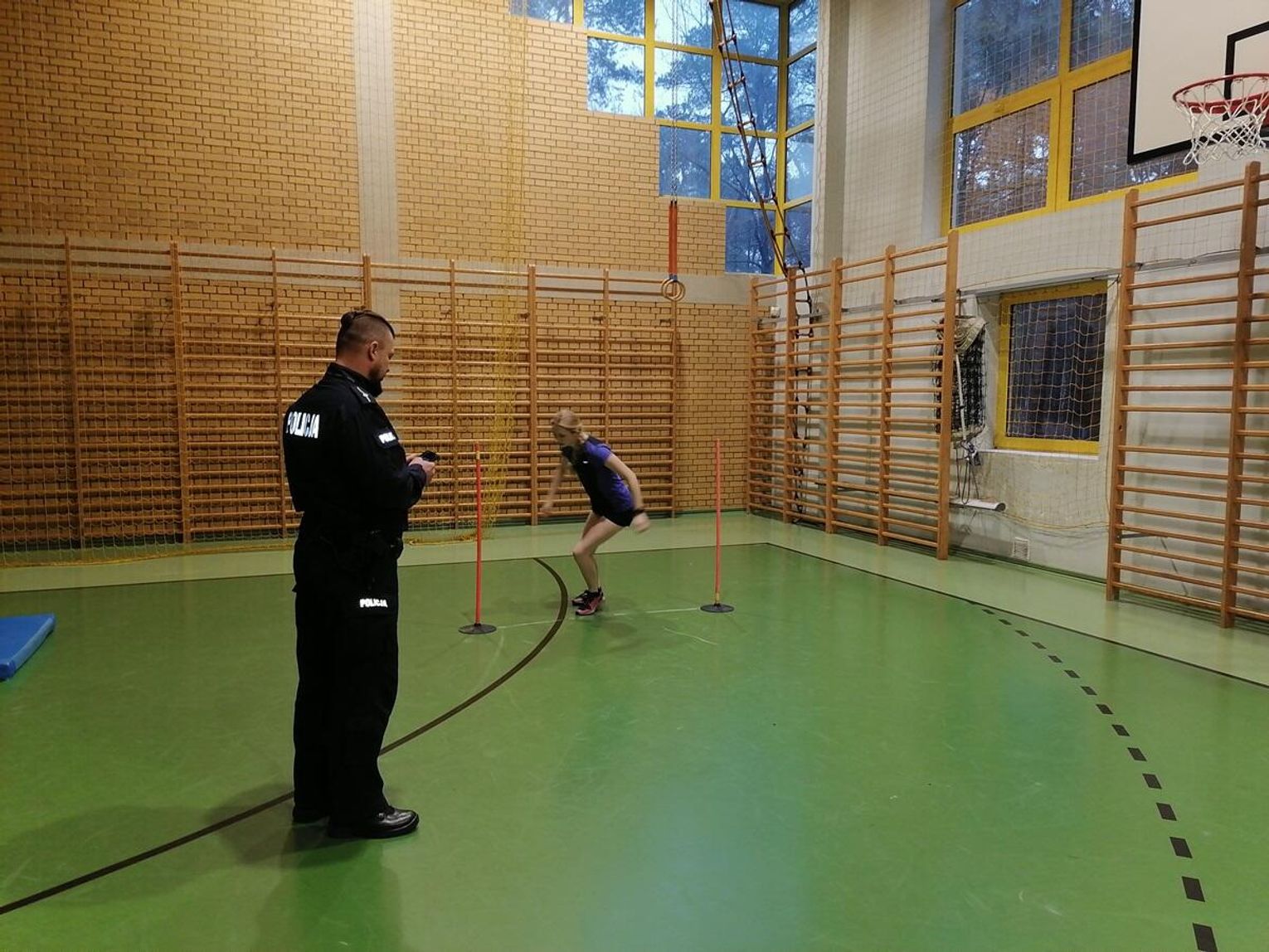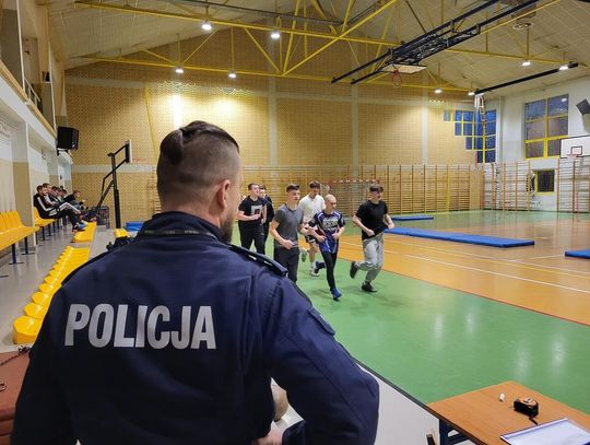 Po solidnej rozgrzewce, przeprowadzonej przez policjantów, przyszedł czas na test sprawności fizycznej. Młodzież z zaangażowaniem wykonywała ćwiczenia, a mundurowi bacznie obserwowali ich zmagania. Udzielali też porad i wskazywali na co należy zwrócić uwagę, by ćwiczenia były wykonane prawidłowo i w odpowiednim czasie.