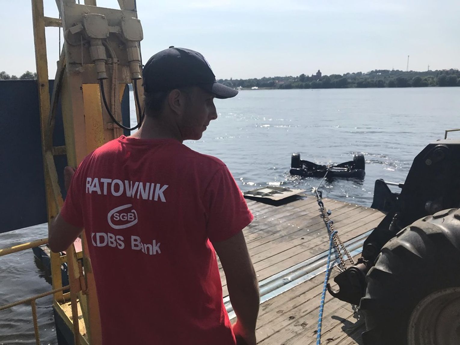 „Nas wezwał właściciel pojazdu. Generalnie to wygląda tak, że jak jest zagrożenie życia czy zdrowia to straż ma obowiązek ratować. Jeśli tego zagrożenia nie ma, to o własne mienie musi zadbać właściciel. (…) Było nas trzy osoby i generalnie użyliśmy sprzętu wykorzystywanego do przeprowadzania prac podwodnych. Naszym zadaniem było podczepienie tego znajdującego się pod wodą samochodu, natomiast wyciągnięcie było w gestii właściciela. To ona załatwił podnośnik, który wyniósł pojazd na prom.”- mówi Sławomir Mularski, prezes zarządu WOPR Włocławek