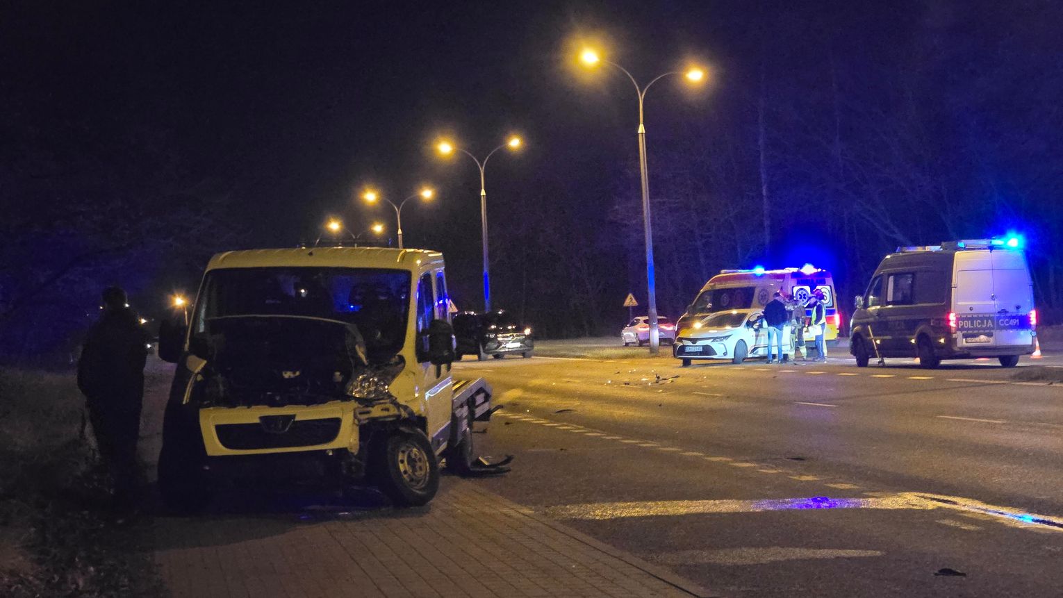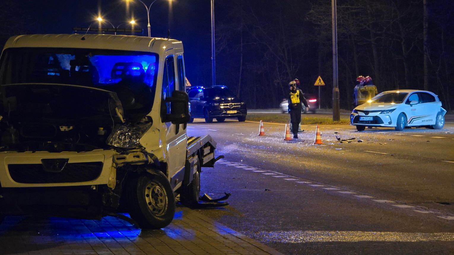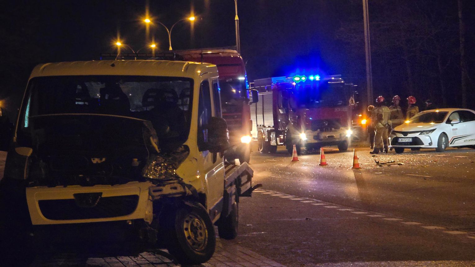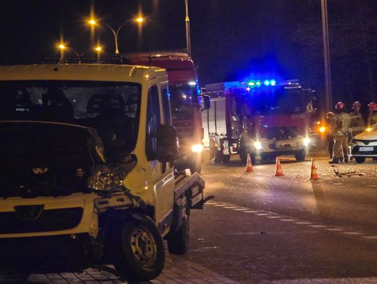 Zderzenie auta osobowego z lawetą na al. Kazimierza Wielkiego. Droga zablokowana