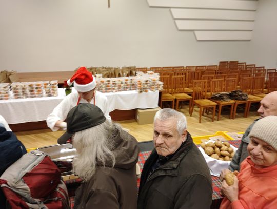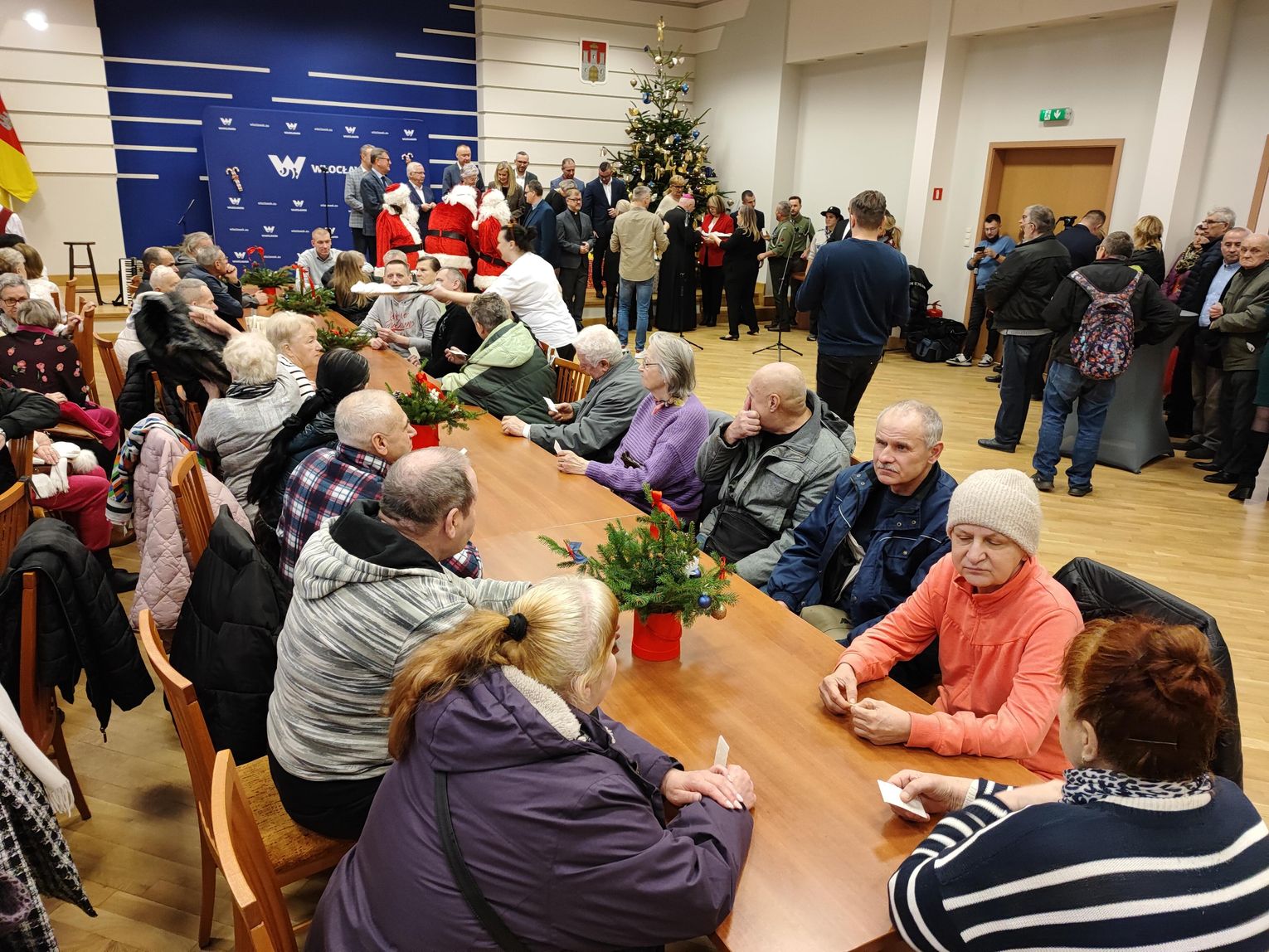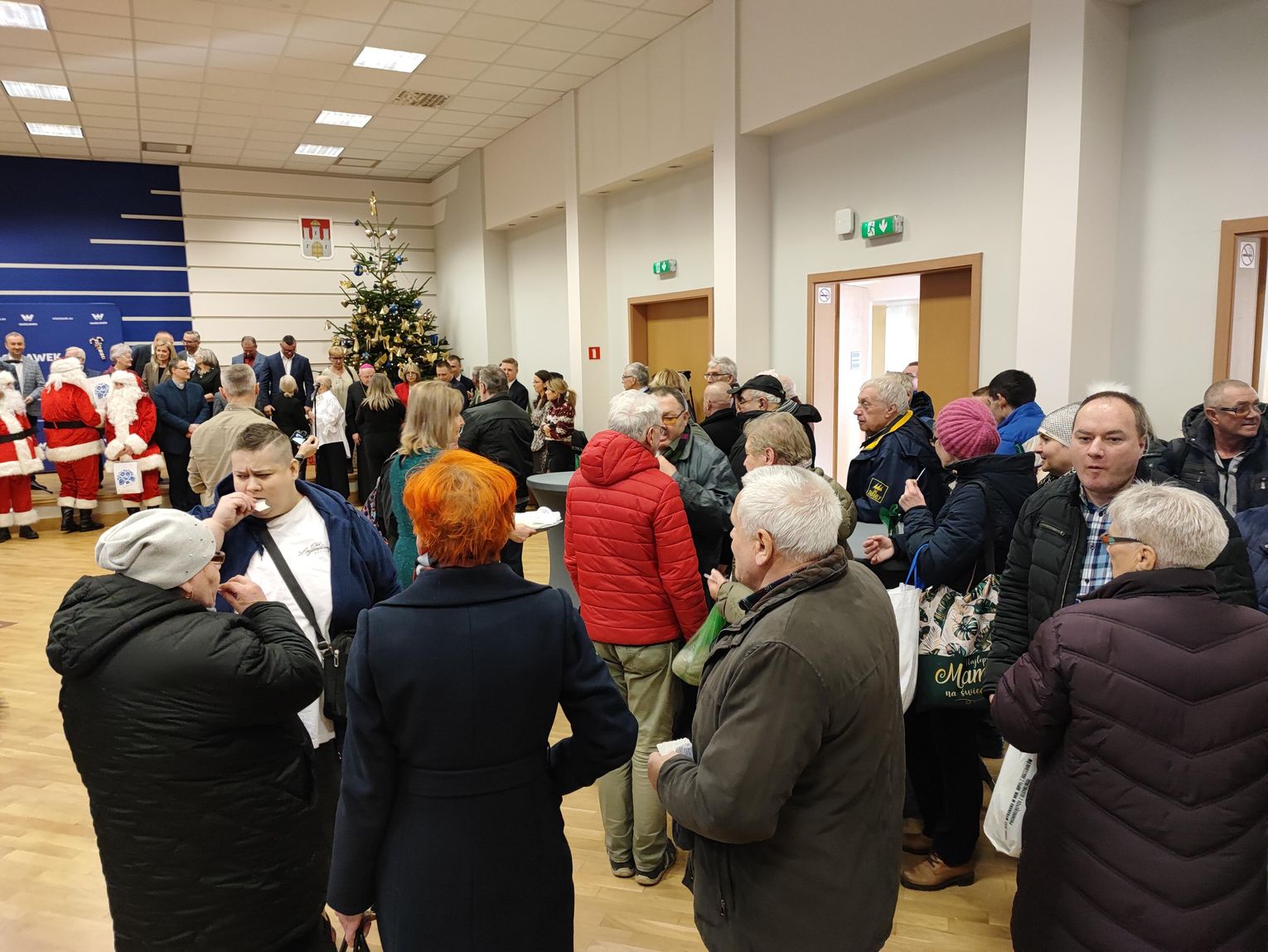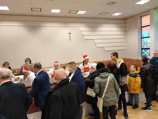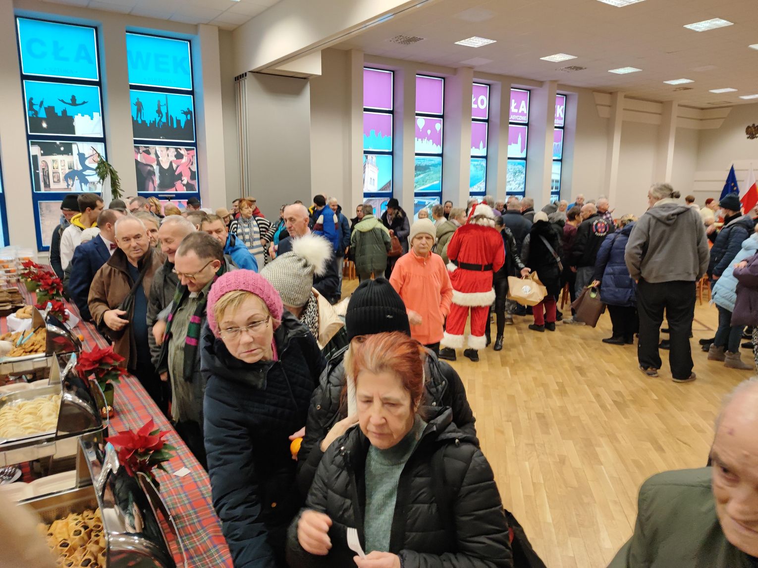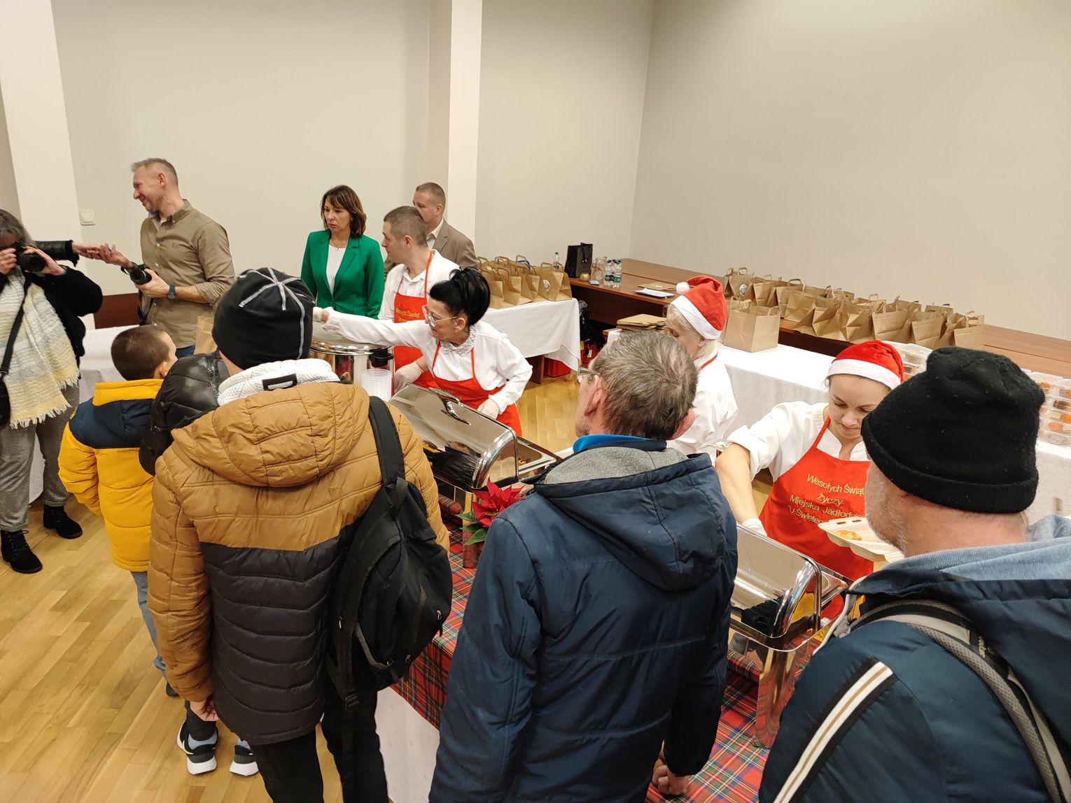 Podczas wigilii obecni byli także radni, którzy dzielili się opłatkiem z mieszkańcami. Nie zabrakło tradycyjnych wigilijnych potraw, przygotowanych przez Jadłodajnię „U Świętego Antoniego”. Świąteczną atmosferę dopełniły kolędy i pastorałki w wykonaniu chóru „Jubilat”, a przy pięknie udekorowanej choince każdy mógł poczuć magię nadchodzących świąt. Byli także Mikołaje, którzy częstowali słodkościami.