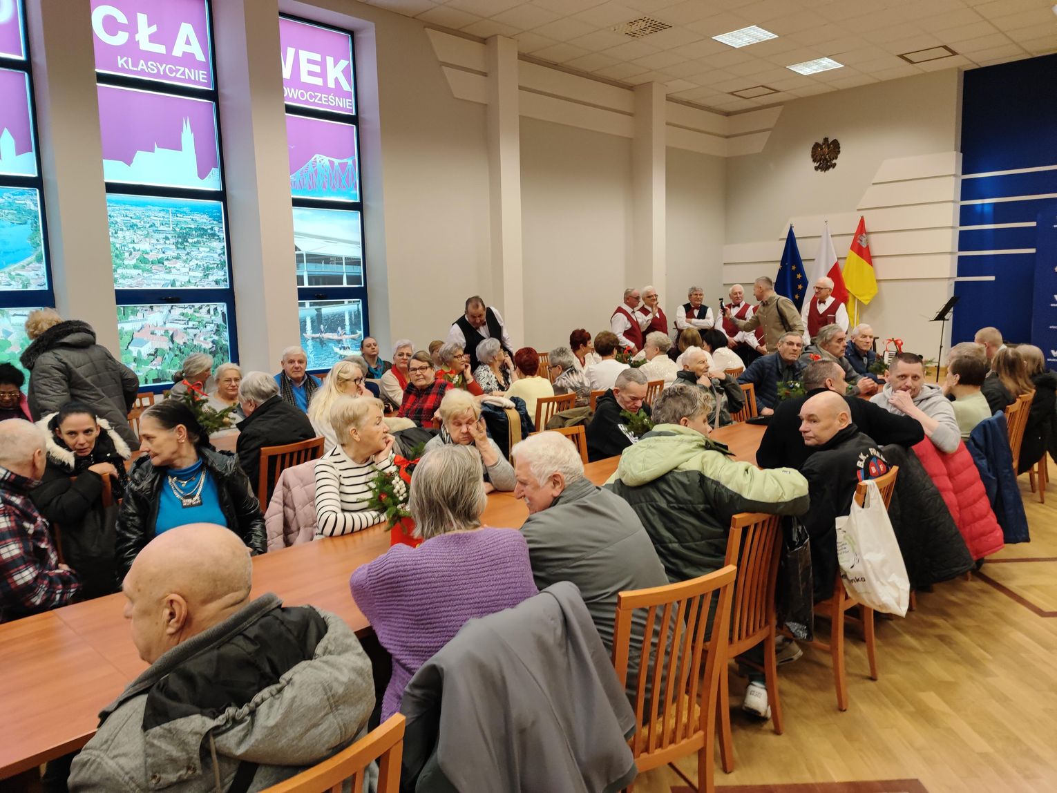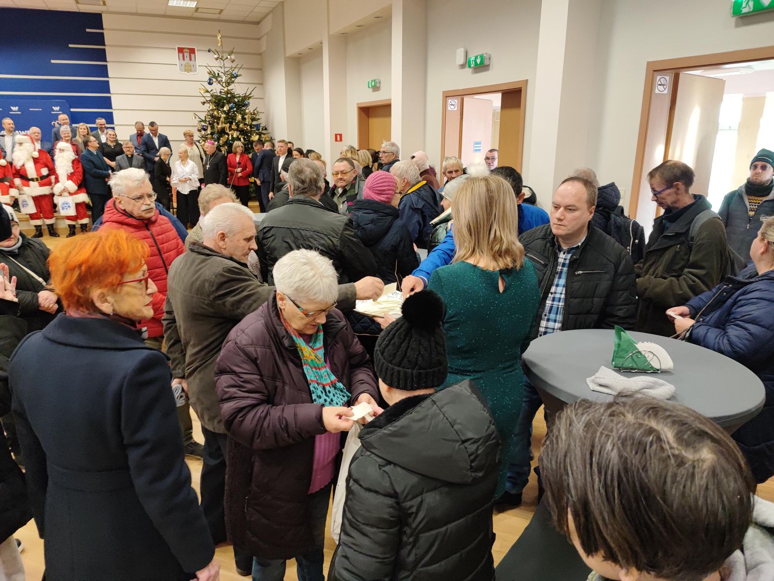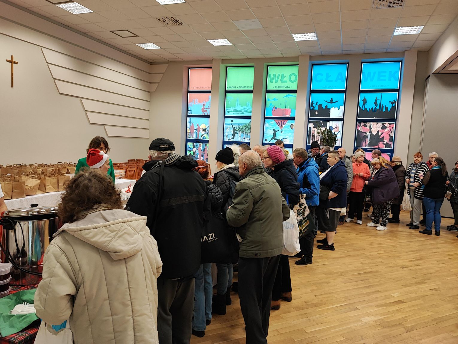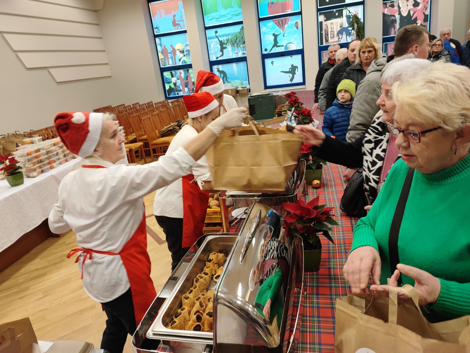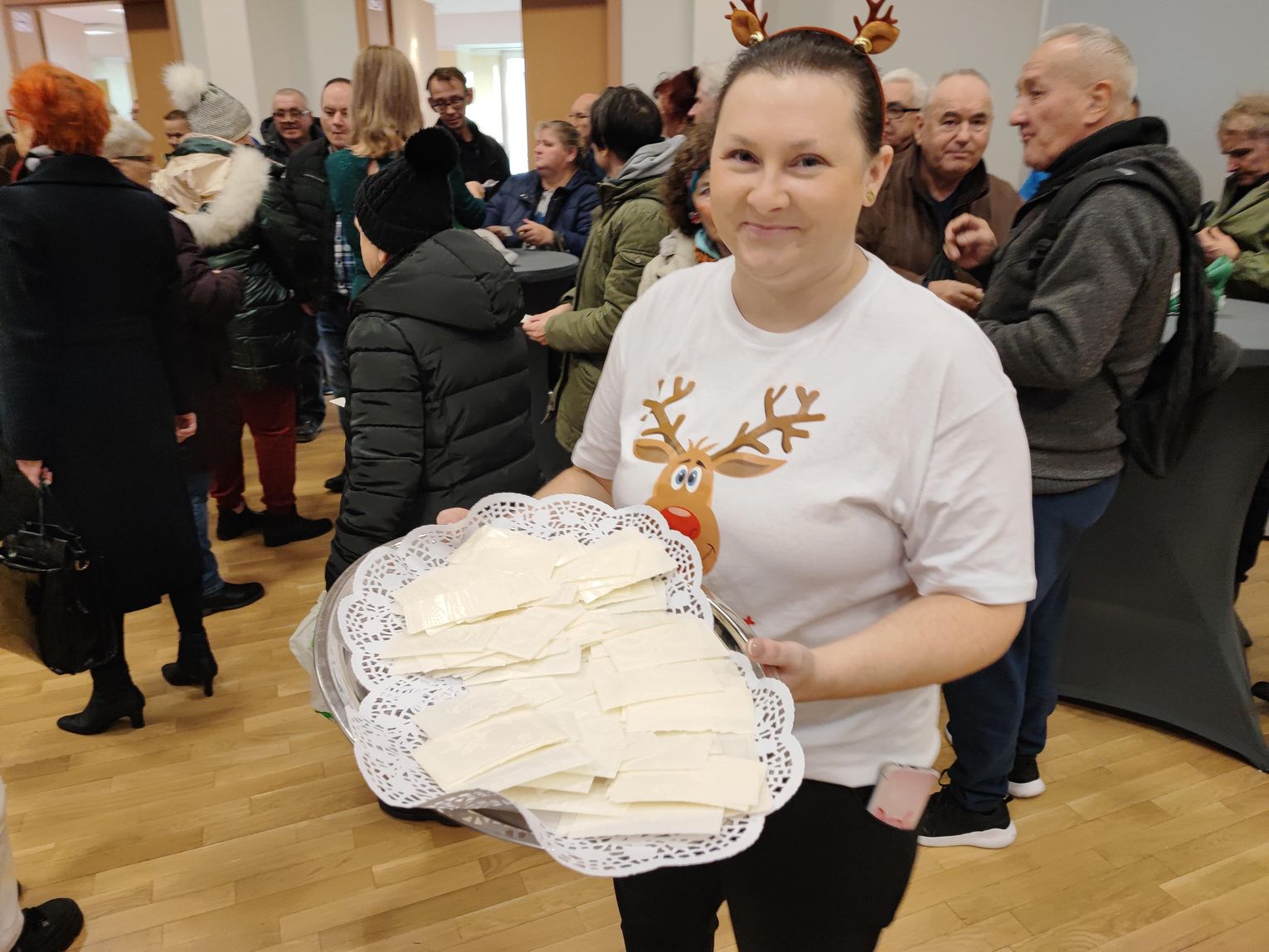 Podczas wigilii obecni byli także radni, którzy dzielili się opłatkiem z mieszkańcami. Nie zabrakło tradycyjnych wigilijnych potraw, przygotowanych przez Jadłodajnię „U Świętego Antoniego”. Świąteczną atmosferę dopełniły kolędy i pastorałki w wykonaniu chóru „Jubilat”, a przy pięknie udekorowanej choince każdy mógł poczuć magię nadchodzących świąt. Byli także Mikołaje, którzy częstowali słodkościami.