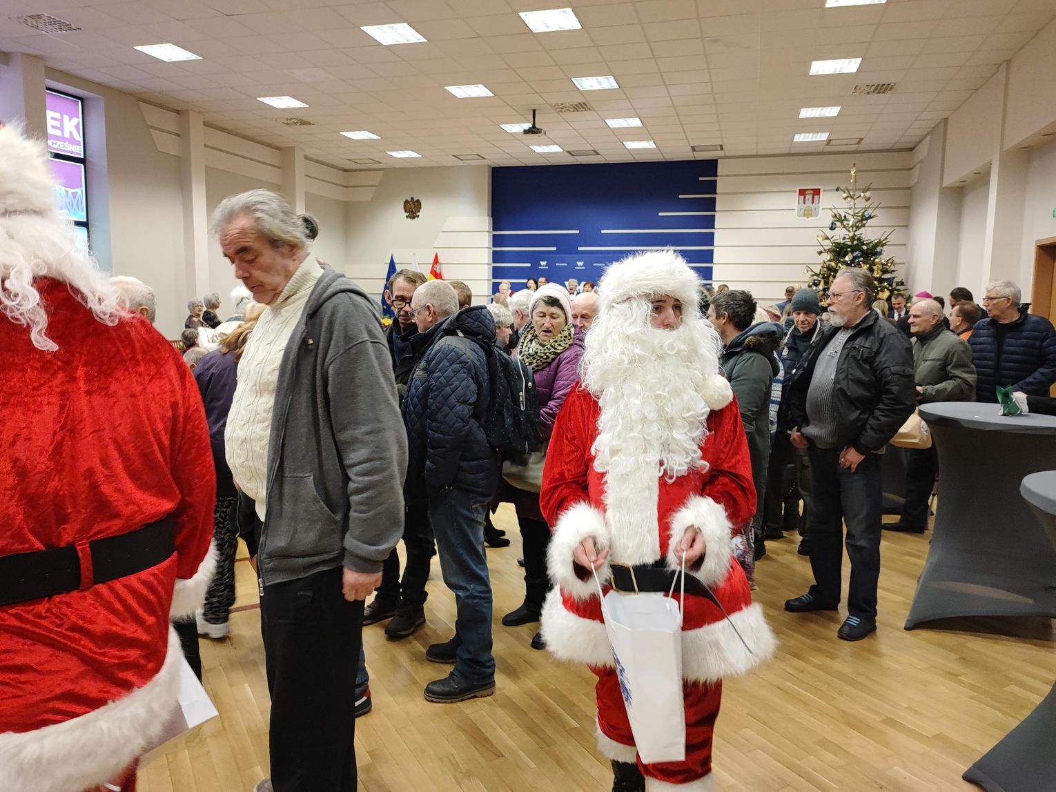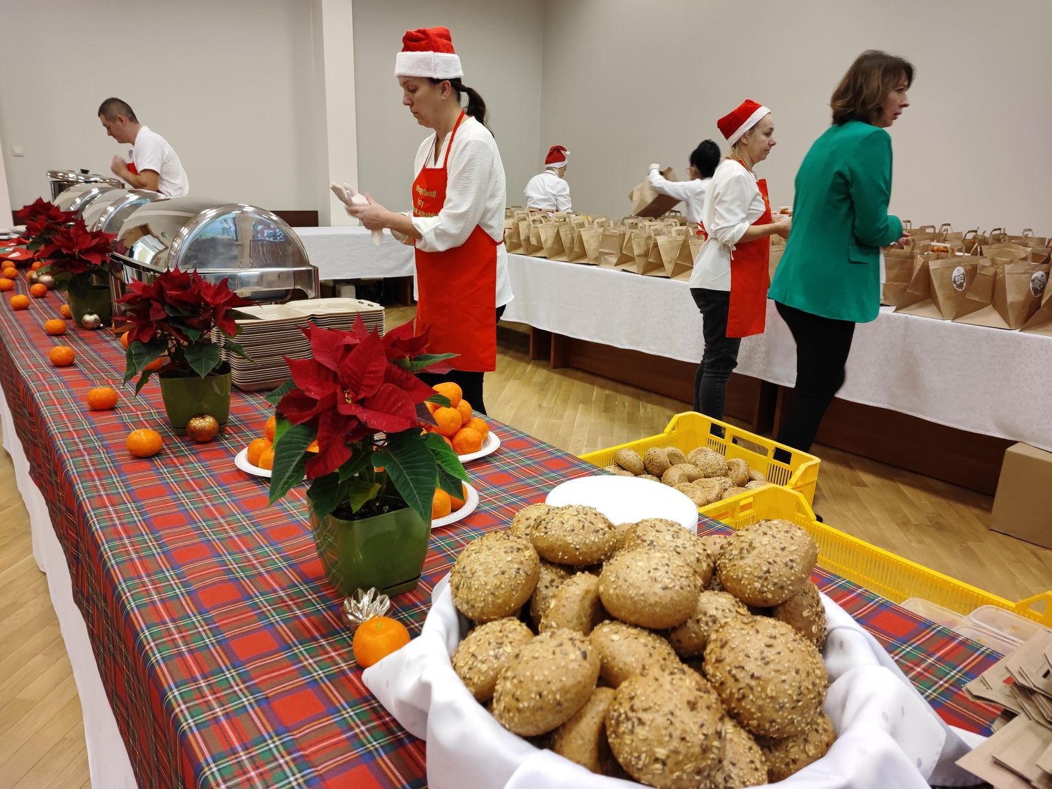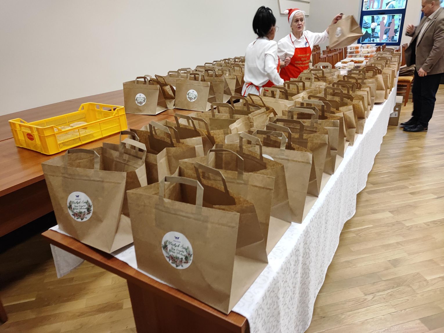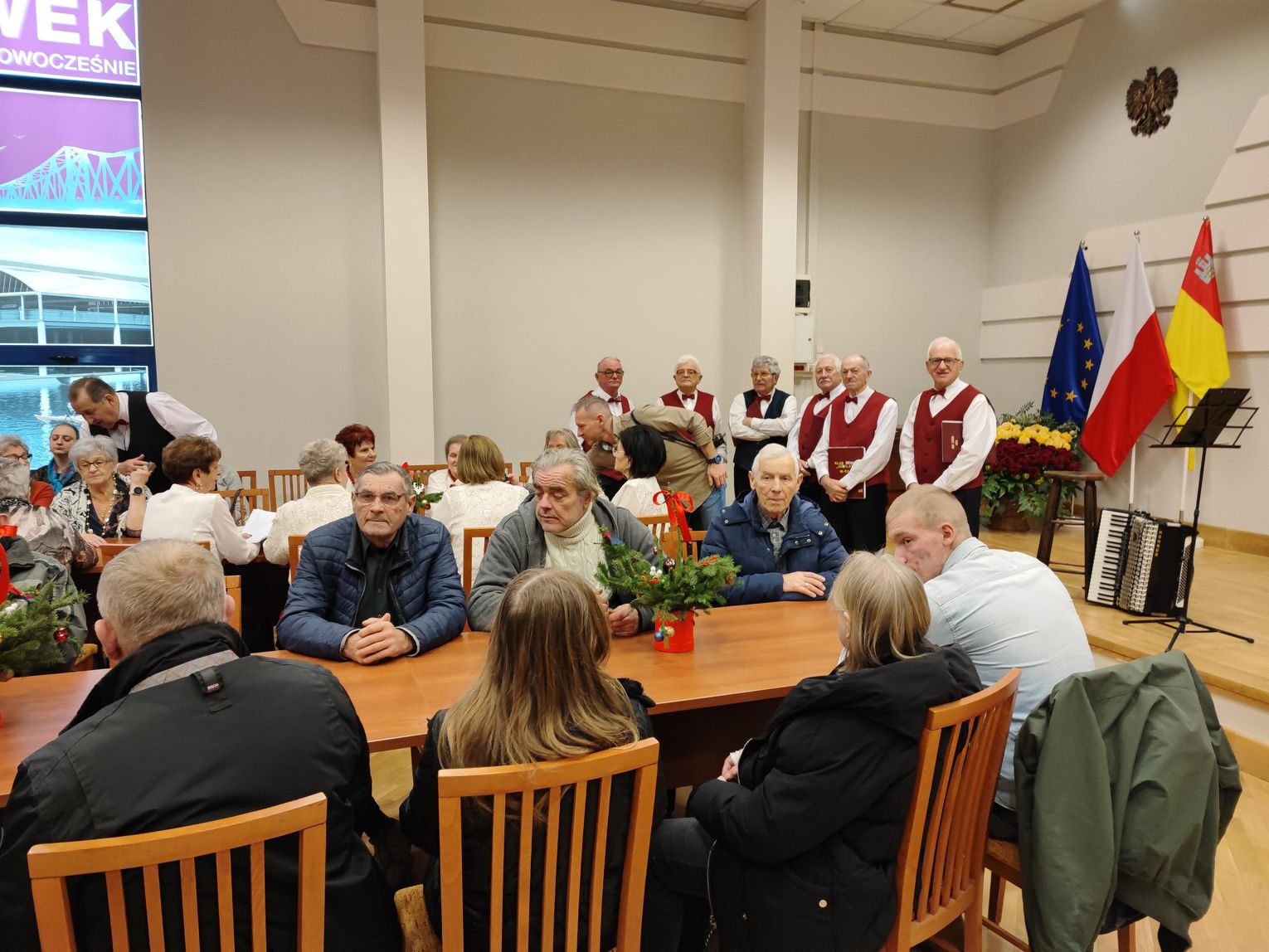 Podczas wigilii obecni byli także radni, którzy dzielili się opłatkiem z mieszkańcami. Nie zabrakło tradycyjnych wigilijnych potraw, przygotowanych przez Jadłodajnię „U Świętego Antoniego”. Świąteczną atmosferę dopełniły kolędy i pastorałki w wykonaniu chóru „Jubilat”, a przy pięknie udekorowanej choince każdy mógł poczuć magię nadchodzących świąt. Byli także Mikołaje, którzy częstowali słodkościami.