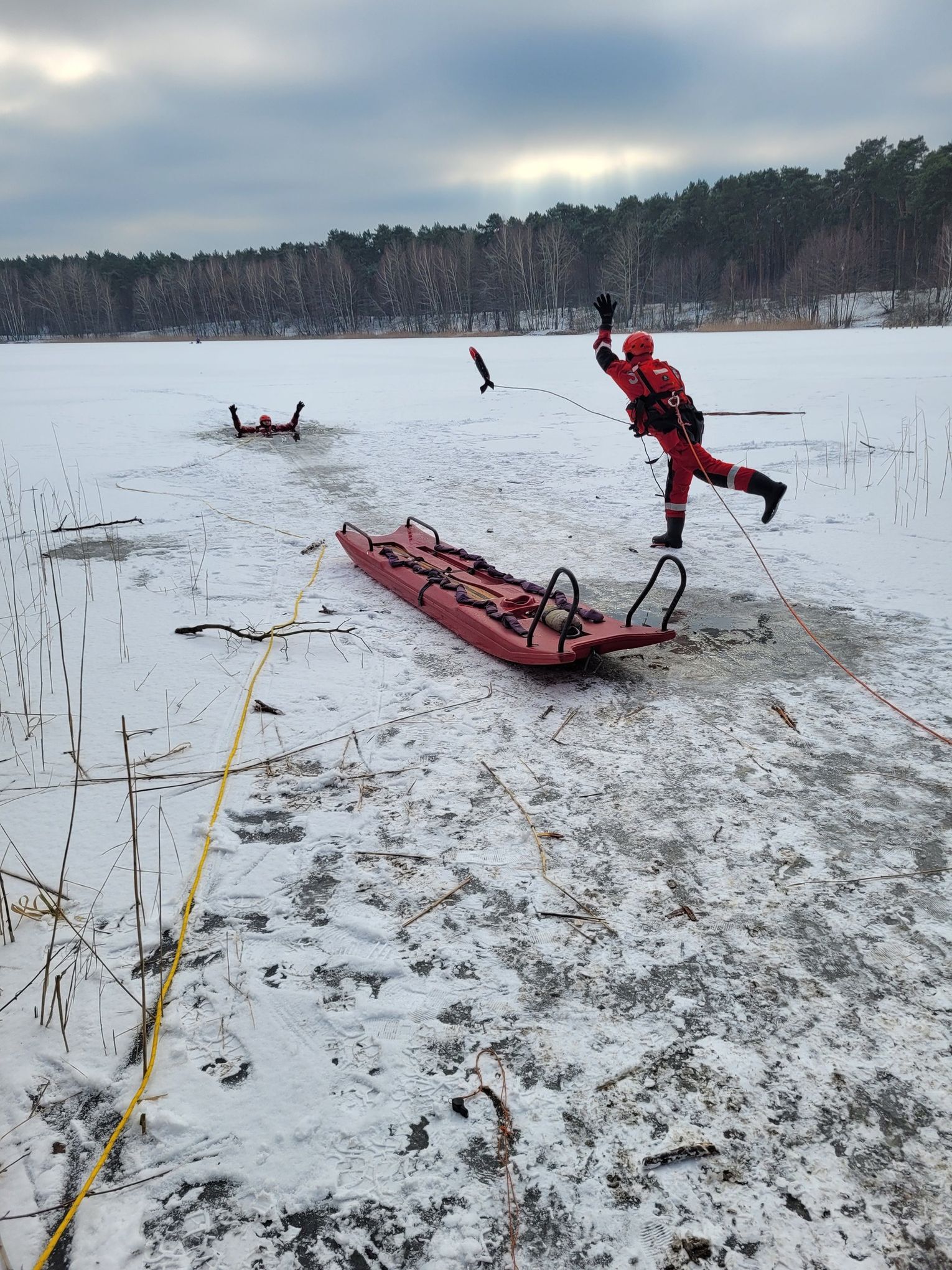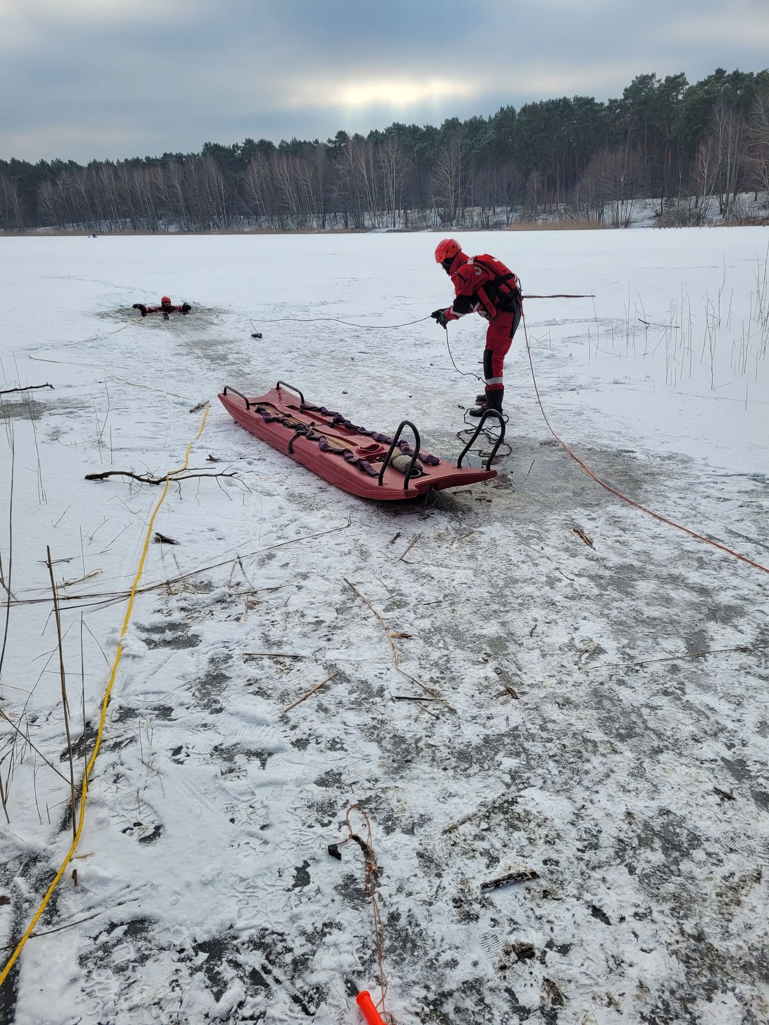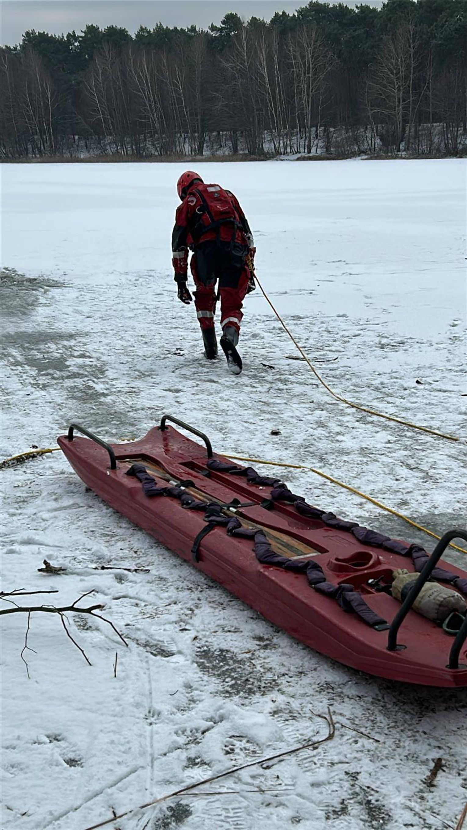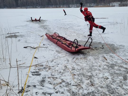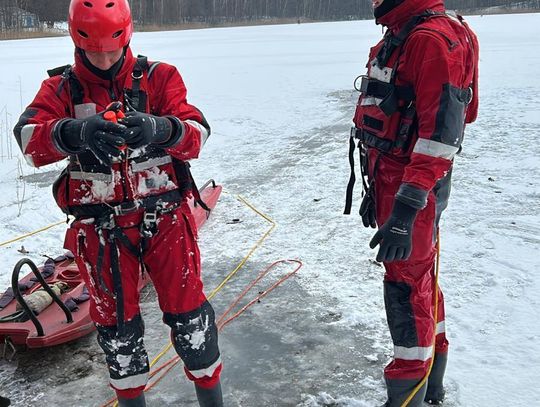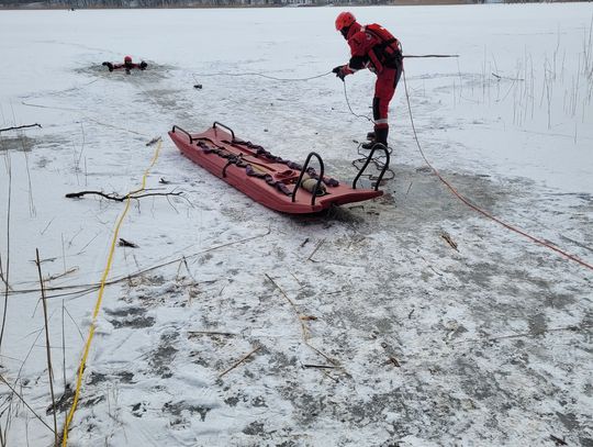 Chłodna aura sprzyja doskonaleniu umiejętności ratowania osób, pod którymi załamał się lód. Dziś rano strażacy z Jednostki Ratowniczo-Gaśniczej nr 2 we Włocławku prowadzili ćwiczenia z ratownictwa lodowego na Jeziorze Czarnym. Zajęcia te mają na celu szlifowanie technik ratowniczych oraz sprawne i skuteczne działanie w sytuacjach zagrożenia życia na zamarzniętych akwenach. Podczas ćwiczeń strażacy używali specjalistycznego sprzętu m.in. sań lodowych, rzutek ratowniczych oraz kombinezonów do pracy w wodzie.
