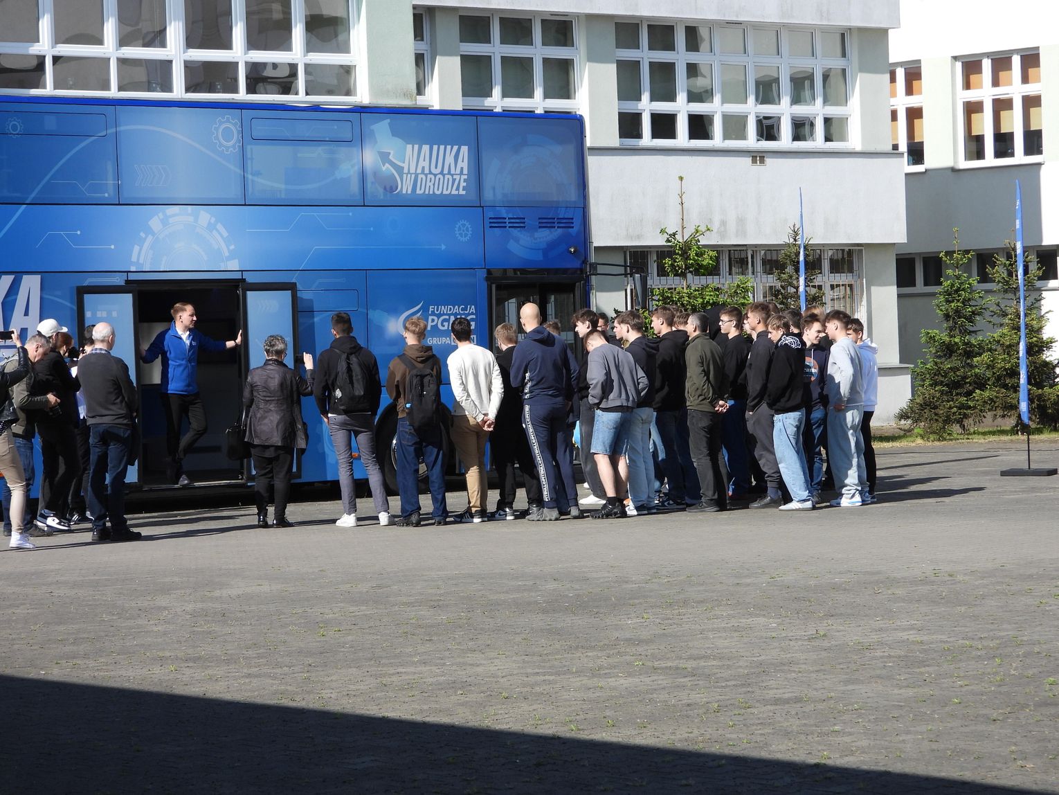 Na zaproszenie włocławskiej Fundacji ANWIL, Fundacja PGNiG im. Ignacego Łukasiewicza realizowała w Zespole Szkół Elektrycznych we Włocławku wizytę Mobilnego Laboratorium Naukowego „Nauka w Drodze”. Wydarzenie rozpoczęło się dziś o godzinie 9:00. W ramach projektu zorganizowano warsztaty i pokazy edukacyjne dla młodzieży, prowadzone w specjalnie przystosowanym dwupoziomowym Naukobusie.