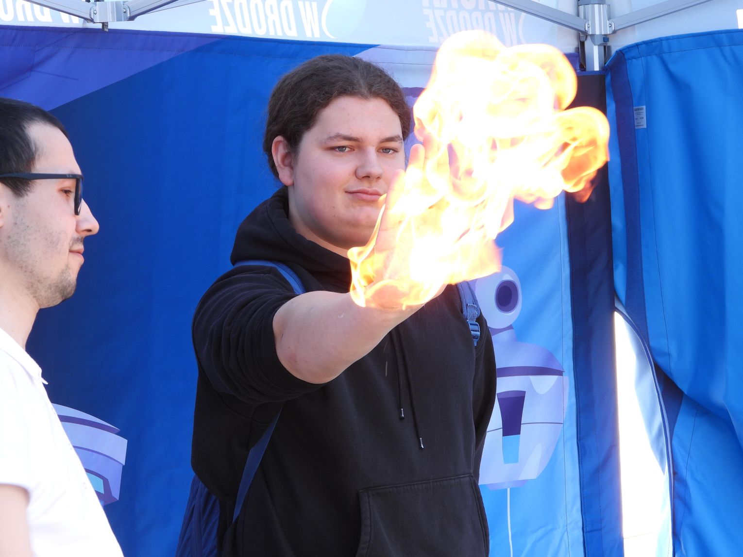Pierwsza grupa uczniów została podzielona na trzy zespoły. Każdy miał okazję, pod okiem wyspecjalizowanych koordynatorów przeprowadzać eksperymenty naukowe z dziedziny chemii oraz fizyki. Wiele z nich był bardzo spektakularnych.