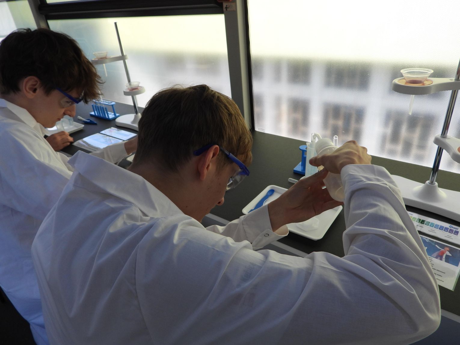 - warsztaty chemiczne (m.in. pipetowanie, dekantacja, praca z probówkami)