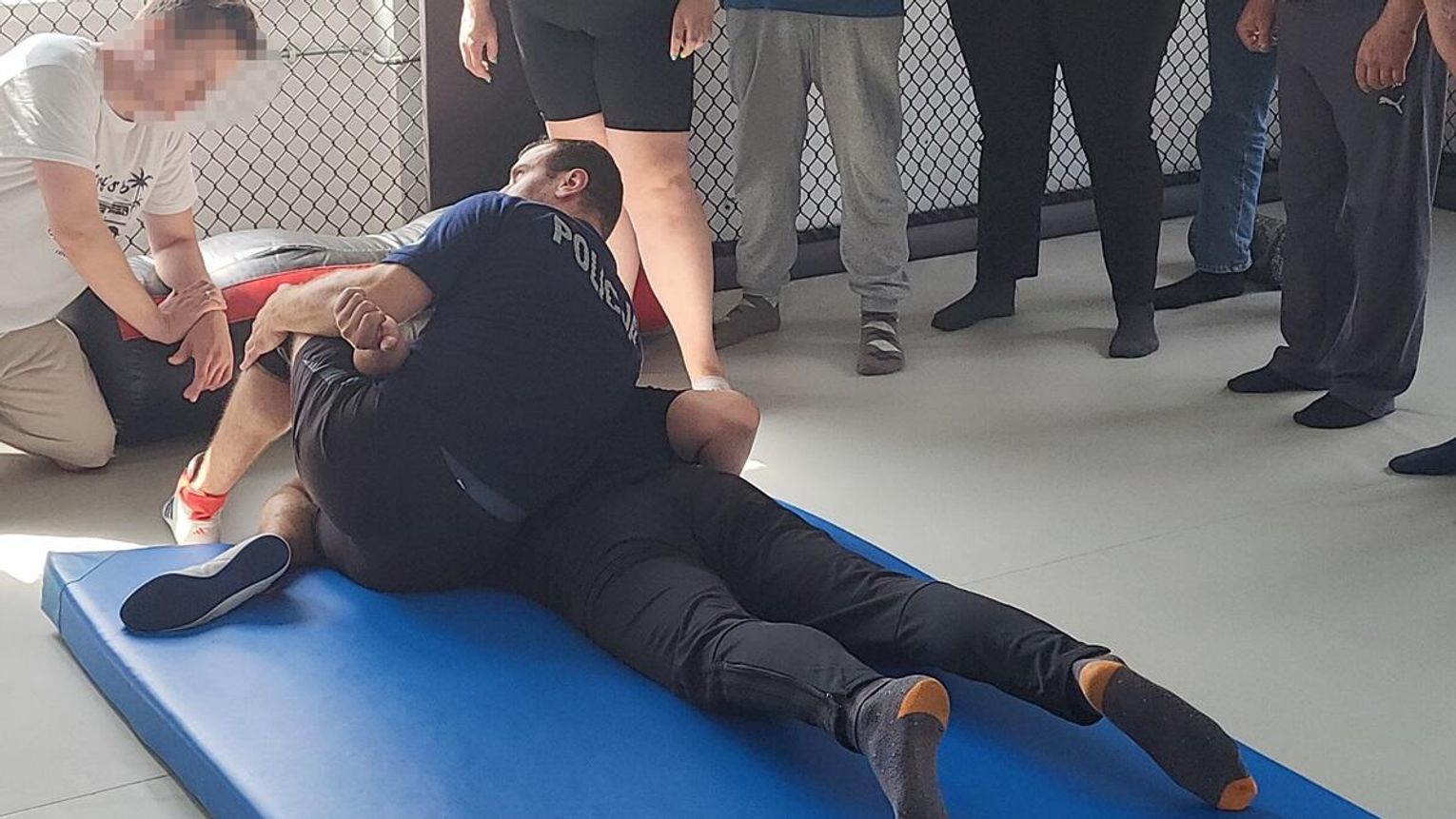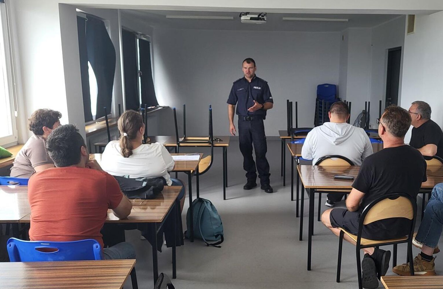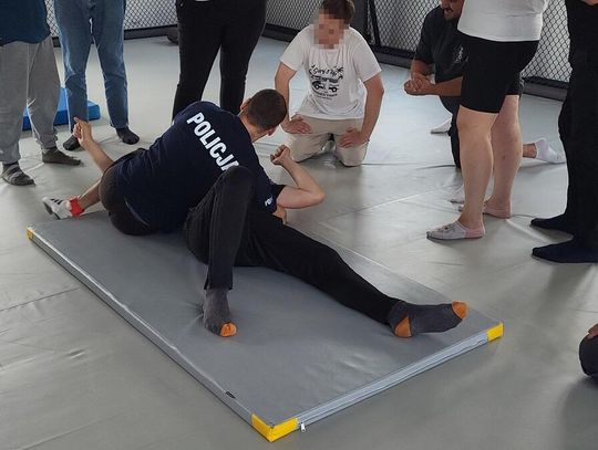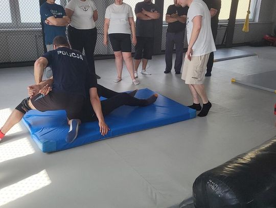Zajęcia prowadzi instruktor policyjny, który na co dzień szkoli funkcjonariuszy komendy. Mundurowy wyjaśnił uczestniczącym w szkoleniu ratownikom zasady efektywnego odpierania ataku, prezentując techniki skutecznej obrony w obliczu agresywnych zachowań.