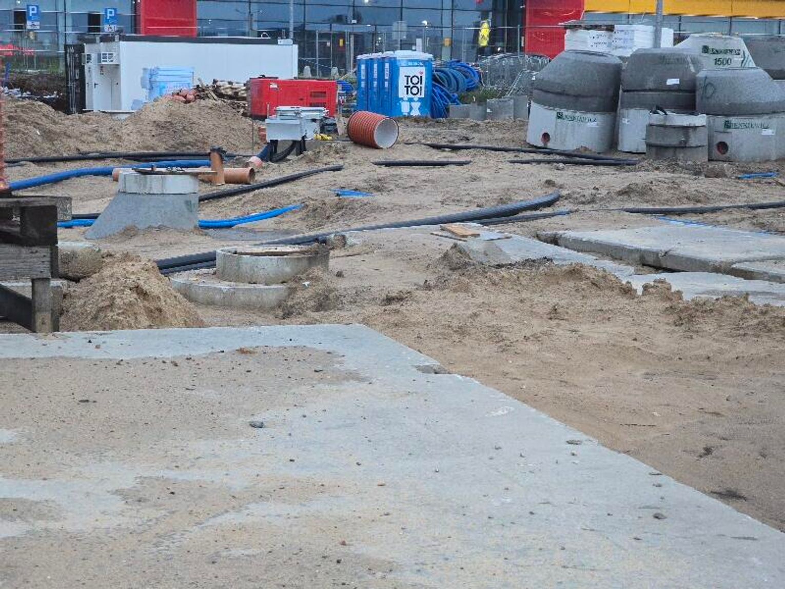 Obecnie na terenie działki trwają zaawansowane prace budowlane. Widoczne są wykopy, instalacje podziemne oraz zarysy konstrukcji budynku głównego stacji. Zamontowano już duże przeszklenia oraz wyodrębniono strefę wejściową. Na miejscu działa ciężki sprzęt, prowadzone są roboty ziemne i instalacyjne.