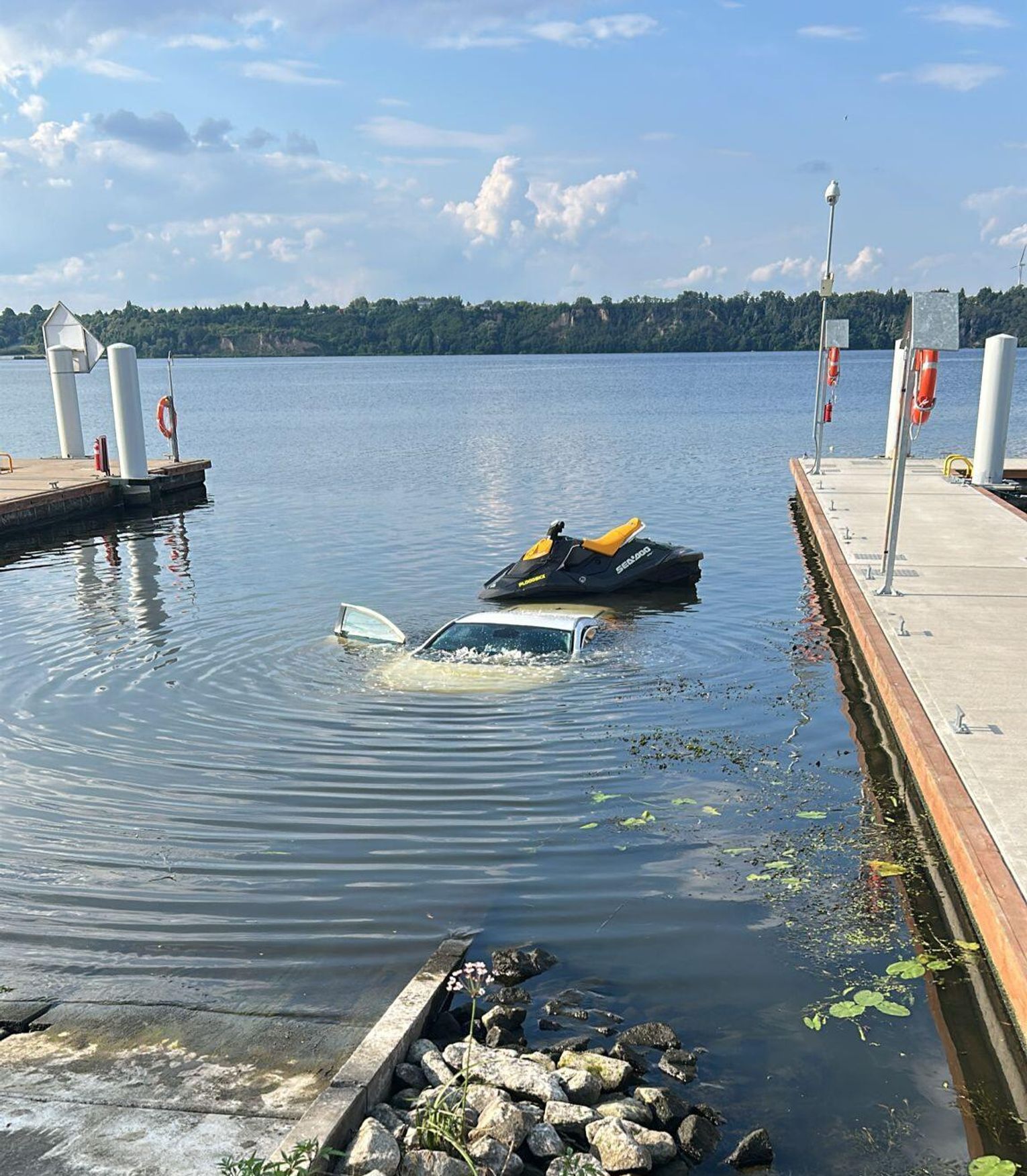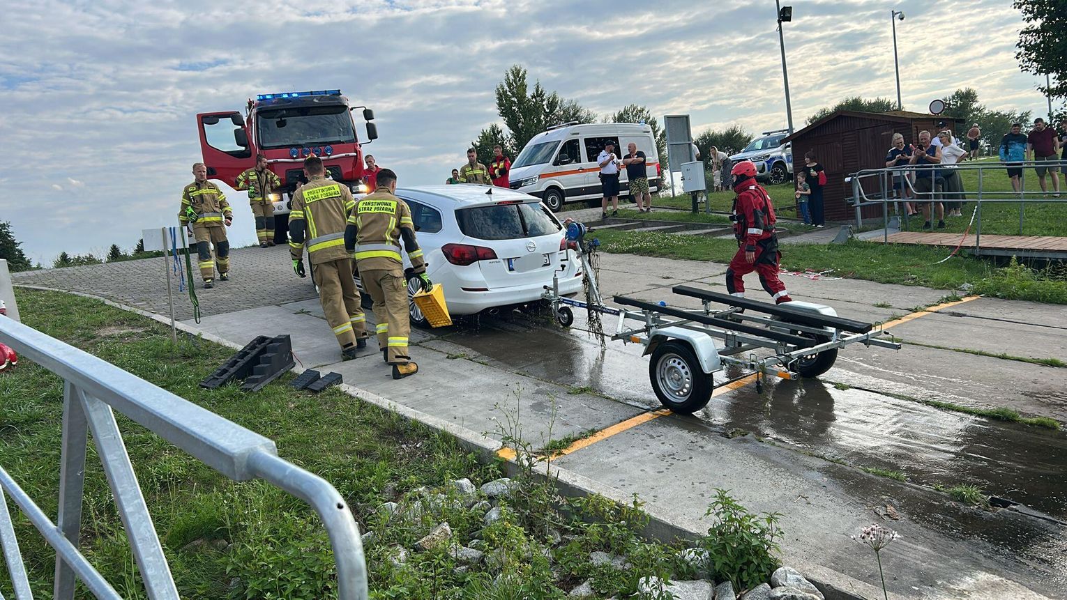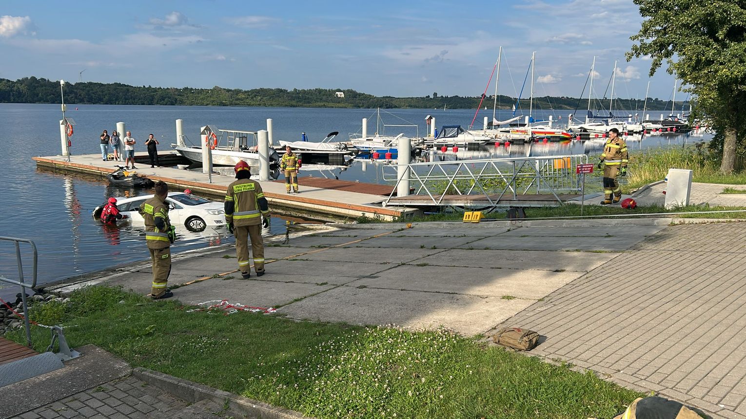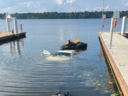 W sobotę około godziny 17:15 straż pożarna została zadysponowana do zdarzenia na przystani przy ul. Płockiej 118 we Włocławku. Na miejscu okazało się, że w wodzie znajduje się zatopiony samochód osobowy.