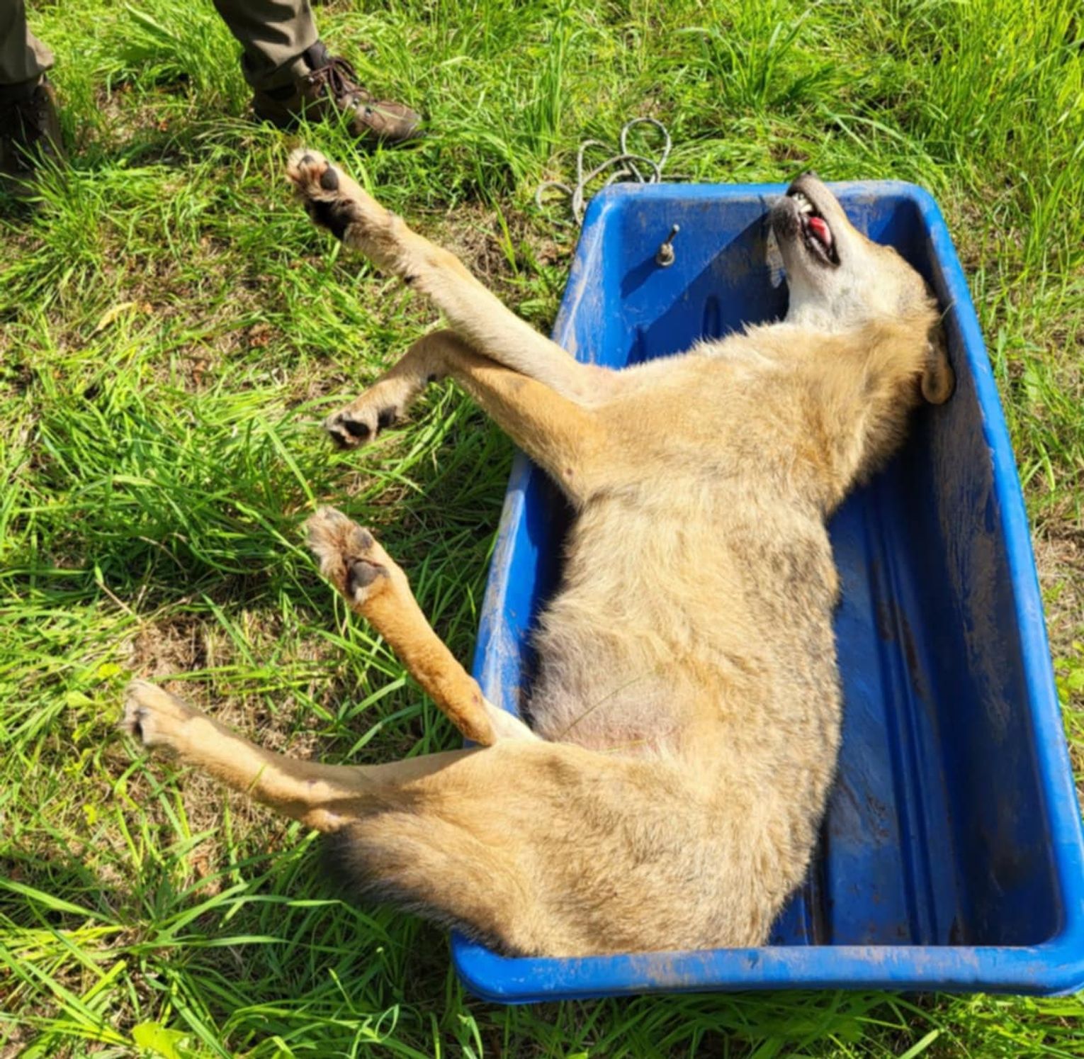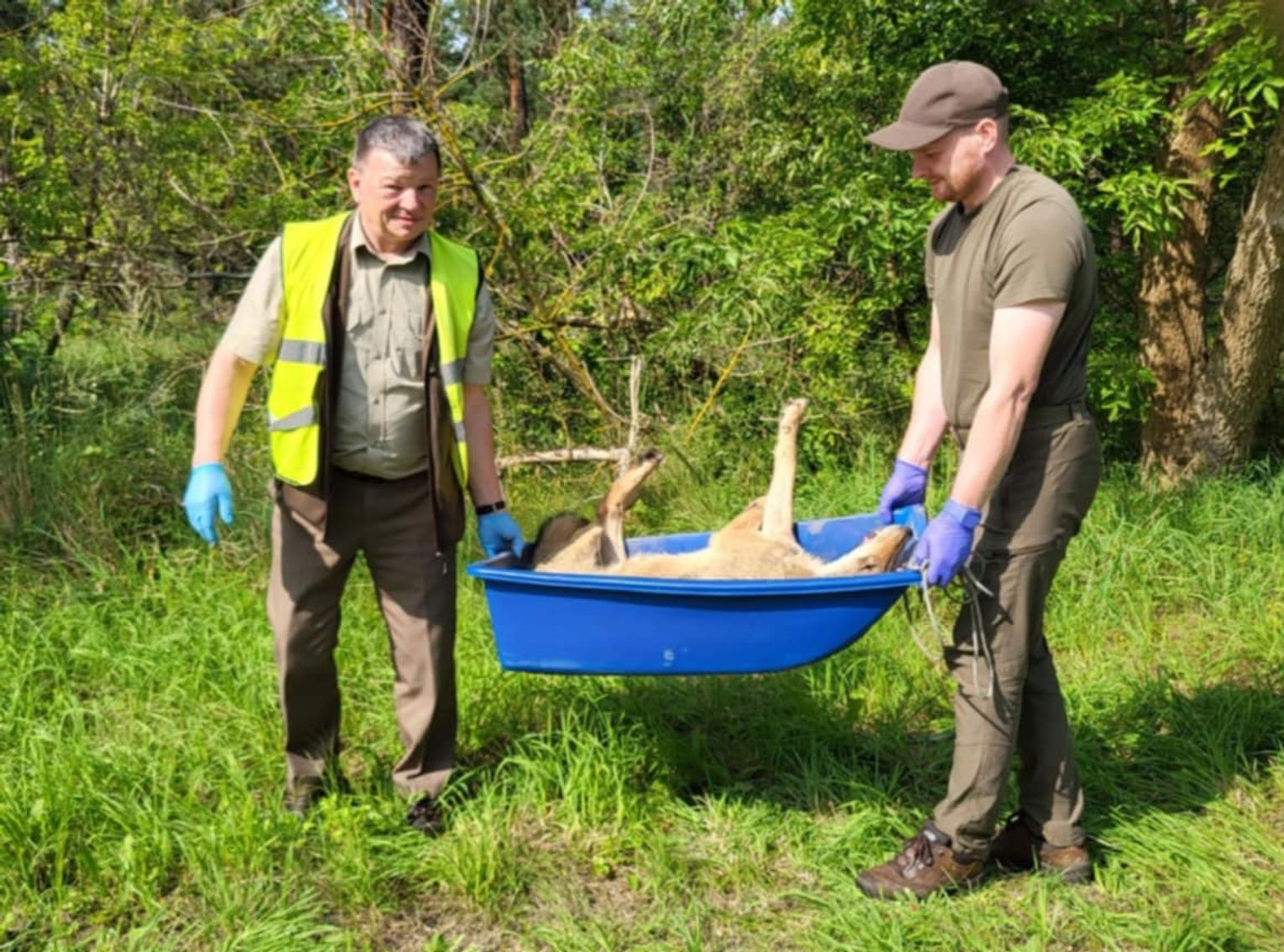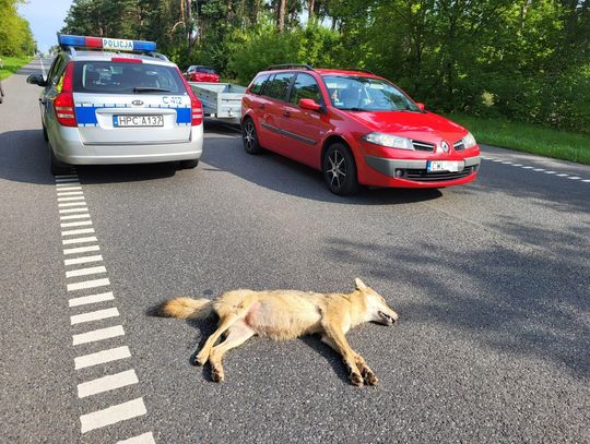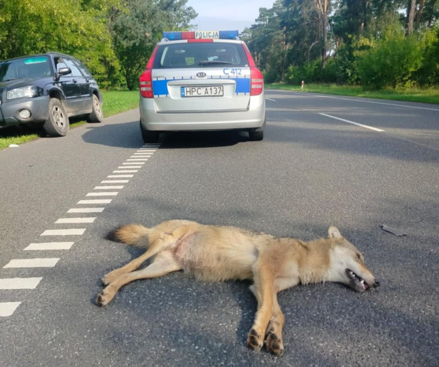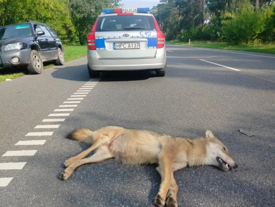 Tusza wilka została zabezpieczona przez służby leśne. Zwierzę weszło na jezdnię z pobliskiego kompleksu leśnego. Sprawą zajmuje się nadleśnictwo.