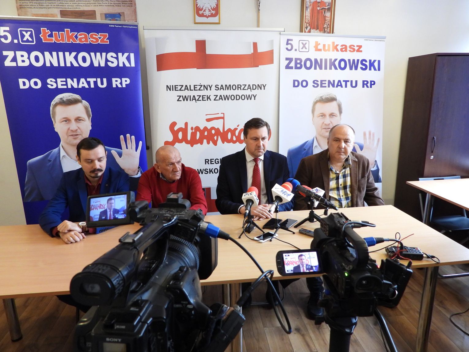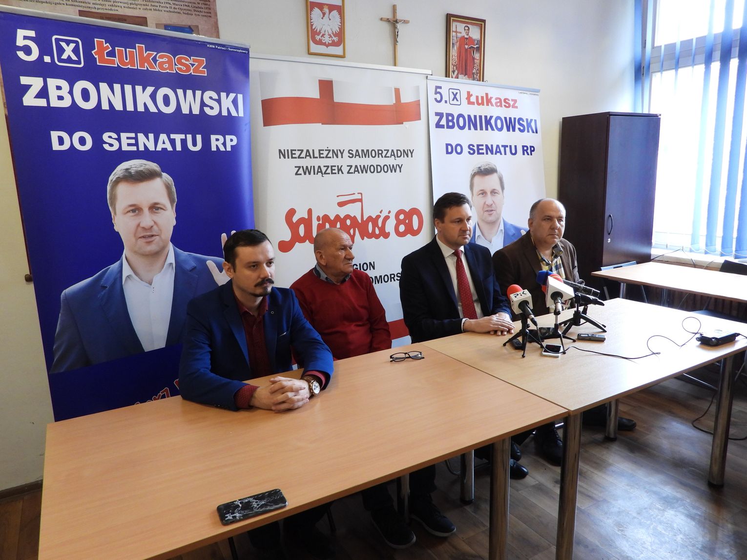 „W październiku, kiedy rozstrzygnie się los Polski na kolejne cztery lata, kształt parlamentu i kto będzie nas reprezentował w Sejmie i Senacie, ważne jest dla mnie, że poparcie otrzymuję od swoich kolegów i koleżanek związkowców z »Solidarności 80«. (…) Jeżeli uda się zdobyć ten jeden mandat senatorski na pewno będzie to służyć sprawom pracowniczym, sprawom związkowym.” - dodał poseł Łukasz Zbonikowski