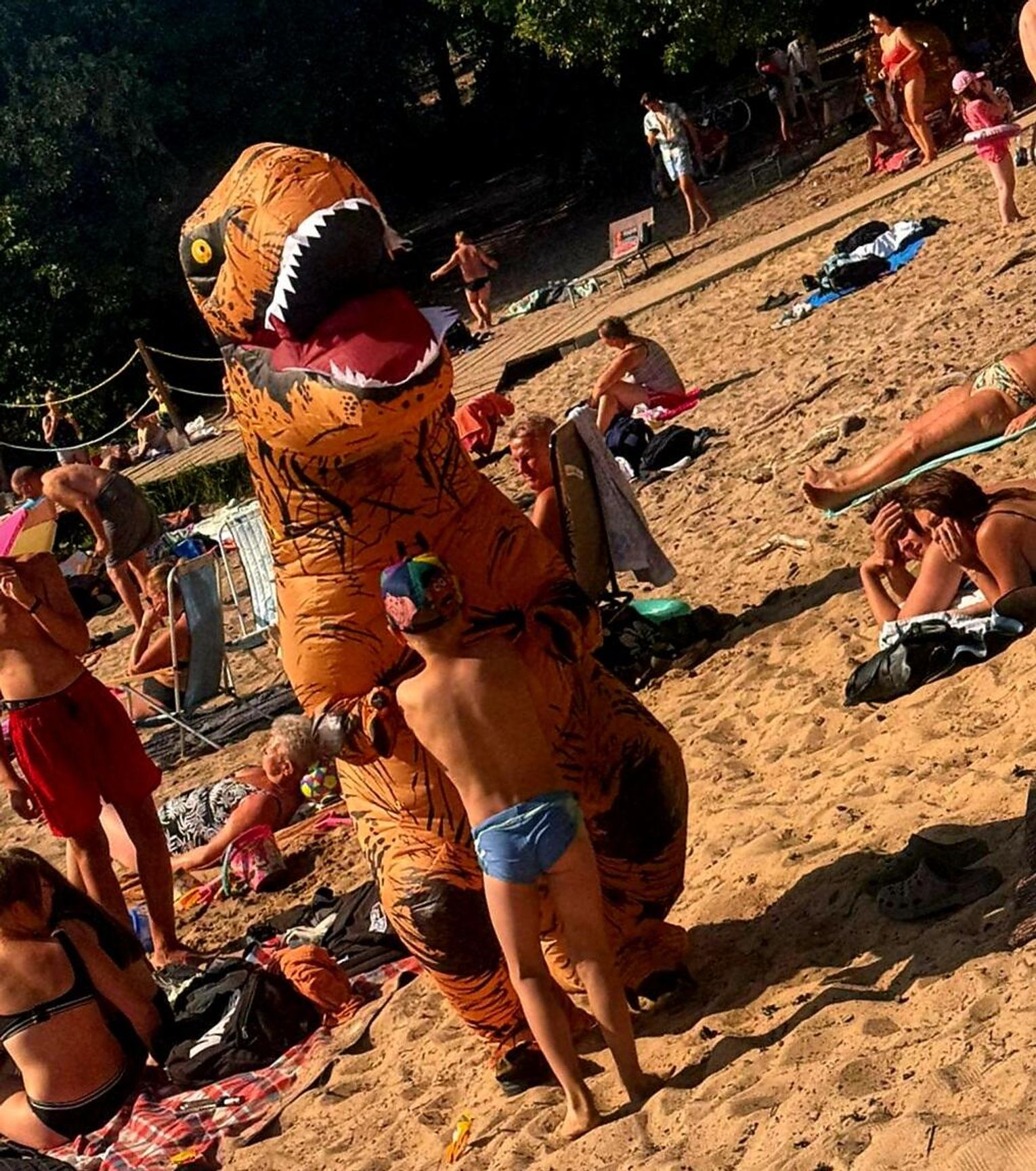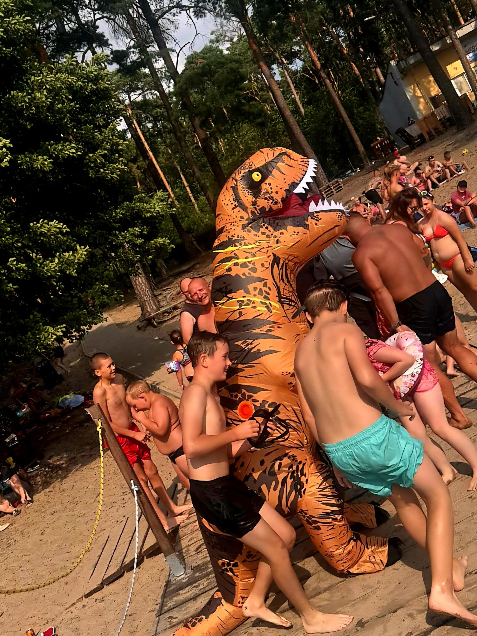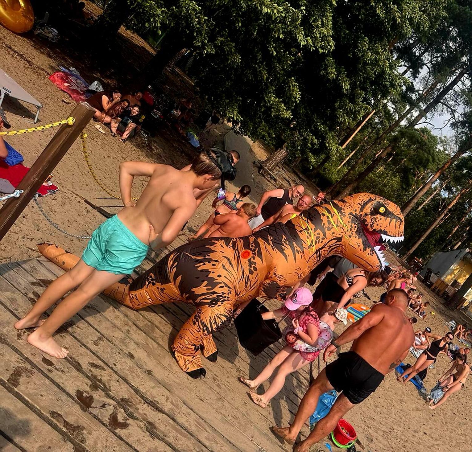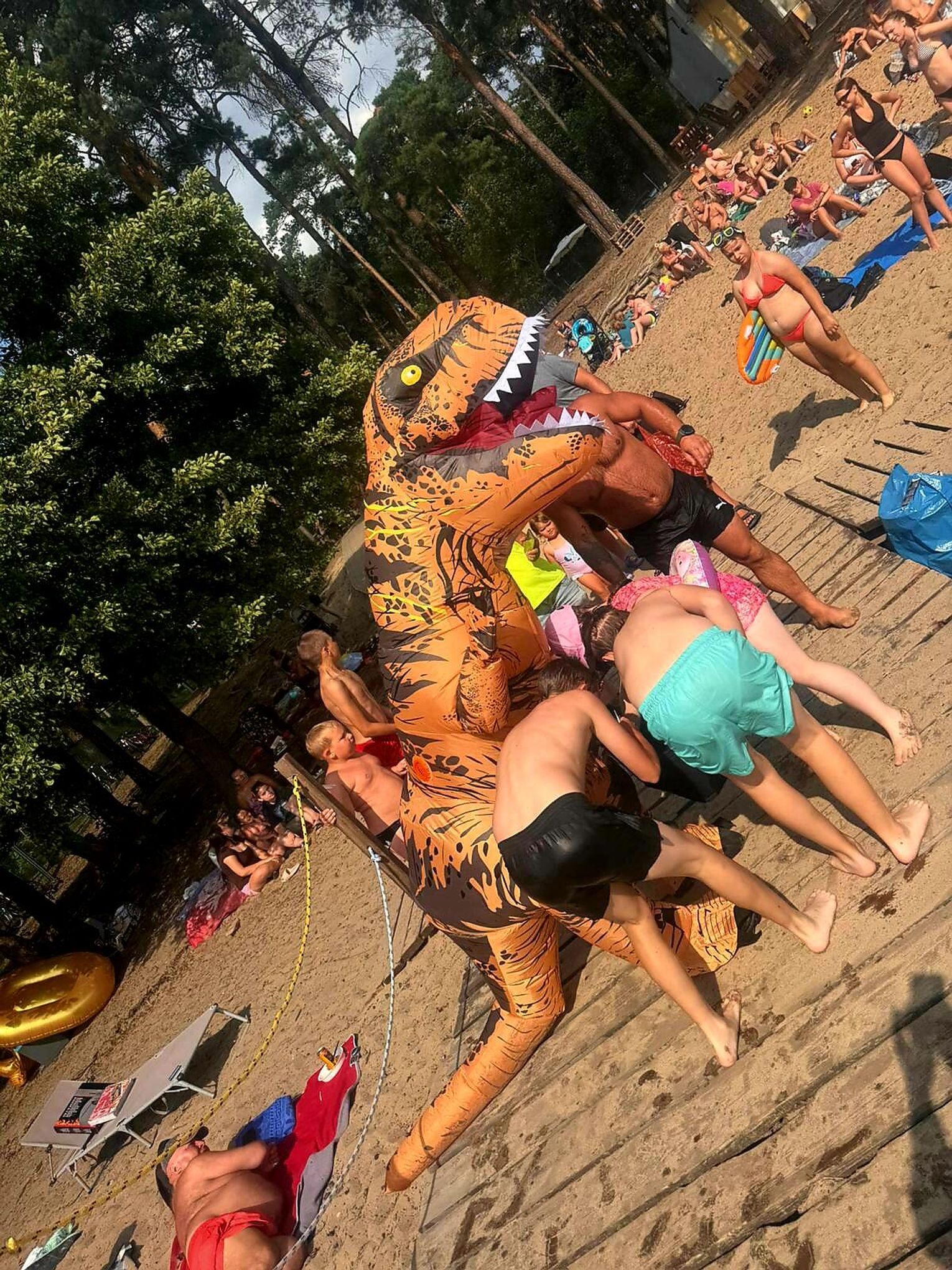 Atrakcja od razu przyciągnęła uwagę plażowiczów. Dzieci z entuzjazmem biegały wokół prehistorycznego gościa, a dorośli chętnie robili pamiątkowe zdjęcia. Dinozaur zadbał, by nikomu nie zabrakło dobrej zabawy – częstował lizakami i rozmawiał z plażowiczami, a towarzyszyli mu ratownicy czuwający nad bezpieczeństwem wypoczywających.