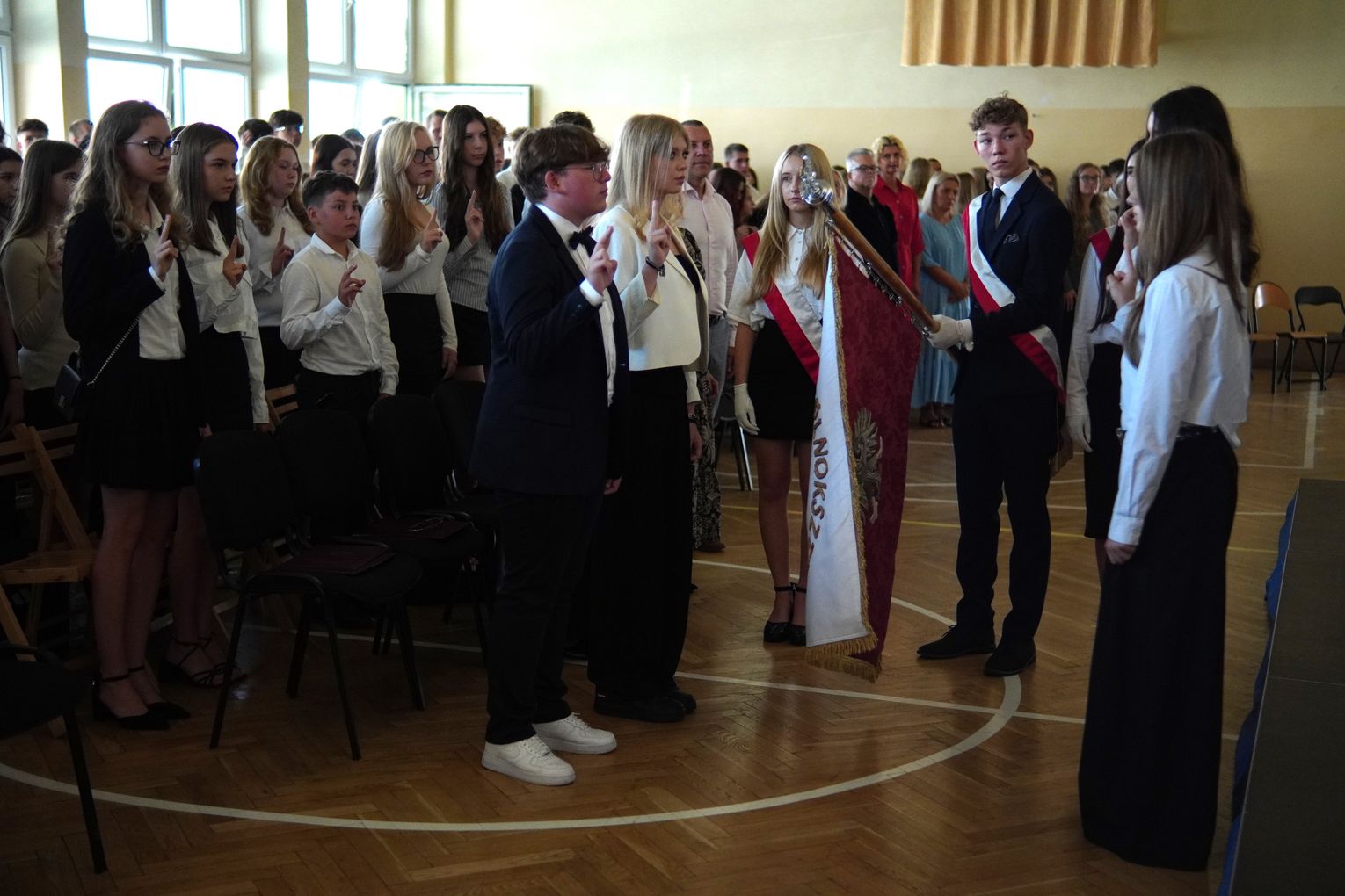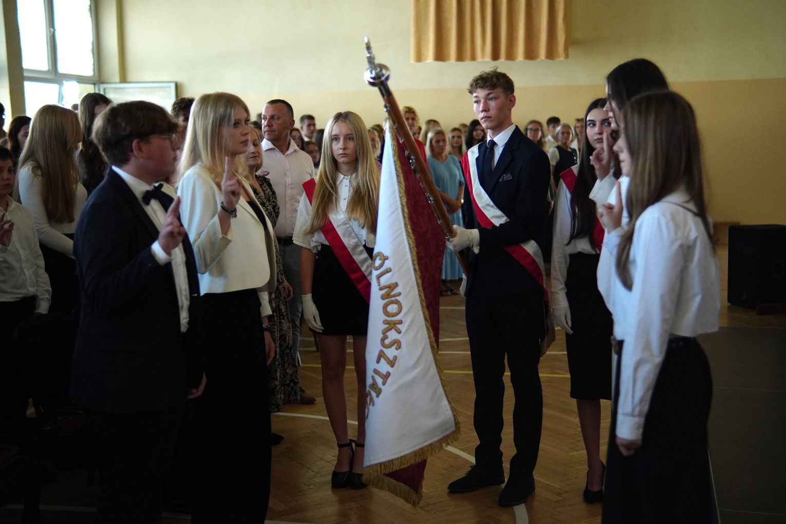 Uroczystości towarzyszyło wprowadzenie sztandaru oraz odśpiewanie hymnu państwowego. Spotkanie zakończyło się krótką częścią artystyczną przygotowaną przez uczniów starszych klas, po której młodzież udała się do sal lekcyjnych na spotkania z wychowawcami.