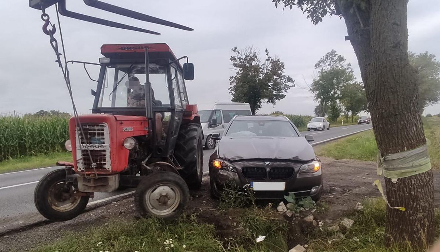 Do kolizji doszło dziś (3.09.25r.) około godz. 7:30 w Skibinie na drodze krajowej nr 62. Jak ustalili policjanci, kierujący ciągnikiem, tak niefortunnie włączył się do ruchu, że skręcił wprost, pod nadjeżdżające auto marki BMW. Doszło do zderzenia pojazdów. Szczęśliwie nikt nie odniósł obrażeń, a kierujący byli trzeźwi.
