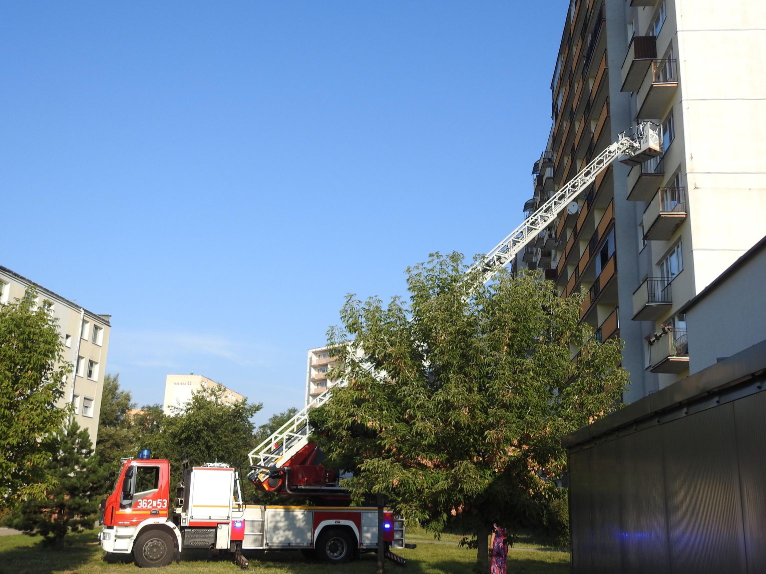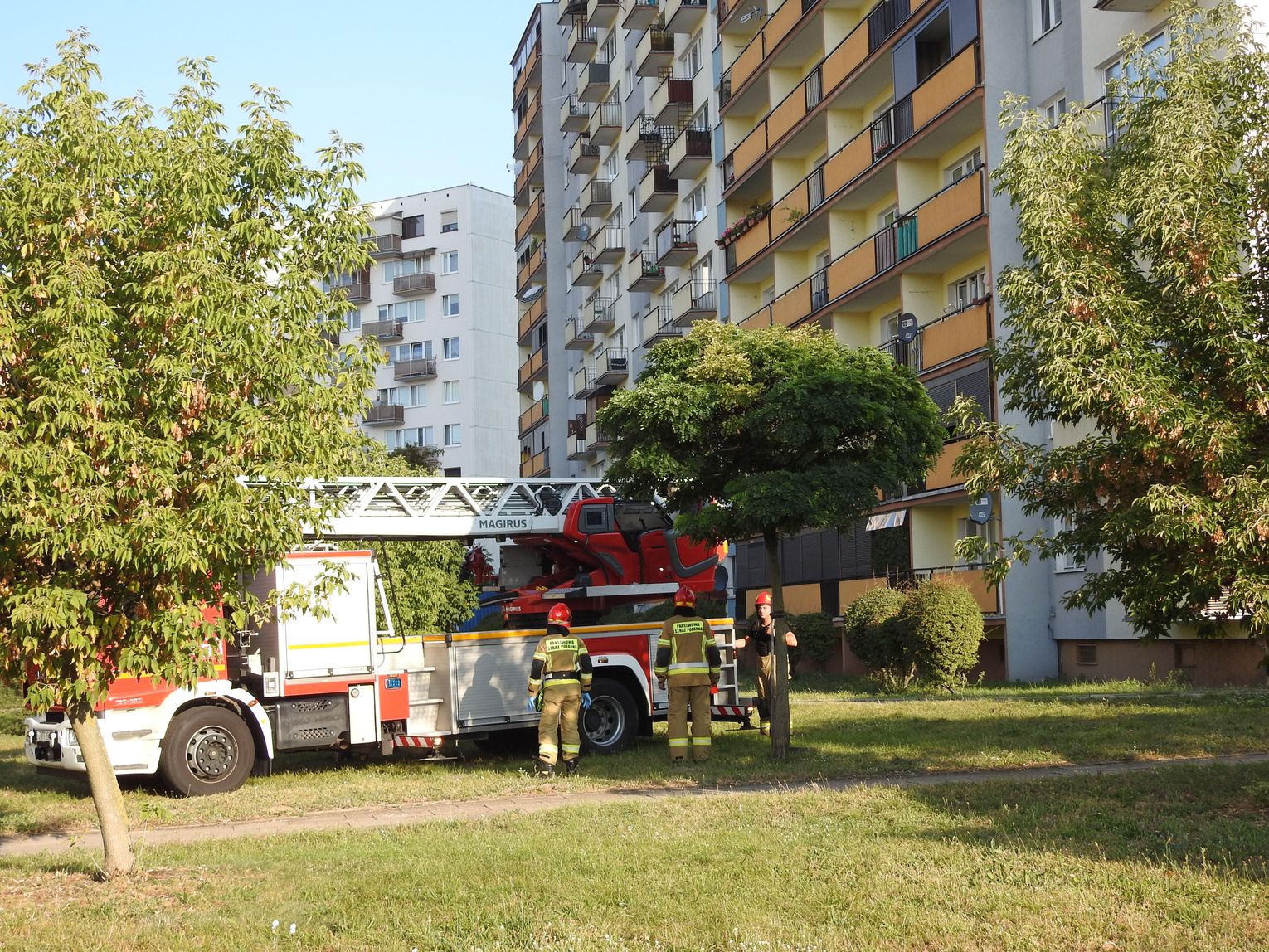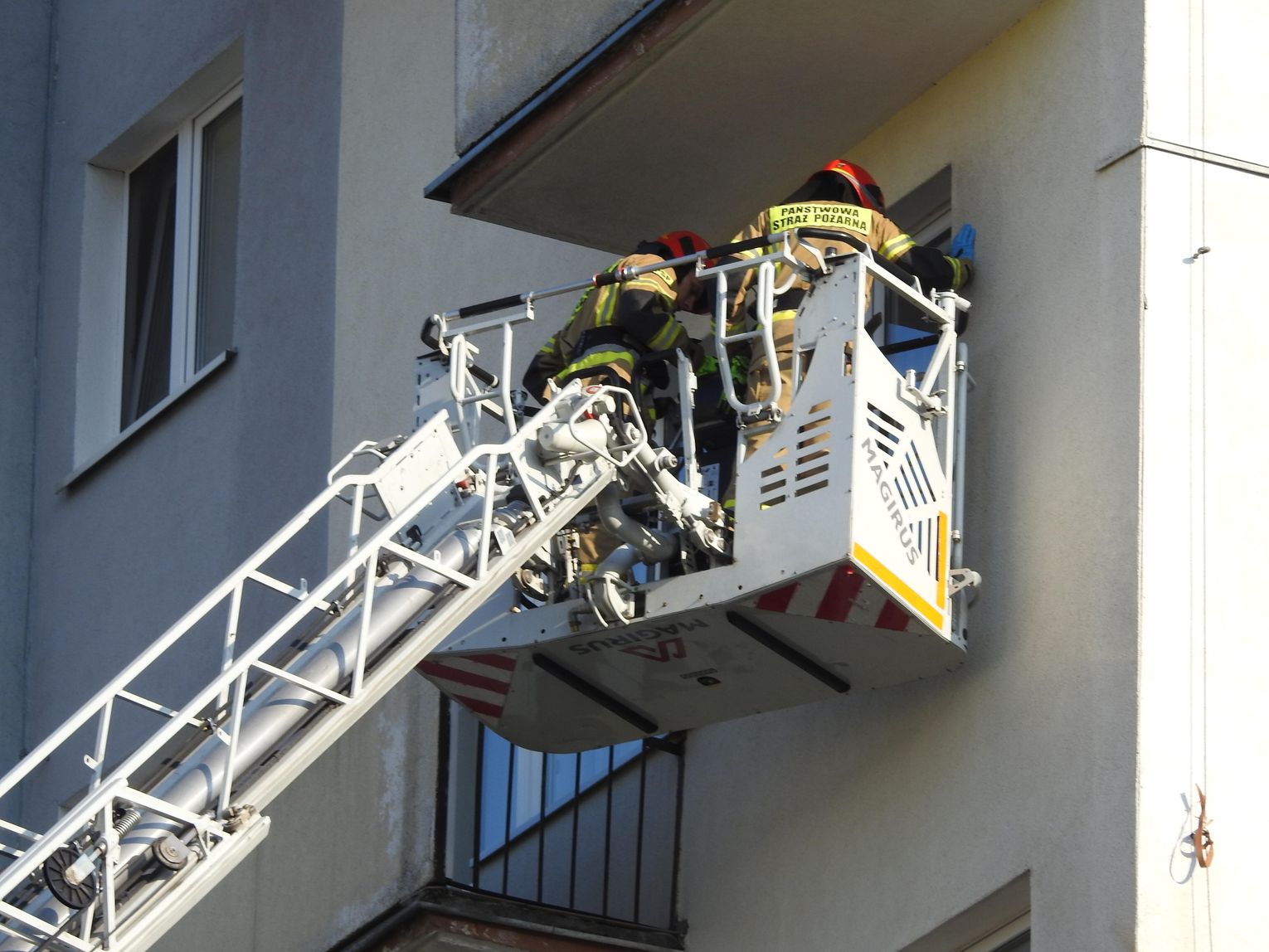 Jak ustaliliśmy, strażacy początkowo rozważali wejście do lokalu przez drzwi, jednak po ocenie sytuacji odstąpili od tej próby. Zadysponowano podnośnik, dzięki któremu strażacy dostali się do mieszkania przez okno. Następnie otworzyli drzwi od wewnątrz, umożliwiając medykom udzielenie pomocy poszkodowanej. Kobieta została zabrana do szpitala.