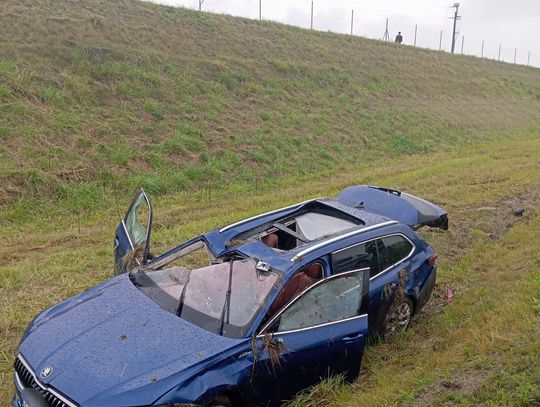 "Około godziny 12:30 na 214 kilometrze autostrady A-1 w kierunku Łodzi doszło do wypadku drogowego, Policjanci na miejscu wstępnie ustalili, że 58-letni kierowca skody nie dostosował prędkości do panujących warunków na drodze, stracił panowanie nad pojazdem i po zjechaniu na pobocze dachował. Kierowca i pasażer trafili do szpitala z obrażeniami"
