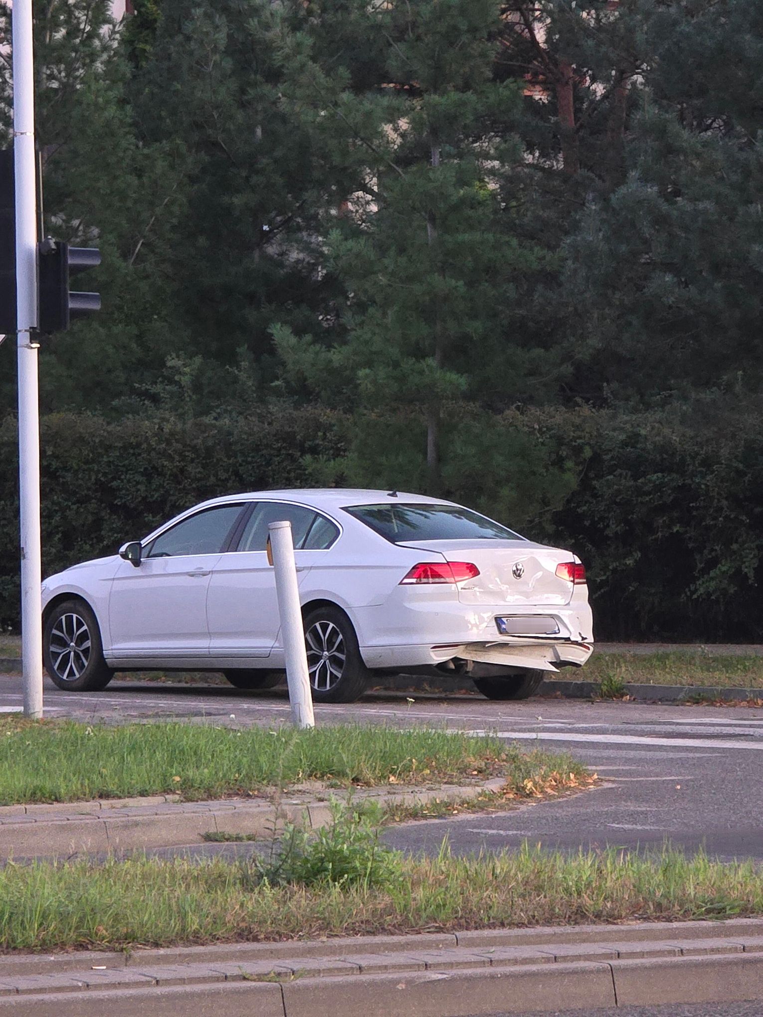 Na miejscu widać było uszkodzone porsche, które po uderzeniu zatrzymało się na jezdni, oraz volkswagena z wyraźnie zniszczonym tyłem.
