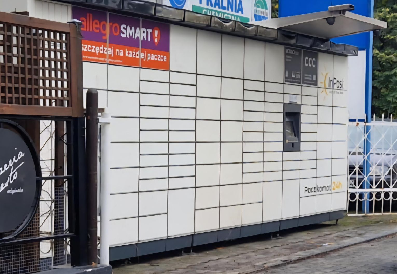 Ogień był na tyle silny, że nadpalił również paczkomat stojący obok samochodu.