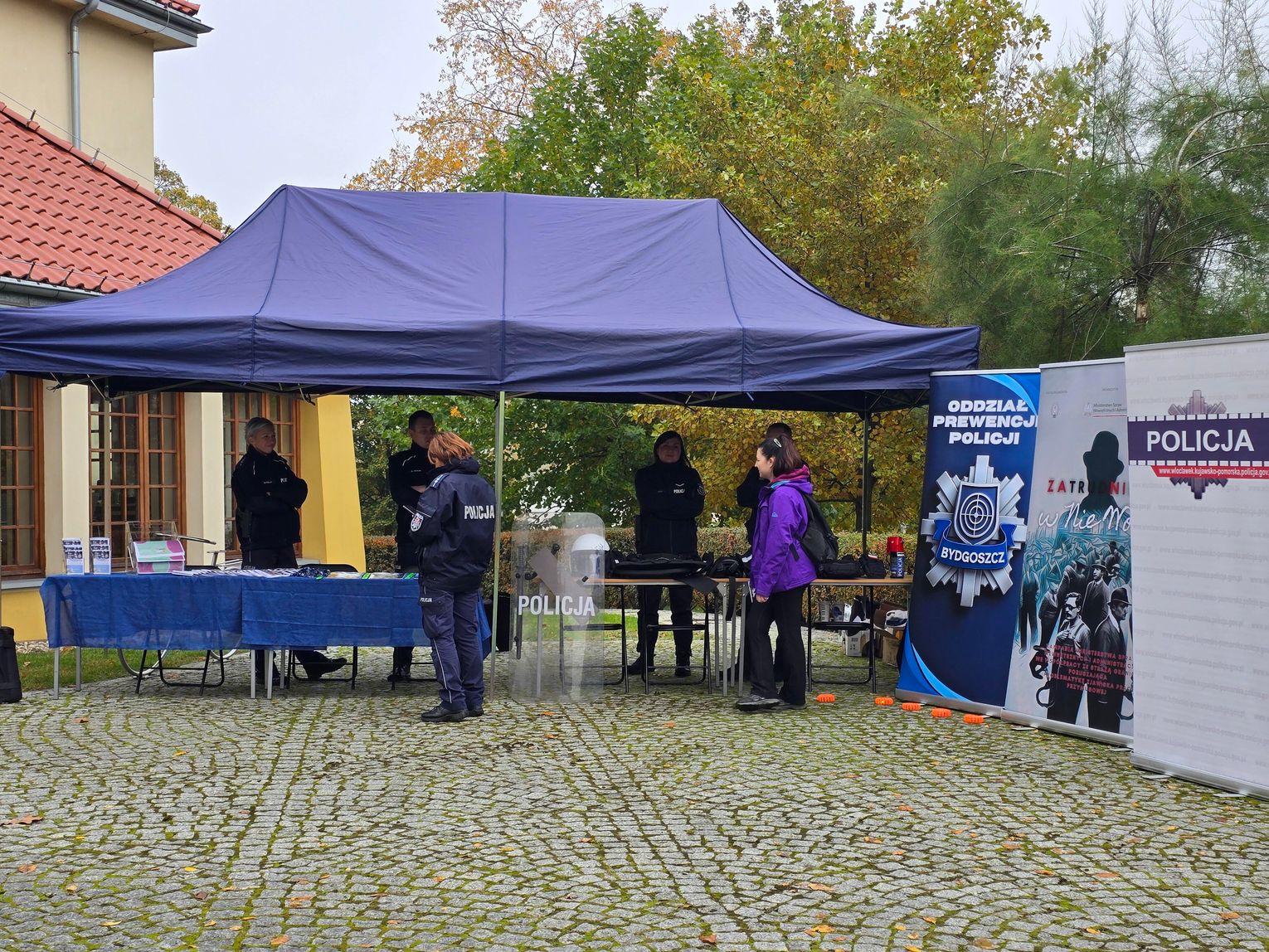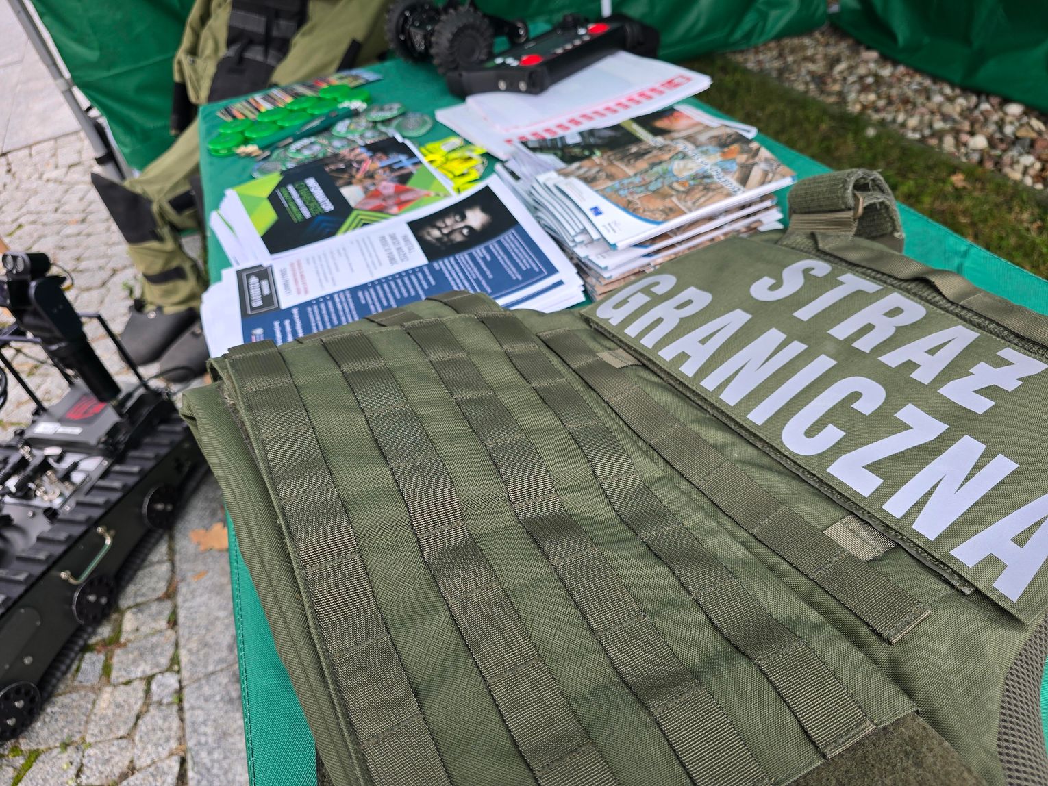 Na placu obok escapetrucka odbywały się rozmowy z funkcjonariuszami oraz krótkie prelekcje. Młodzież mogła obejrzeć policyjne i graniczne pojazdy, zapoznać się z prezentowanym sprzętem oraz wziąć ulotki ostrzegające przed ryzykiem handlu ludźmi i zachęcające do ostrożności przy podejmowaniu pracy w Polsce i za granicą.