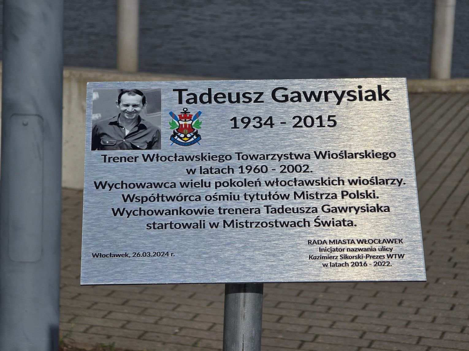 Punktualnie godzinie 12.00 odbyła się uroczystość nadania nazwy ulicy we Włocławku – imienia Tadeusza Gawrysiaka. Symboliczne odsłonięcie tabliczki z nazwą ulicy miało miejsce przy zbiegu ul. Piwnej i ul. Fabrycznej, w obecności władz miasta, rodziny patrona oraz zaproszonych gości. Prócz nazwy ulicy, pojawiła się również tablica z wizerunkiem trenera.
