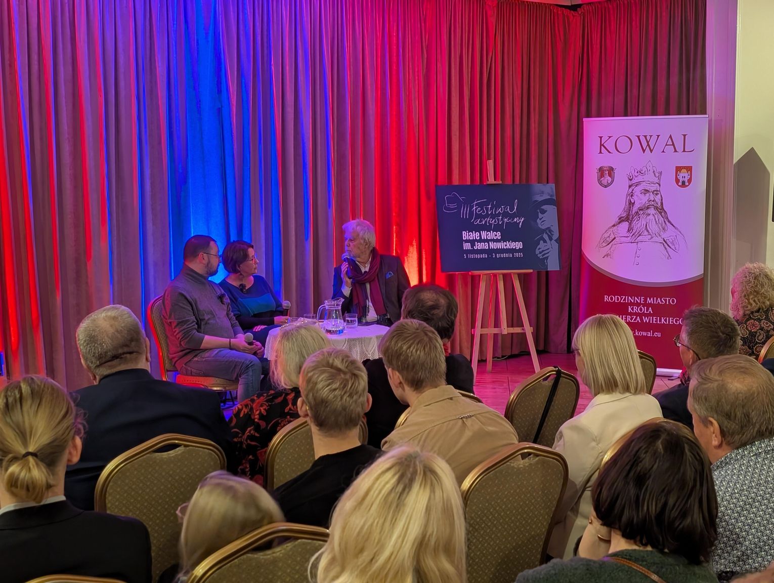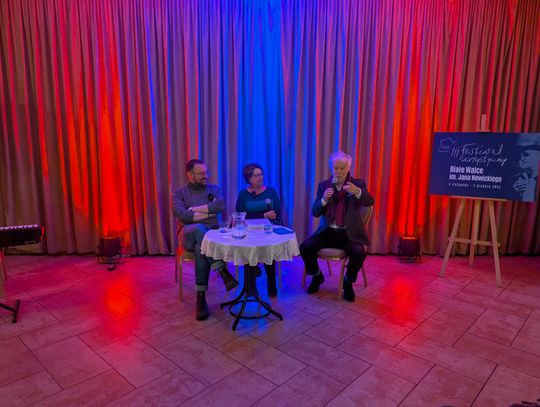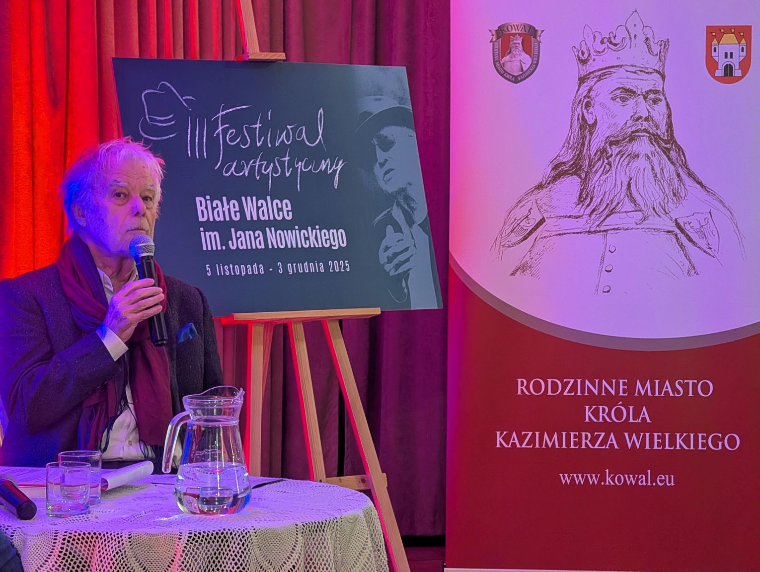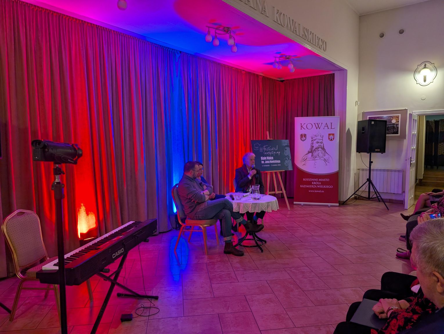 W środę, 5 listopada, w dużej sali OSP w Kowalu odbyło się wyjątkowe spotkanie z udziałem Jana Kantego Pawluśkiewicza i Sebastiana Kudasa. Wydarzenie zapoczątkowało Festiwal Białe Walce im Jana Nowickiego, a poprowadziła je Anna Marcinkowska – malarka, rysowniczka i animatorka kultury, a zarazem mieszkanka Kowala.