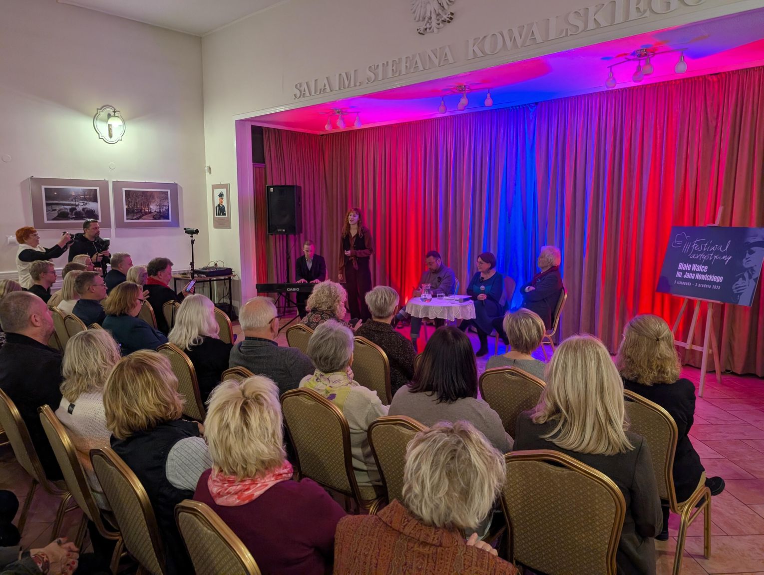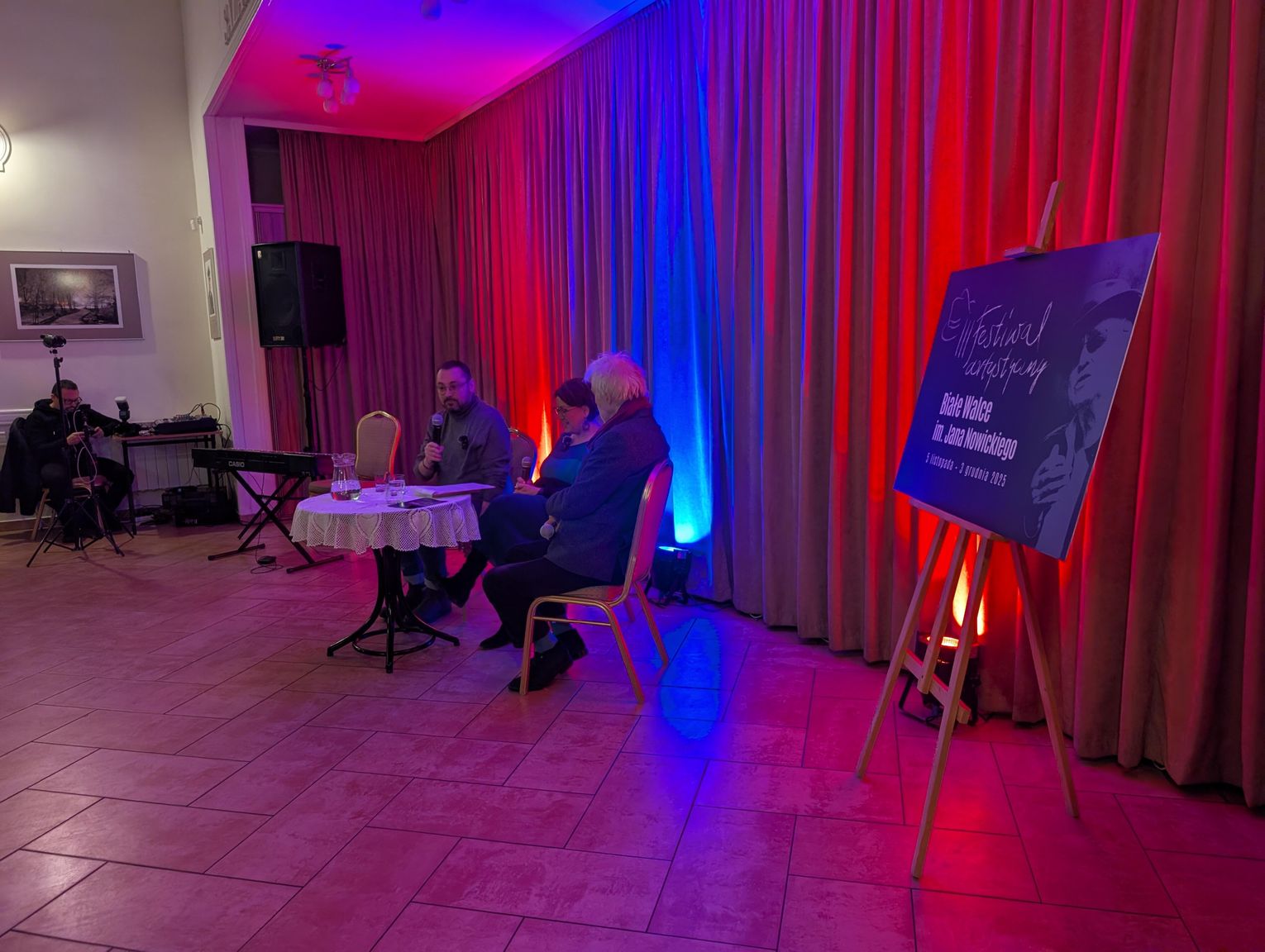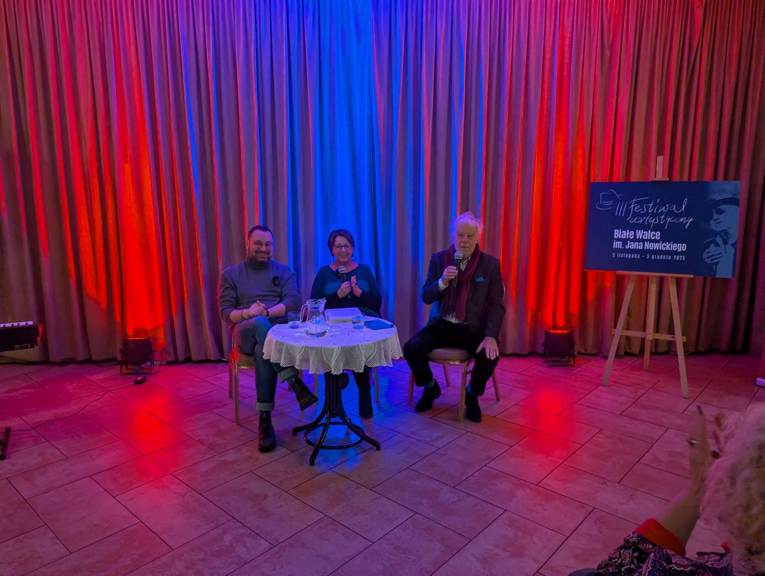 W środę, 5 listopada, w dużej sali OSP w Kowalu odbyło się wyjątkowe spotkanie z udziałem Jana Kantego Pawluśkiewicza i Sebastiana Kudasa. Wydarzenie zapoczątkowało Festiwal Białe Walce im Jana Nowickiego, a poprowadziła je Anna Marcinkowska – malarka, rysowniczka i animatorka kultury, a zarazem mieszkanka Kowala.