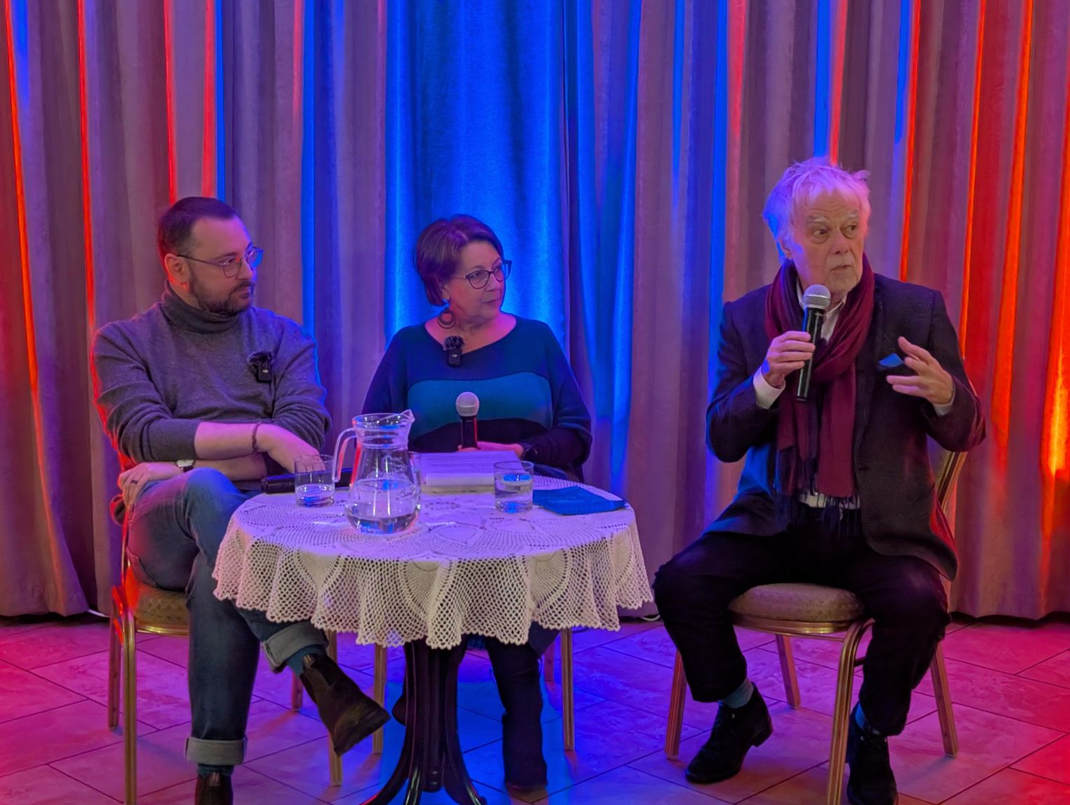 Sebastian Kudas, znany rysownik, ilustrator i scenograf „Piwnicy pod Baranami”, przybliżył kulisy swojej pracy artystycznej. Opowiadał o realizacjach scenografii do licznych programów kabaretu, także tych wystawianych za granicą – w Sztokholmie, Wiedniu, Oslo, Chicago czy Nowym Jorku. Wspominał współpracę z wybitnymi postaciami polskiej kultury, w tym z Jackiem Kaczmarskim, Ewą Lipską, Janem Nowickim i Janem Kantym Pawluśkiewiczem.