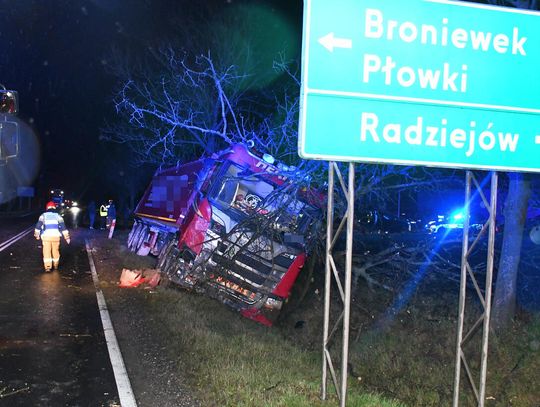 Do zdarzenia doszło wczoraj (14.11.25r.) około godziny 22:55 w Broniewku na drodze krajowej nr 62. Jak wstępnie ustalili policjanci, 53-letnia mieszkanka powiatu radziejowskiego jadąca oplem meriva, wyjeżdżając z drogi podporządkowanej, nie ustąpiła pierwszeństwa przejazdu. Doprowadziła do zderzenia, z prawidłowo jadącą ciężarową scanią z przyczepą. Po uderzeniu pojazdy wpadły do rowów.