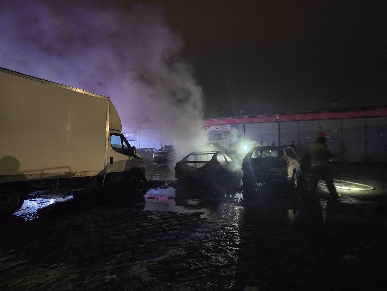 "W nocy z 2 na 3 grudnia br., po godzinie 1:00, we Włocławku przy ul. Brackiej doszło do pożaru trzech pojazdów – dwóch samochodów osobowych oraz jednego samochodu dostawczego. Na miejsce zdarzenia niezwłocznie zadysponowano jeden zastęp z Jednostki Ratowniczo-Gaśniczej nr 2. Działania strażaków polegały na ugaszeniu pożaru oraz zabezpieczeniu terenu. W wyniku oddziaływania wysokiej temperatury nadpalony został również zaparkowany w pobliżu samochód marki Toyota. W zdarzeniu nie odnotowano osób poszkodowanych. Przyczyny i okoliczności powstania pożaru wyjaśnia obecna na miejscu Policja." Informuje Bryg. Mariusz Bladoszewski Oficer Prasowy Komendanta Miejskiego PSP we Włocławku