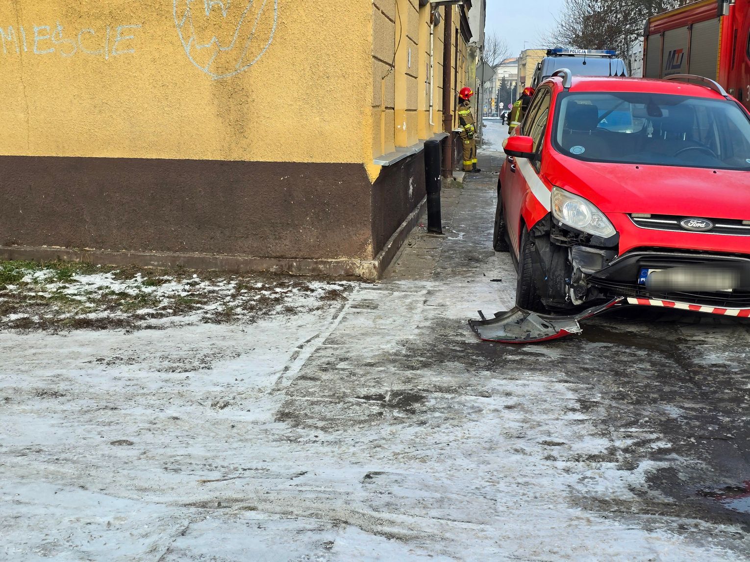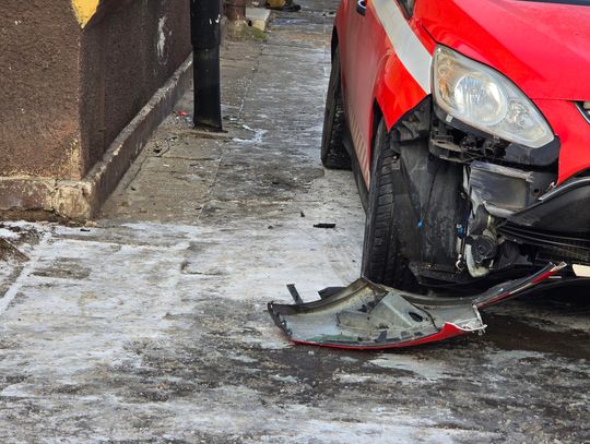 Na ul. Starodębskiej we Włocławku doszło do zdarzenia drogowego. Samochód osobowy najprawdopodobniej wpadł w poślizg na oblodzonej jezdni i uderzył w słupek oraz elewację budynku. Na miejscu interweniują dwie jednostki straży pożarnej oraz policja. Służby zabezpieczają teren i prowadzą czynności wyjaśniające. Pojazd ma poważnie uszkodzony przód, a fragmenty karoserii leżą na jezdni i chodniku. Jak wynika z sytuacji na miejscu zdarzenia, nawierzchnia ul. Starodębskiej jest bardzo śliska — jezdnię pokrywa lód. W związku z działaniami służb ul. Starodębska jest w tej chwili całkowicie zablokowana.