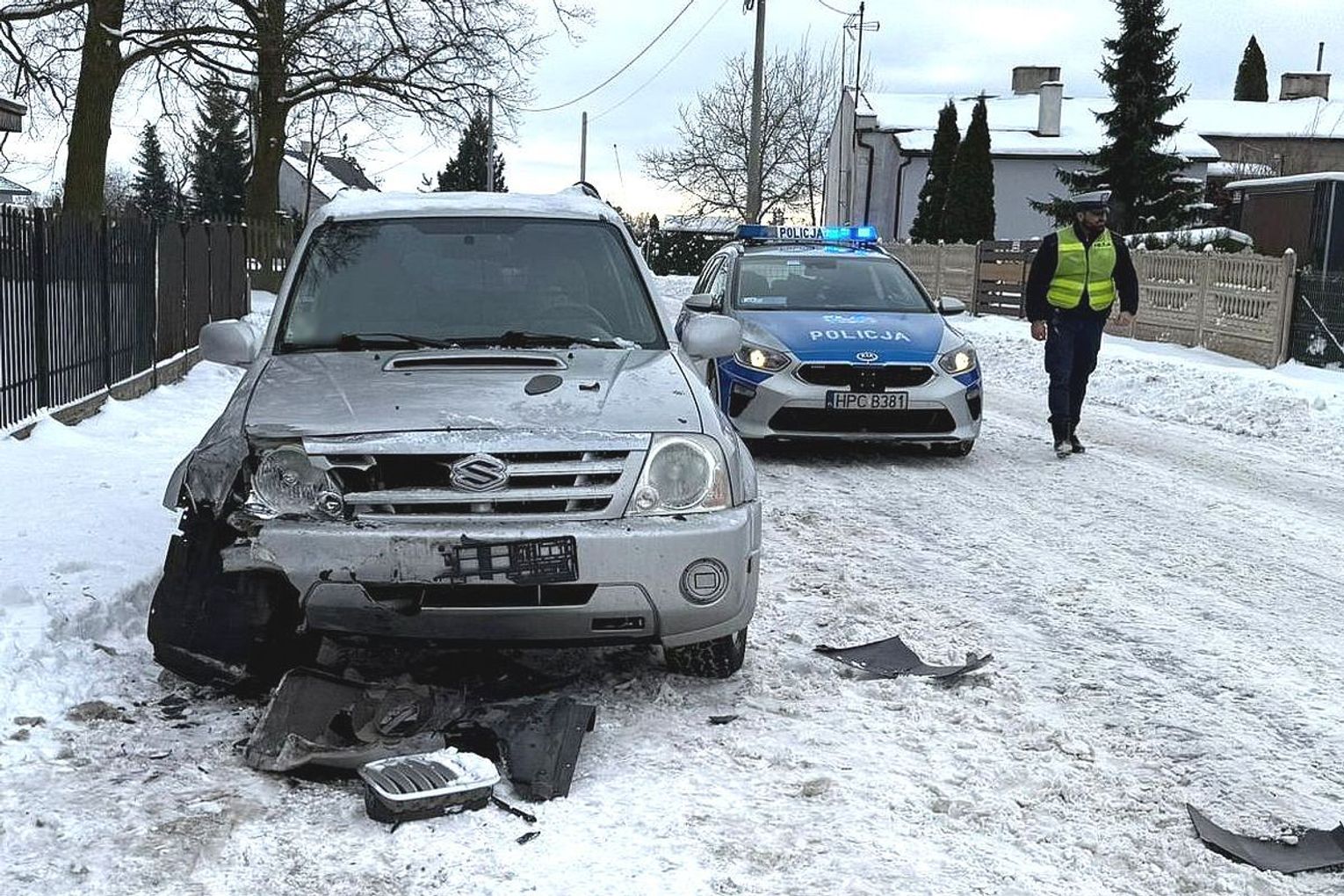 Wczoraj (12.01.2026) policjanci wezwani zostali do miejscowości Wola. Mieszkańcy zawiadamiali o tym, że kierująca BMW kobieta najpierw uderzyła w zaparkowane auto a następnie weszła do sklepu. Po zrobieniu zakupów próbowała odjechać, co udało jej się z trudem, bo auta zakleszczyły się. Po rozdzieleniu pojazdów kierująca X6 cofając uszkodziła ogrodzenie, po czym oddaliła się z miejsca zdarzenia. Całe zajście nagrała kamera miejscowego monitoringu. Policjanci zastali 44-latkę w domu. Mieszkanka gminy Kikół nie zaprzeczała, że uszkodziła pojazd i płot, ale nie potrafiła wyjaśnić, dlaczego odjechała z miejsca zdarzenia. W związku z podejrzeniem, że beztroska jazda mogła być spowodowana spożyciem wysokoprocentowego trunku, policjanci poddali ją badaniom trzeźwości. W chwili badania kobieta miała ponad dwa promile alkoholu w organizmie. Funkcjonariusze przeprowadzili pomiary zawartości alkoholu w wydychanym powietrzu, które pozwolą ustalić czy kobieta była nietrzeźwa w chwili prowadzenia pojazdu. Jeśli tak, oprócz wykroczeń (spowodowanie kolizji i brak badań technicznych pojazdu) odpowie także za przestępstwo.