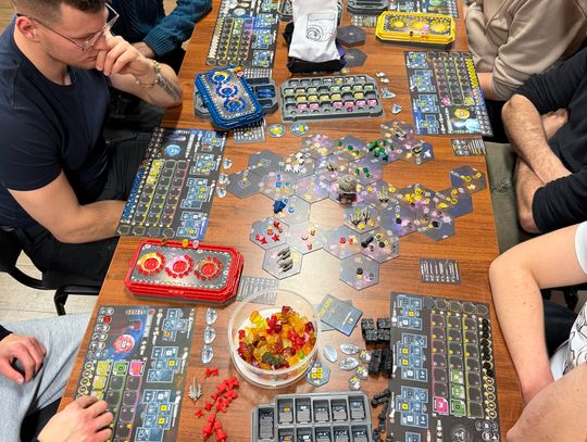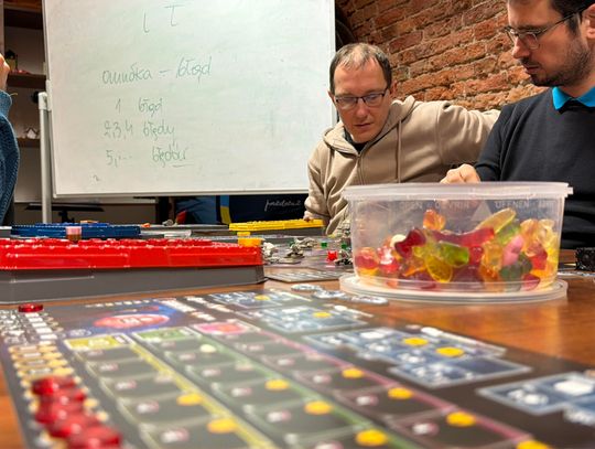W sobotni wieczór w Klubie Gier Planszowych Taktyk trwa nocne granie. Od godziny 18:00 miłośnicy planszówek spotkali się, by wspólnie spędzić czas przy grach, a rozgrywki potrwają aż do godziny 5:00 rano. Dzisiejsze spotkanie ma wyjątkowy charakter. Zamiast standardowych godzin grania, obowiązujących zazwyczaj w soboty od 12:00 do 20:00, klub zdecydował się na nocną formułę wydarzenia. Zmiana harmonogramu związana jest z włączeniem się w finał Wielkiej Orkiestry Świątecznej Pomocy. Na stołach pojawiły się zarówno popularne tytuły, jak i bardziej wymagające gry planszowe. Uczestnicy mogą dołączać do rozgrywek przez całą noc, a atmosfera — jak podkreślają organizatorzy — sprzyja integracji i wspólnej zabawie. Wypowiedź koordynatora